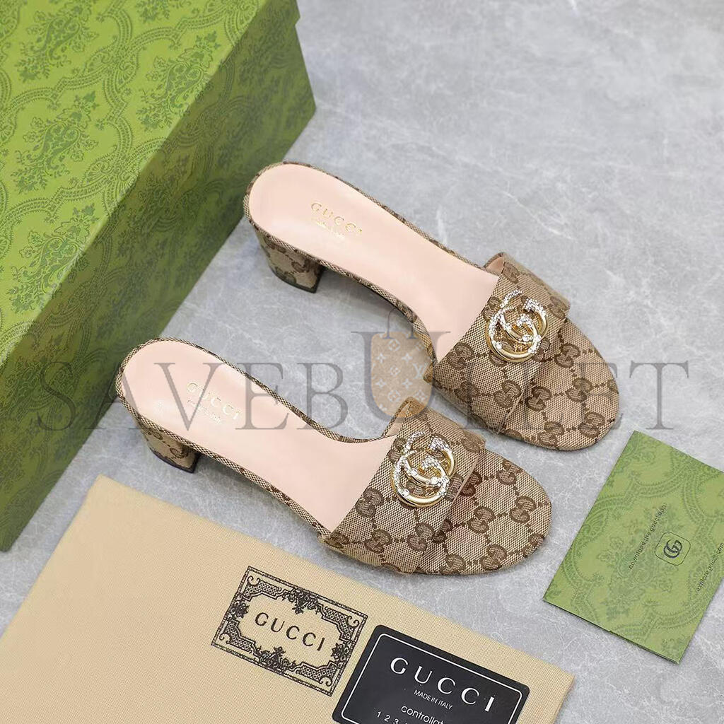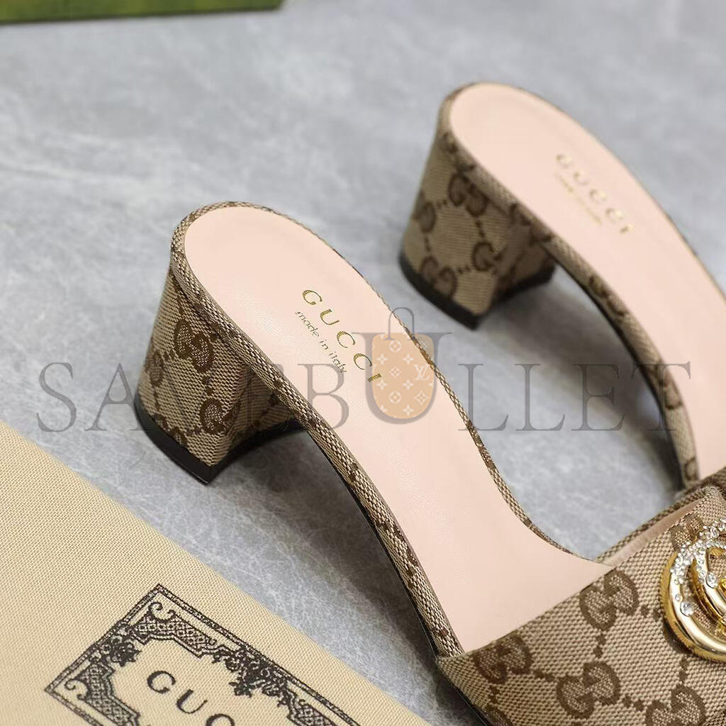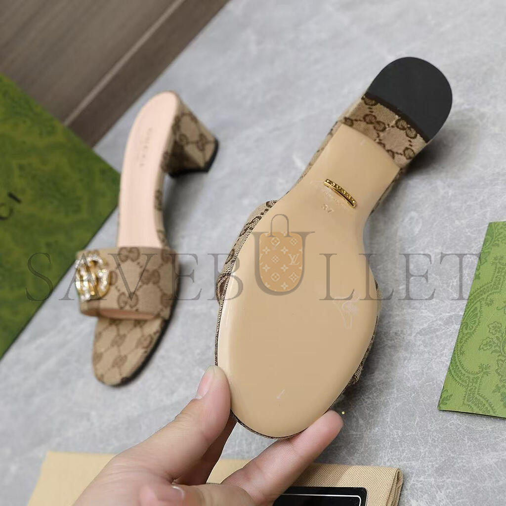 GUCCI WOMENS BEIGE MONOGRAM HEELS WITH GOLD