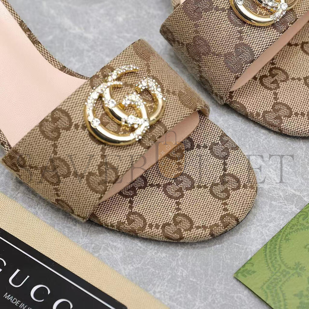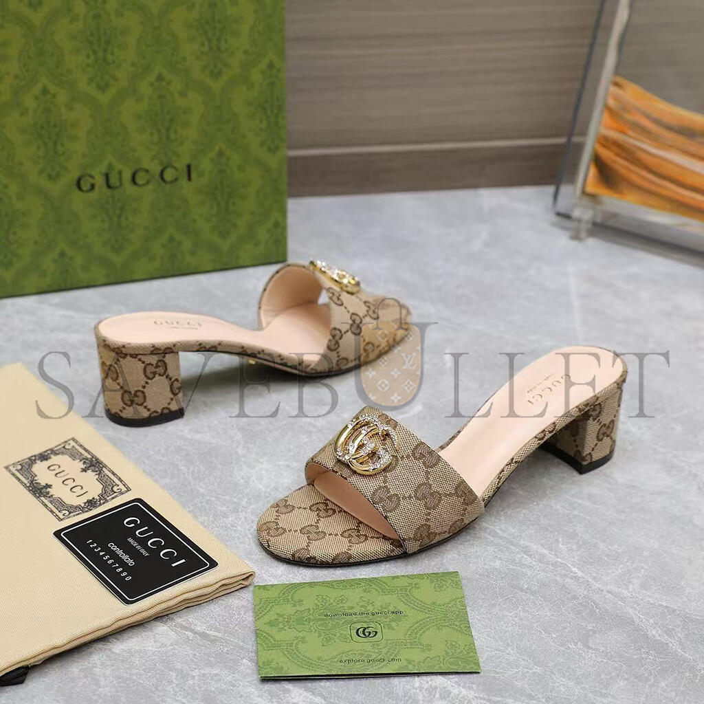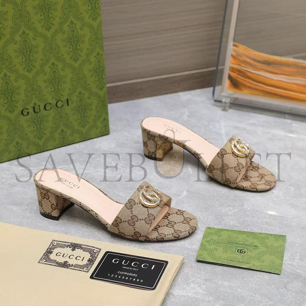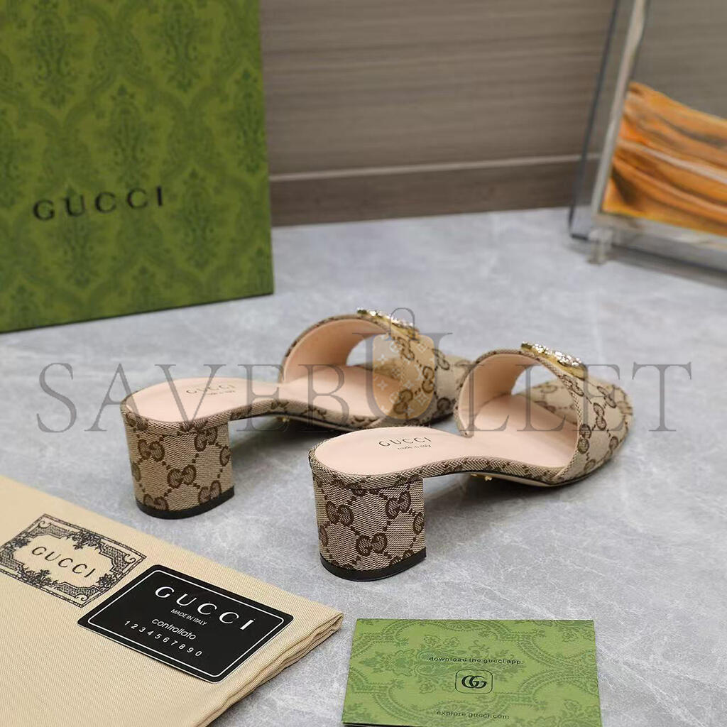 GUCCI WOMENS BEIGE MONOGRAM HEELS WITH GOLD