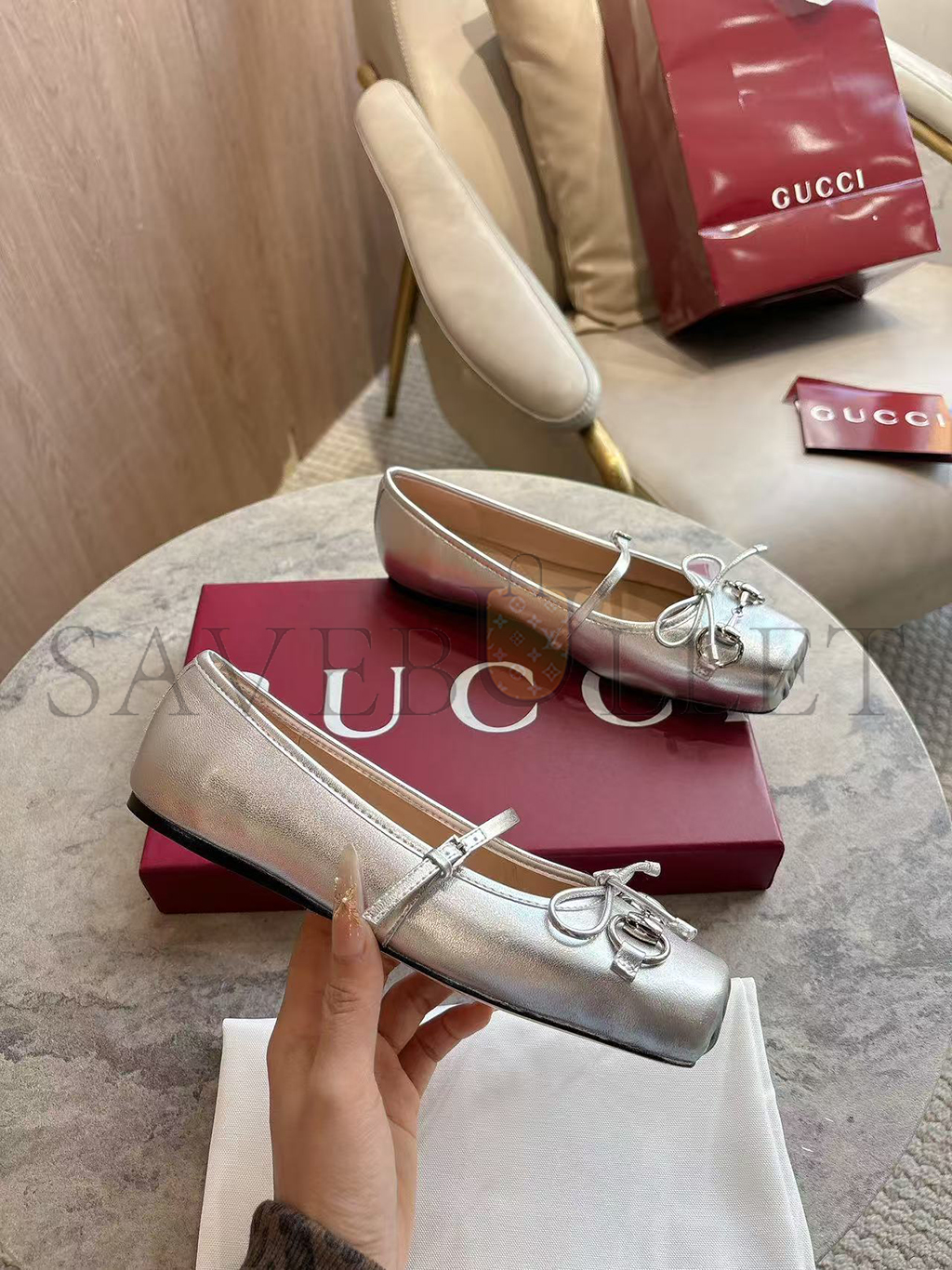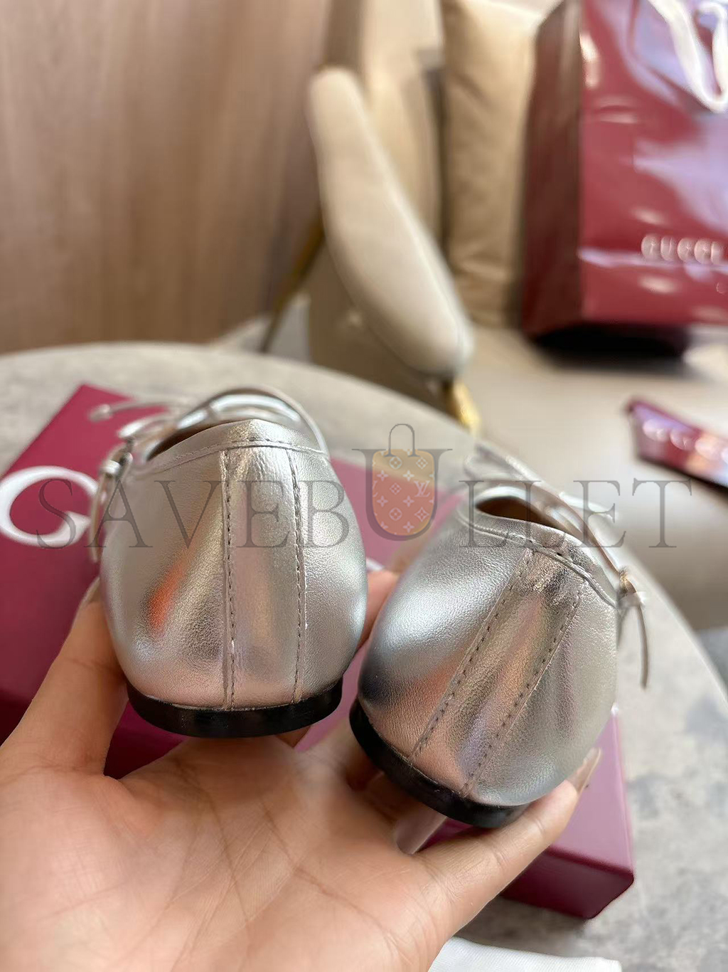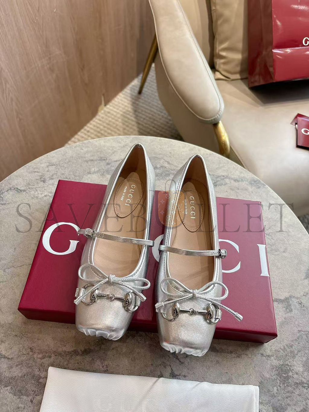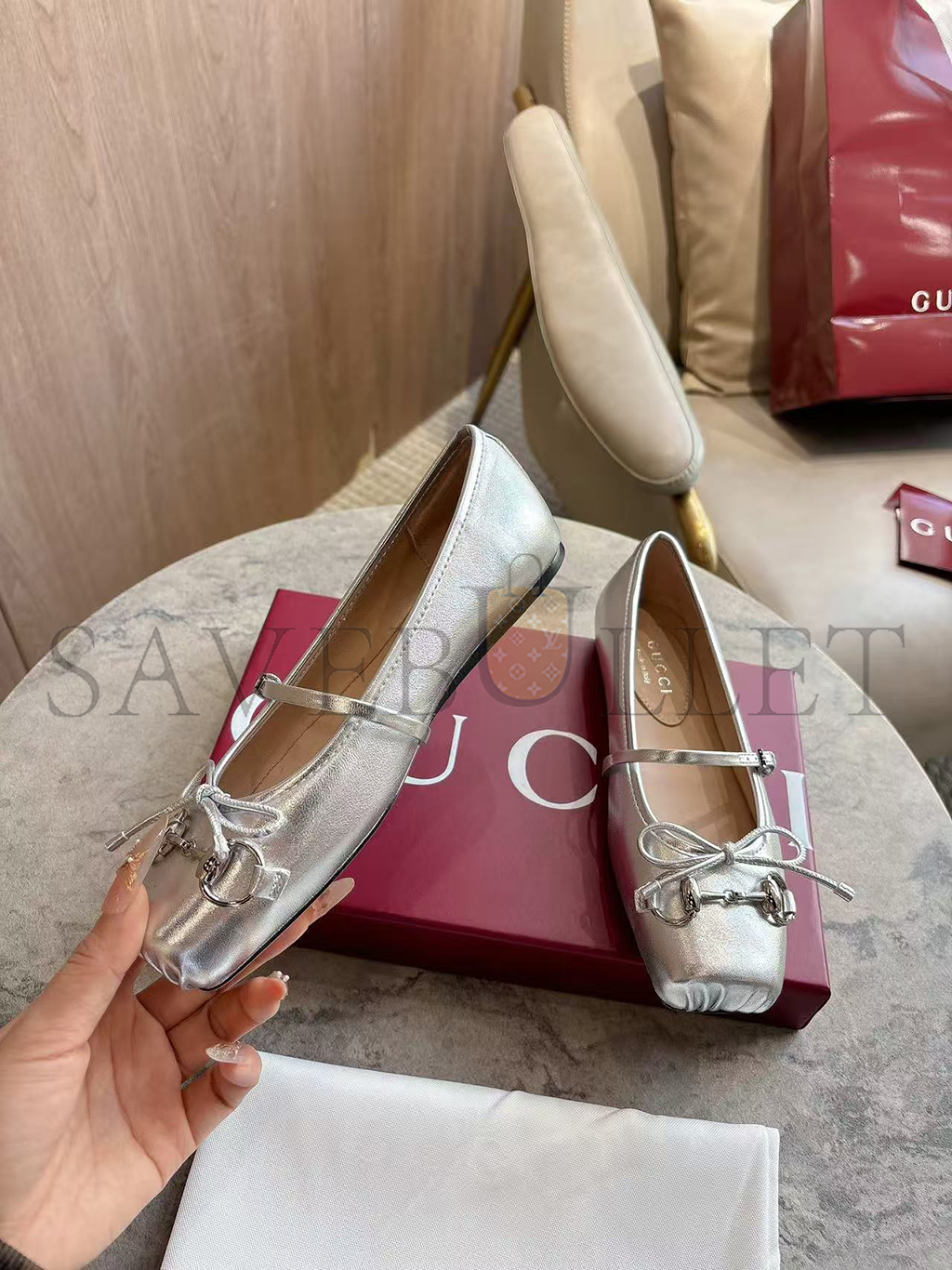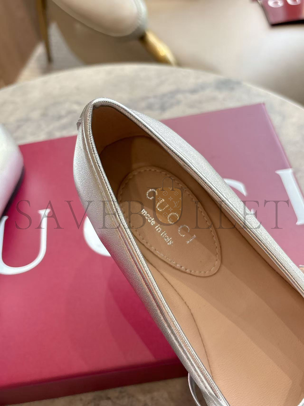 GUCCI WOMEN'S GUCCI HORSEBIT BALLET FLAT IN SILVER LEATHER 814413