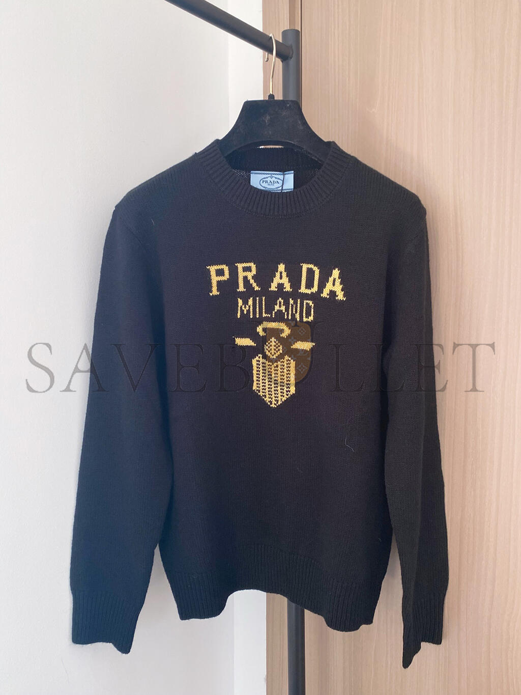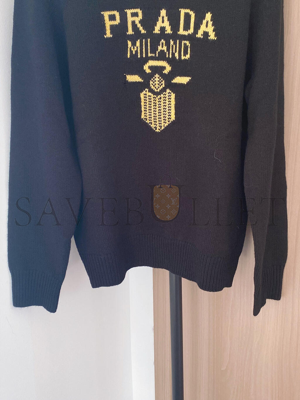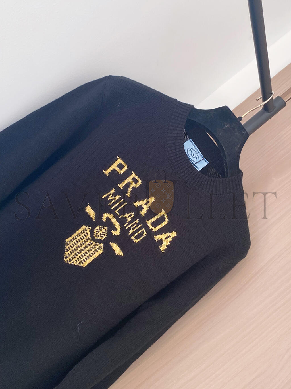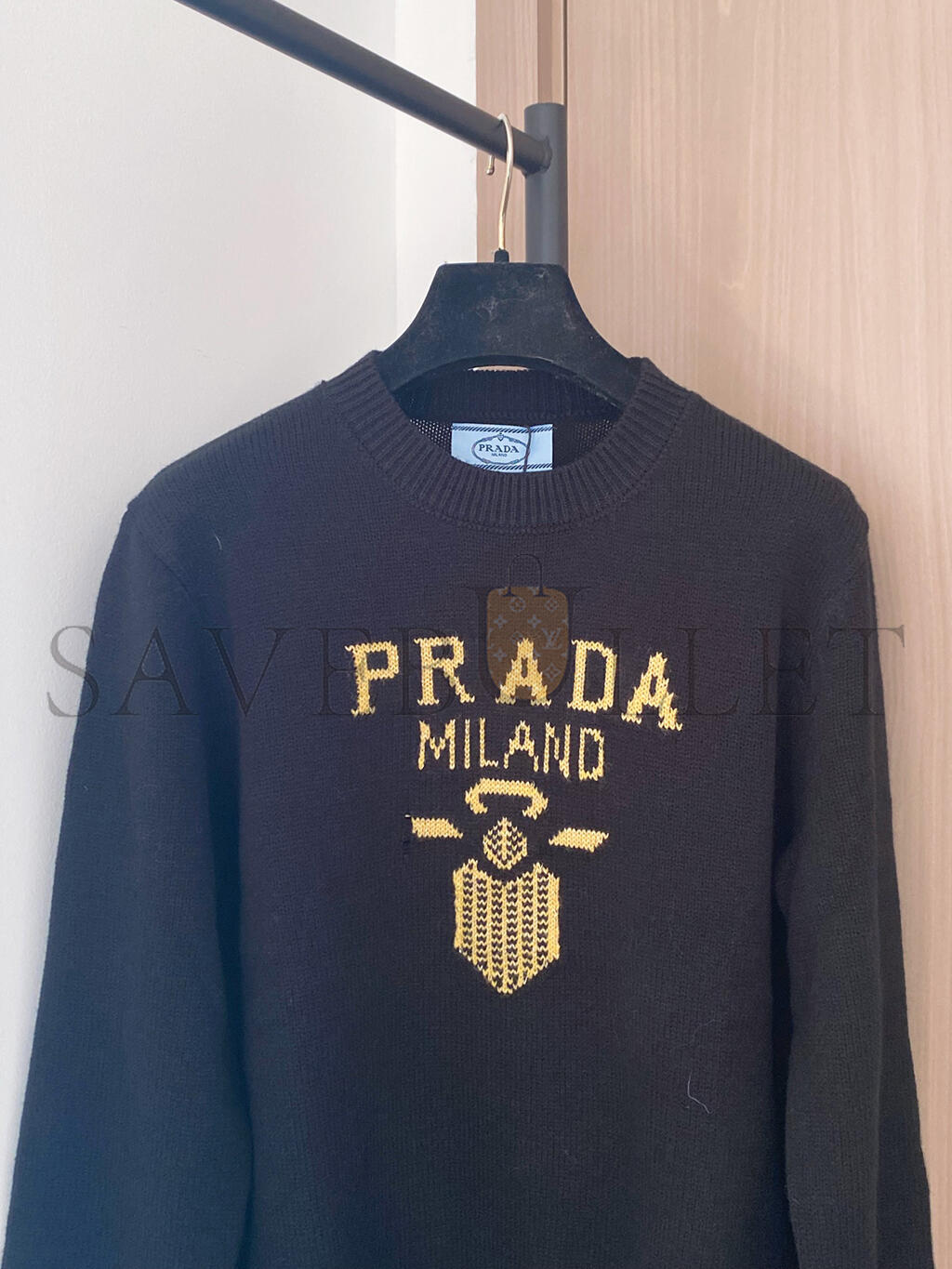 PRADA LOGO-INTARSIA CASHMERE SWEATER