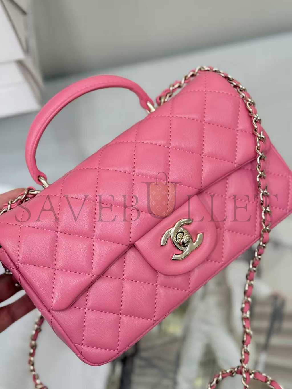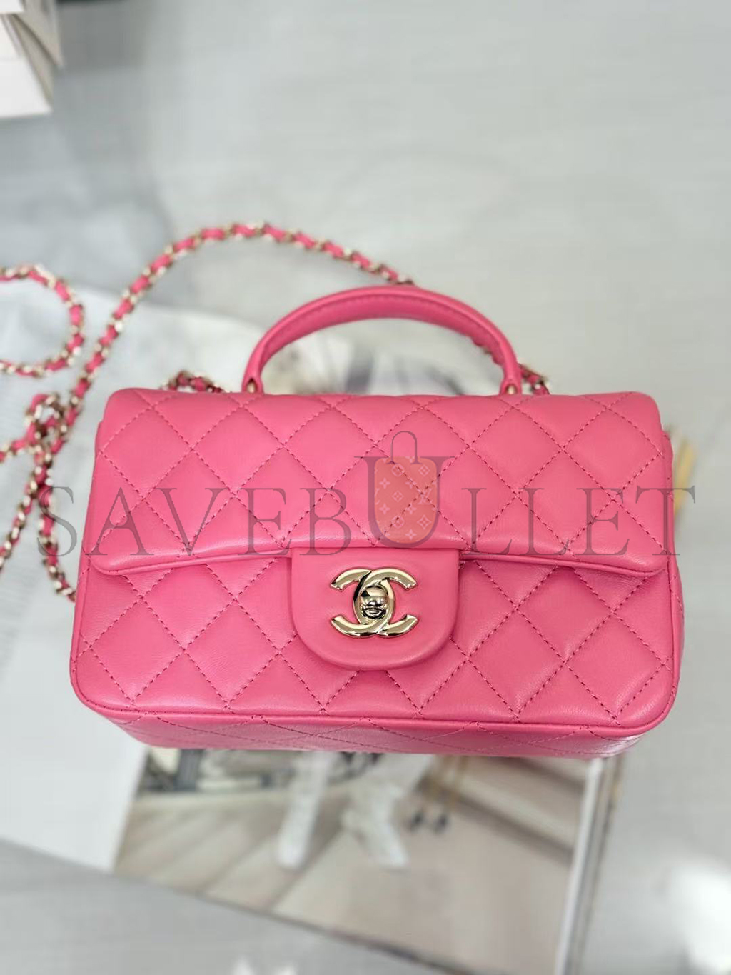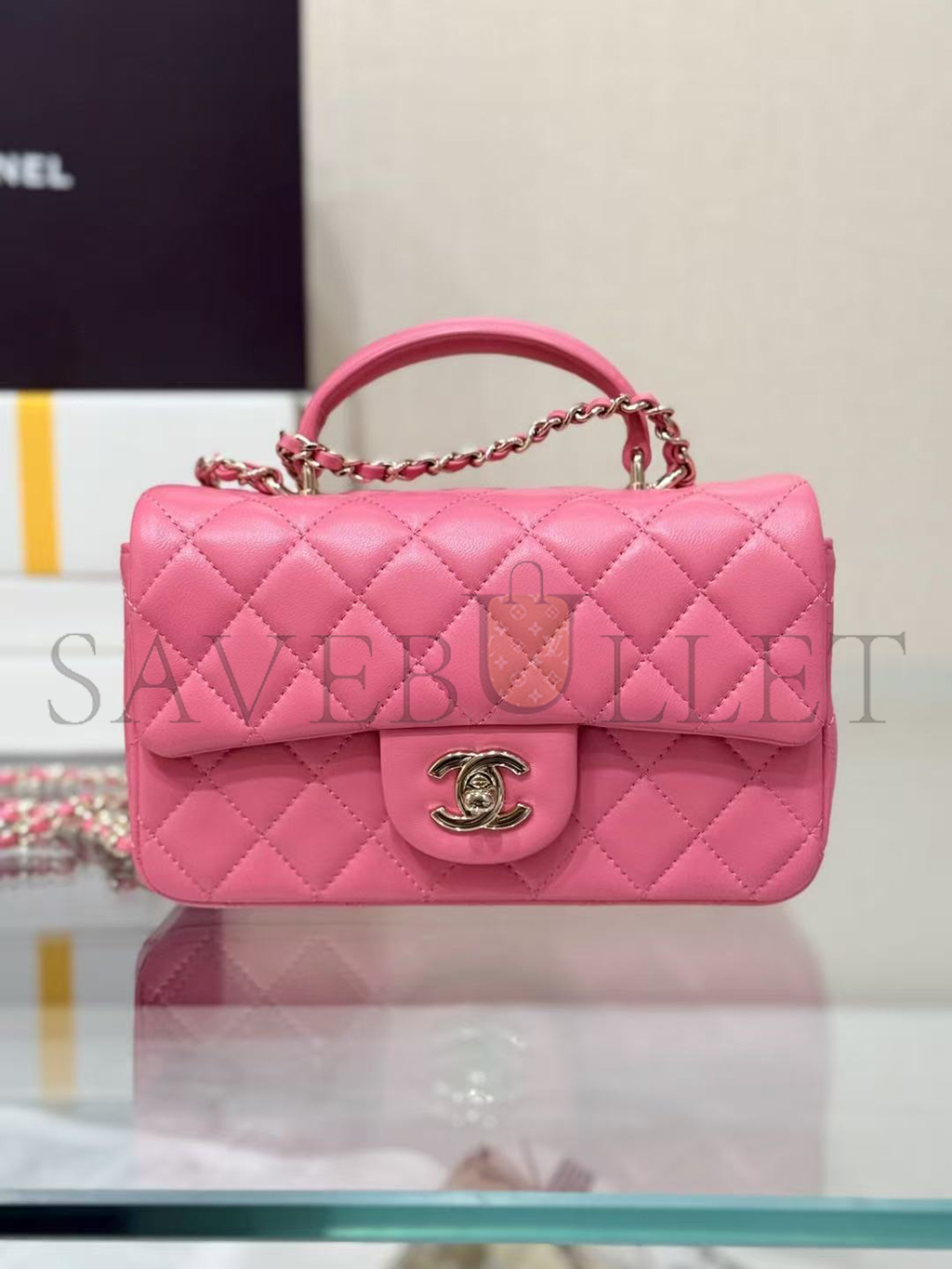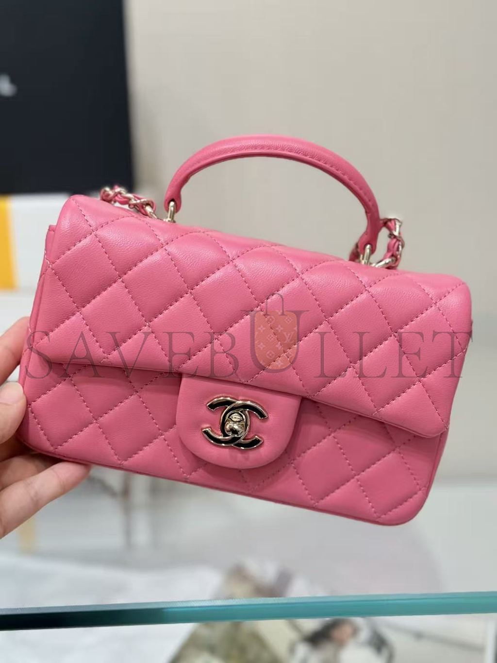 CHANEL MINI RECTANGULAR FLAP WITH TOP HANDLE LAMBSKIN LIGHT GOLD HARDWARE (20*13*6cm)