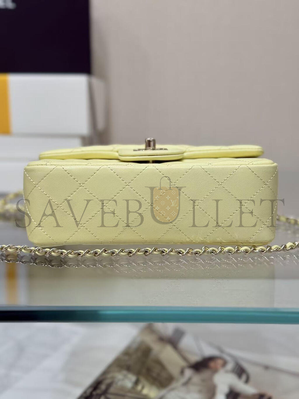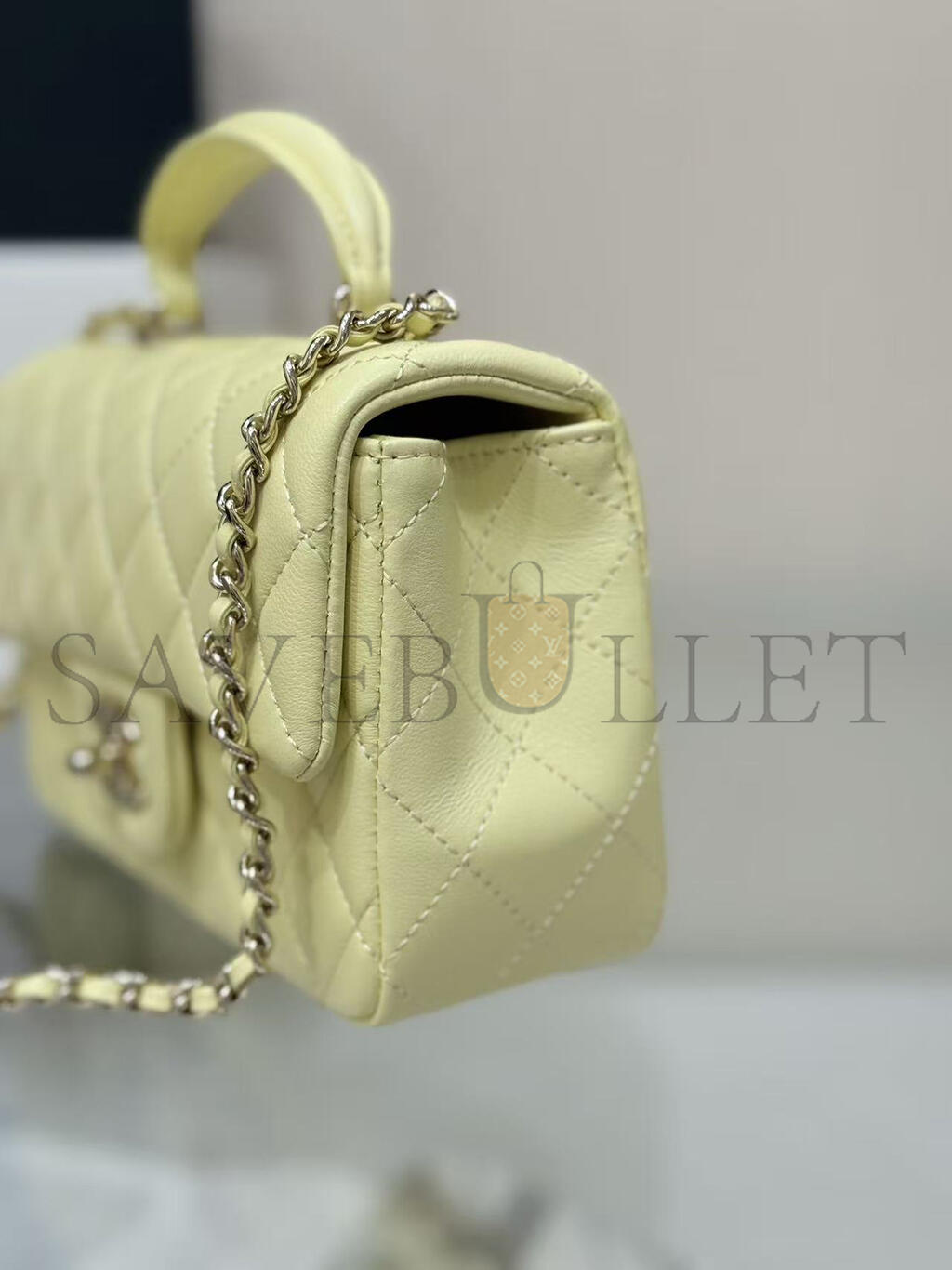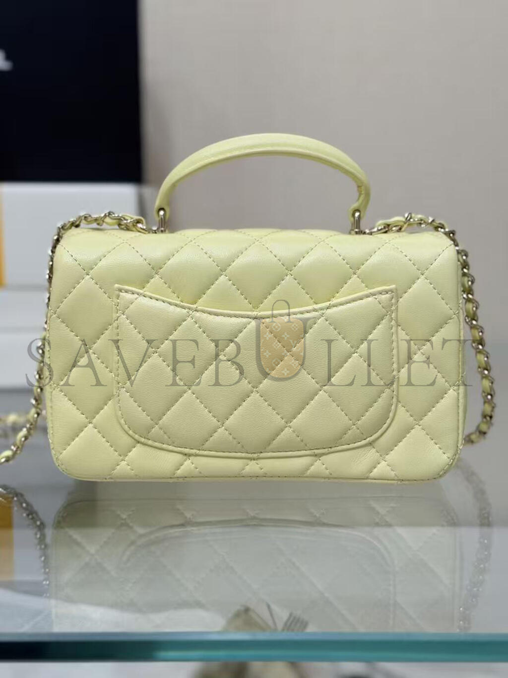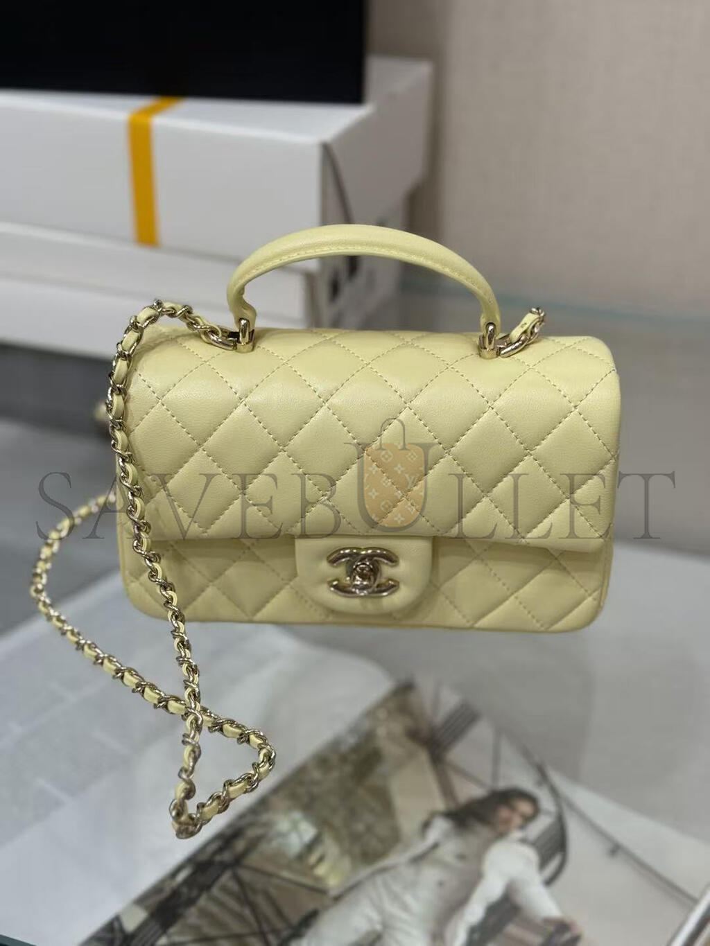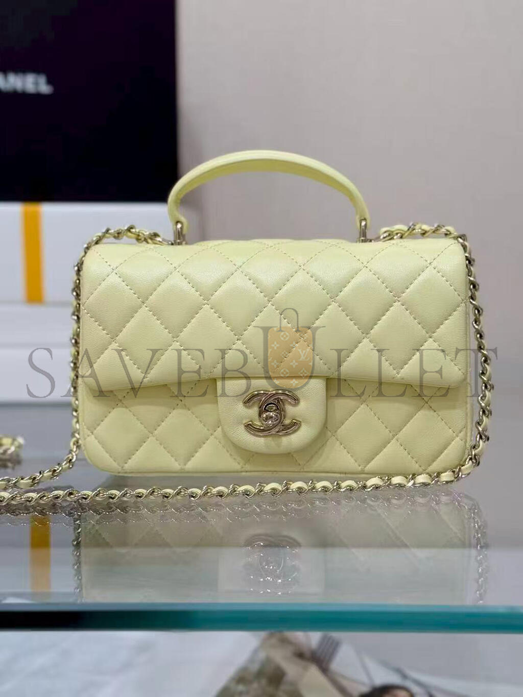 CHANEL MINI RECTANGULAR FLAP WITH TOP HANDLE LAMBSKIN LIGHT GOLD HARDWARE (20*13*6cm)