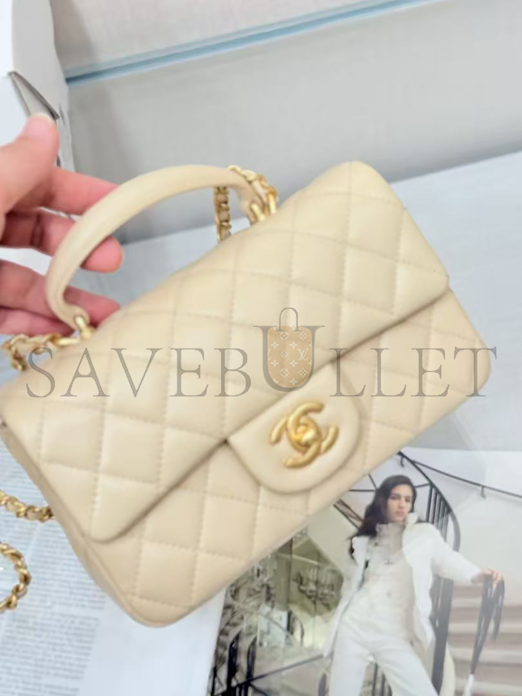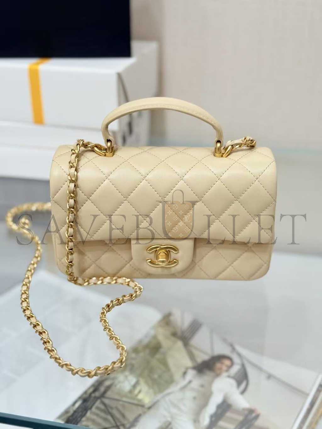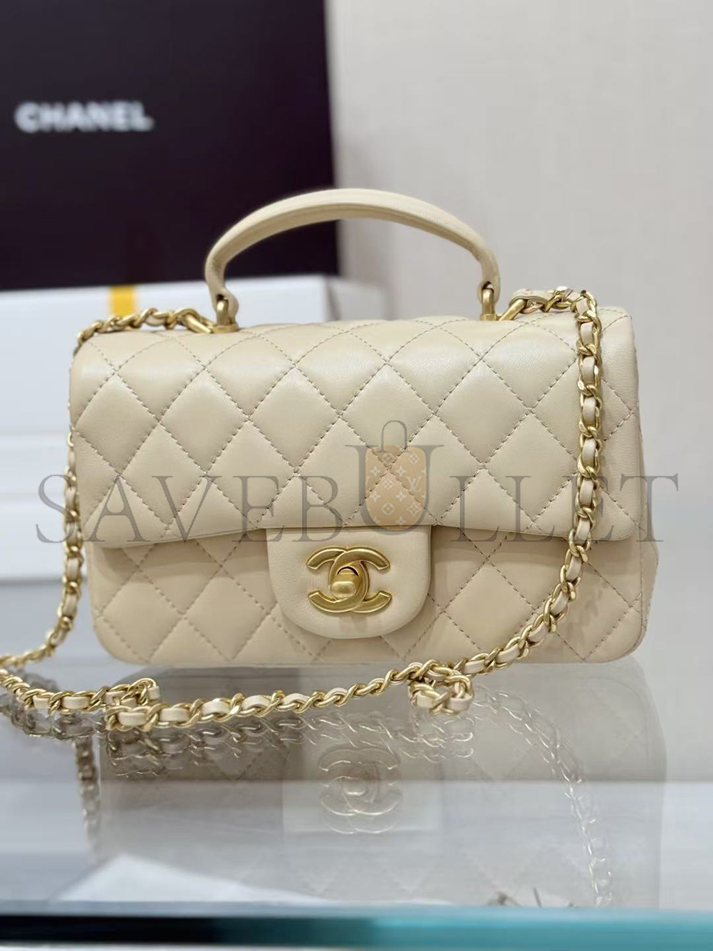 CHANEL MINI RECTANGULAR FLAP WITH TOP HANDLE LAMBSKIN LIGHT GOLD HARDWARE (20*13*6cm)