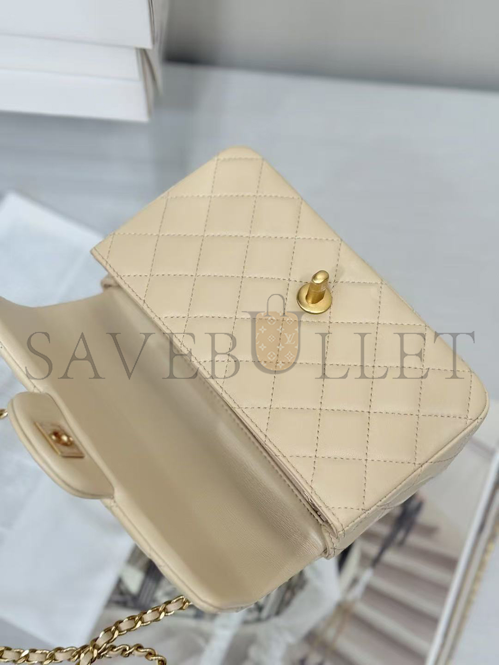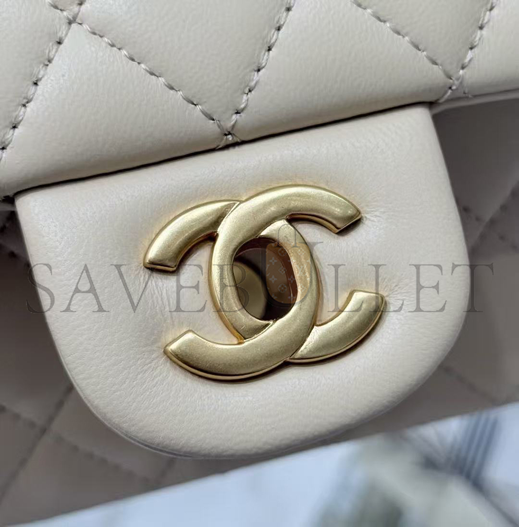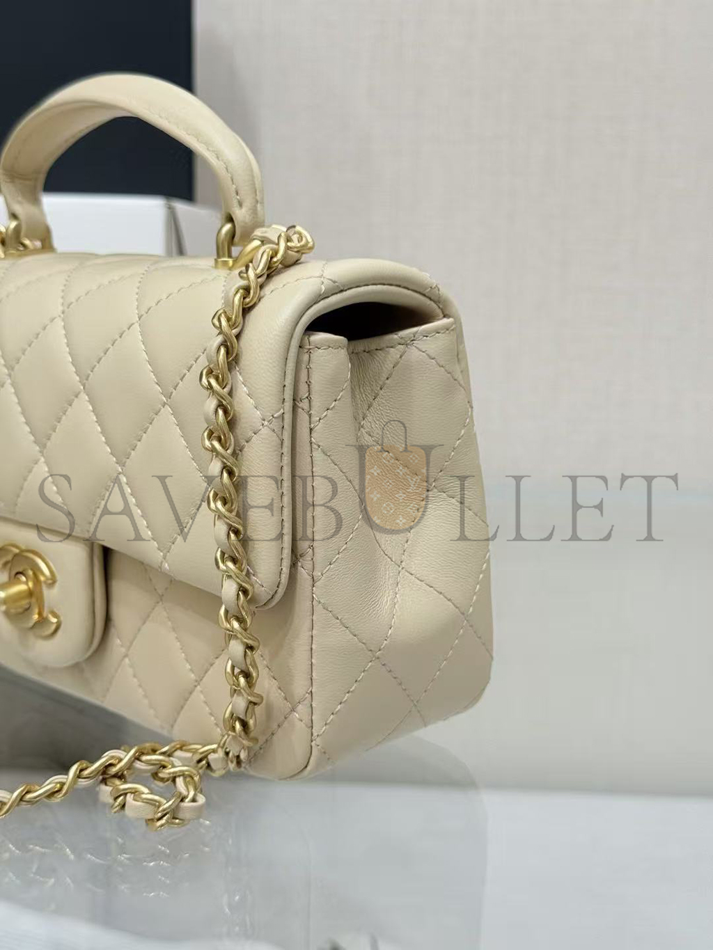 CHANEL MINI RECTANGULAR FLAP WITH TOP HANDLE LAMBSKIN LIGHT GOLD HARDWARE (20*13*6cm)