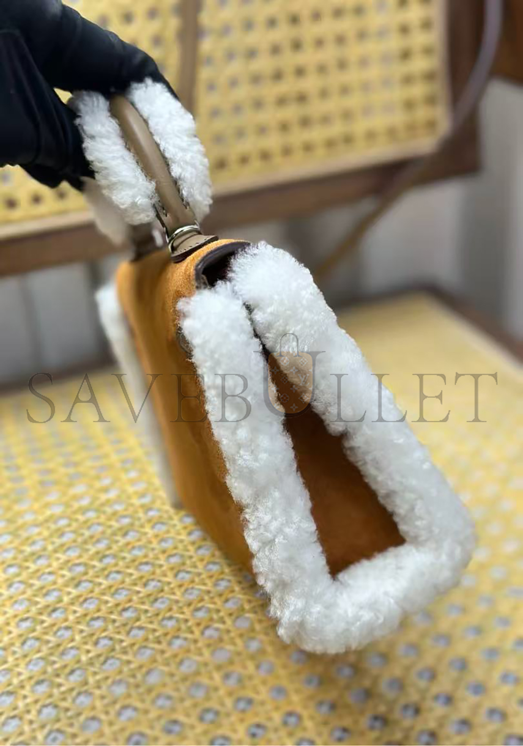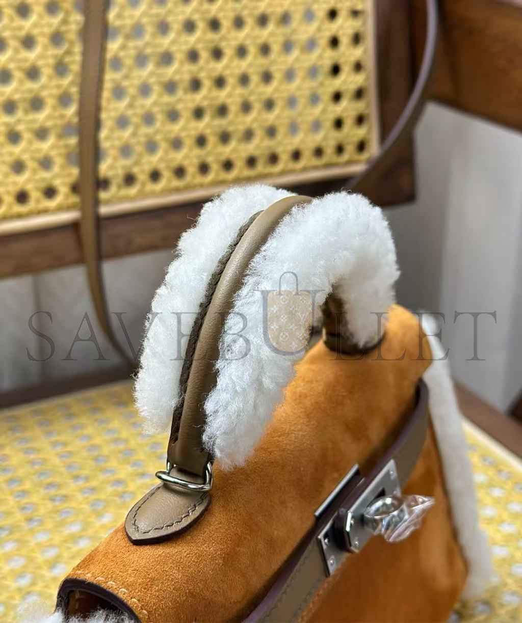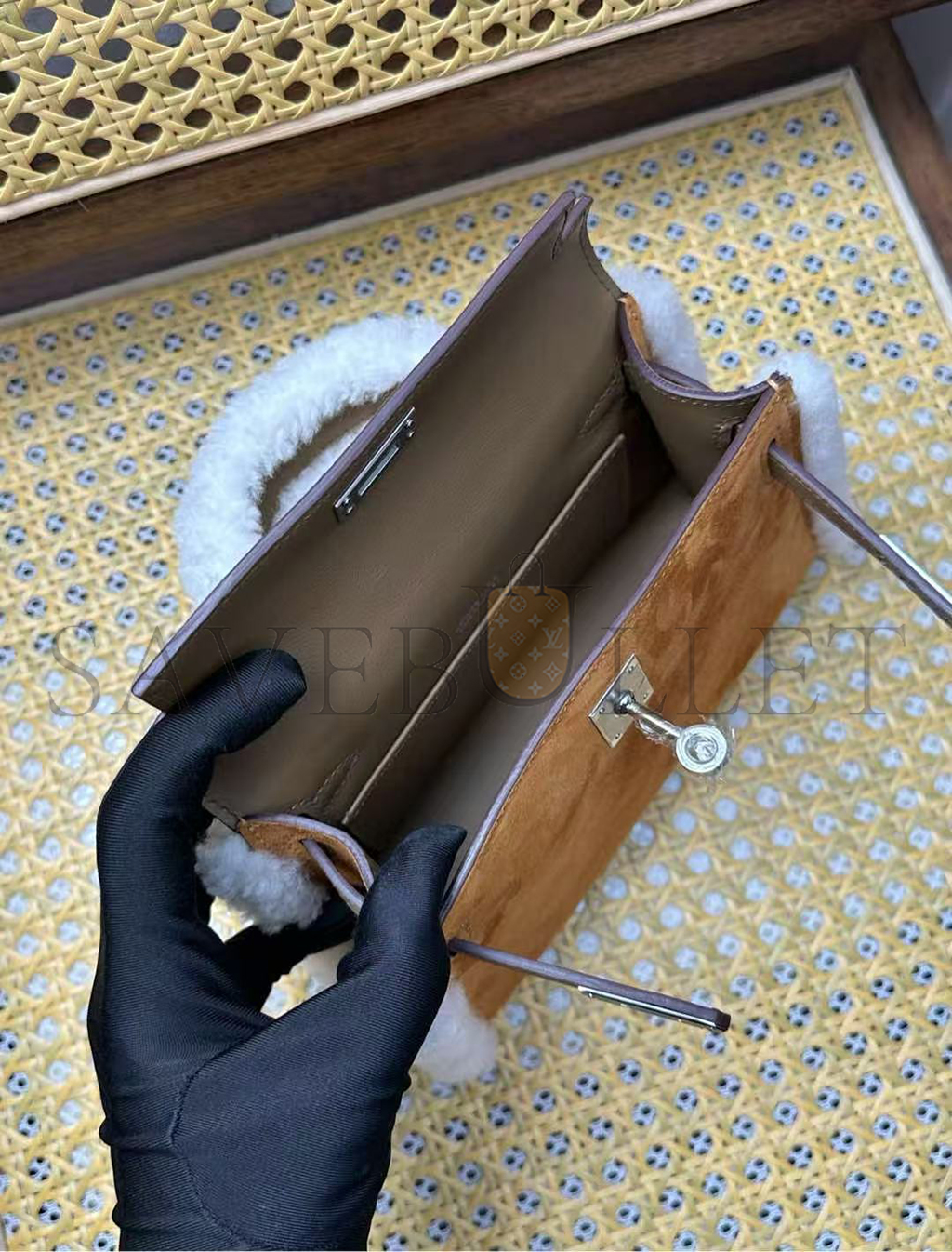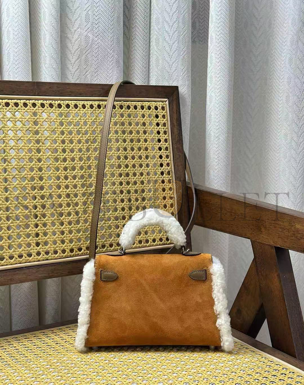 HERMES LIMITED EDITION ALEZAN SWIFT, CHAMOIS GRIZZLY AND ECRU SHEARLING TEDDY PLUSH MINI KELLY II 20 PALLADIUM HARDWARE H084115CKAC (19*12*6cm)