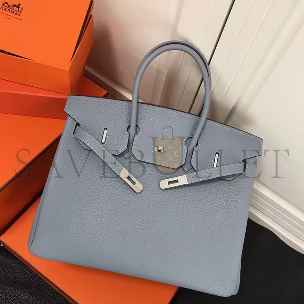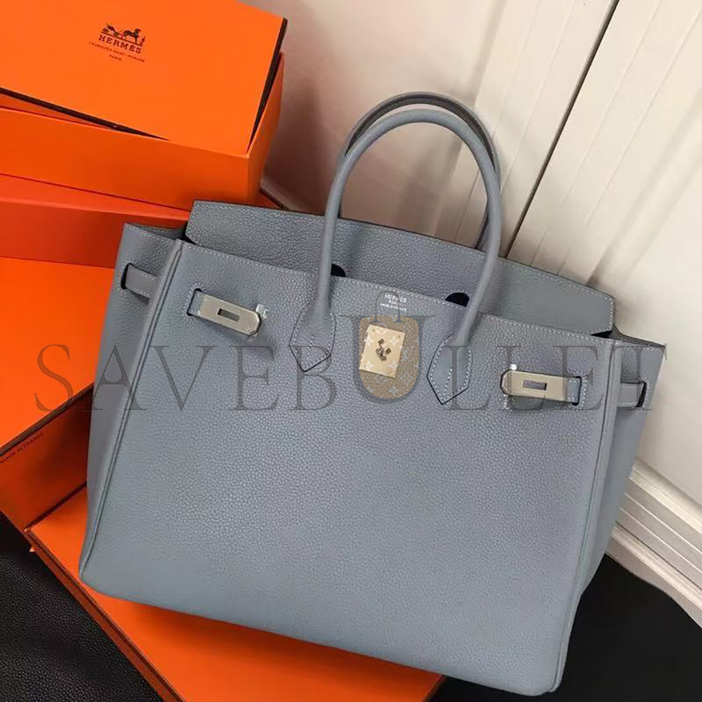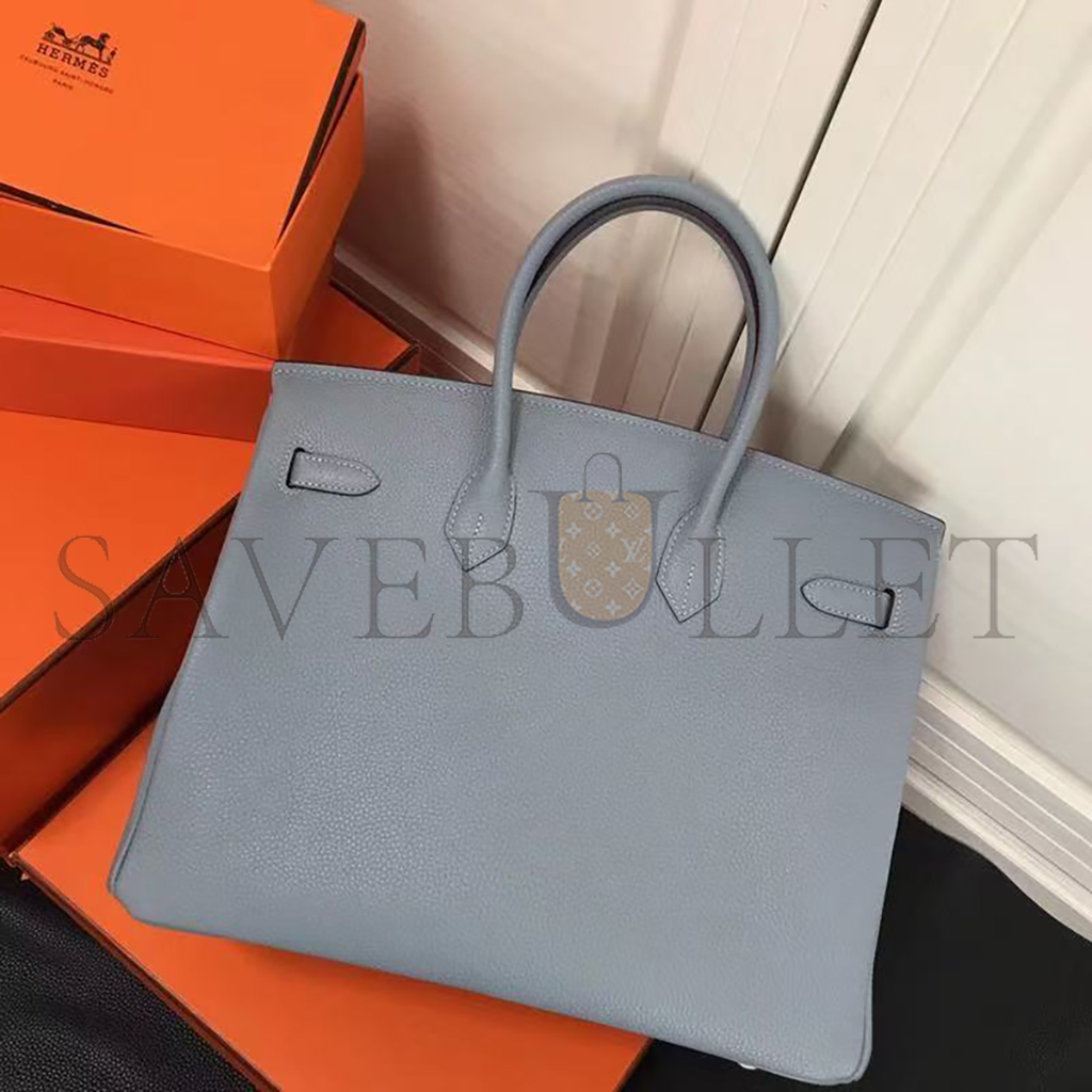 HERMES MASTER TOGO LEATHER BIRKIN BLEU LIN 30 SILVER BUCKLE HANDBAG (30*24*15cm)