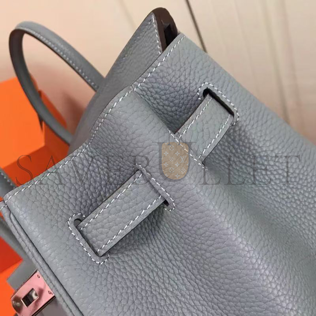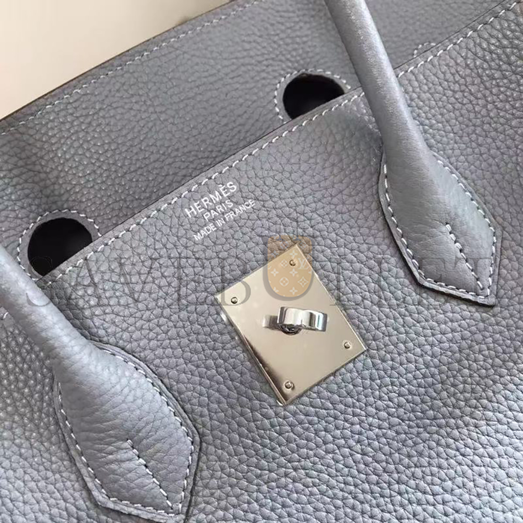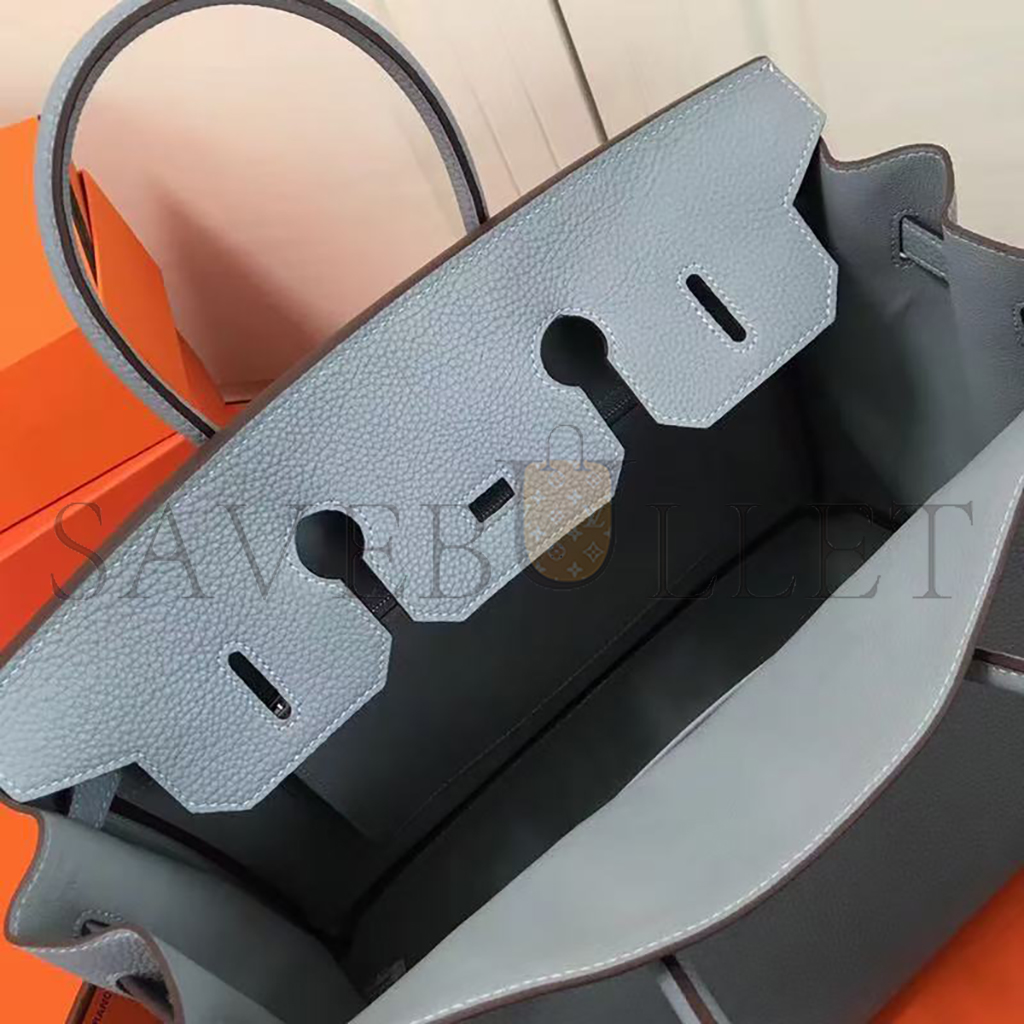 HERMES MASTER TOGO LEATHER BIRKIN BLEU LIN 30 SILVER BUCKLE HANDBAG (30*24*15cm)