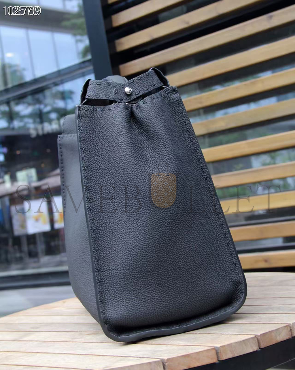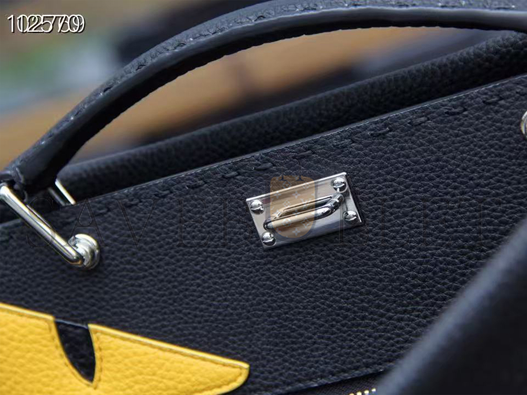 FENDI CUOIO ROMANO SELLERIA MONSTER EYES INLAY LARGE PEEKABOO SATCHEL BLACK SUNFLOWER (42*34*18cm)