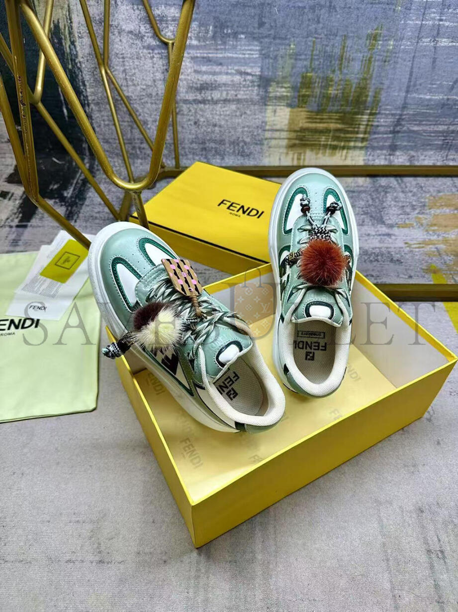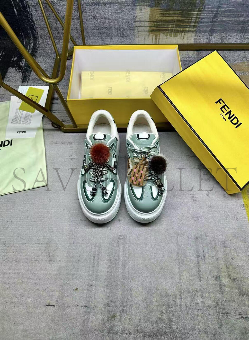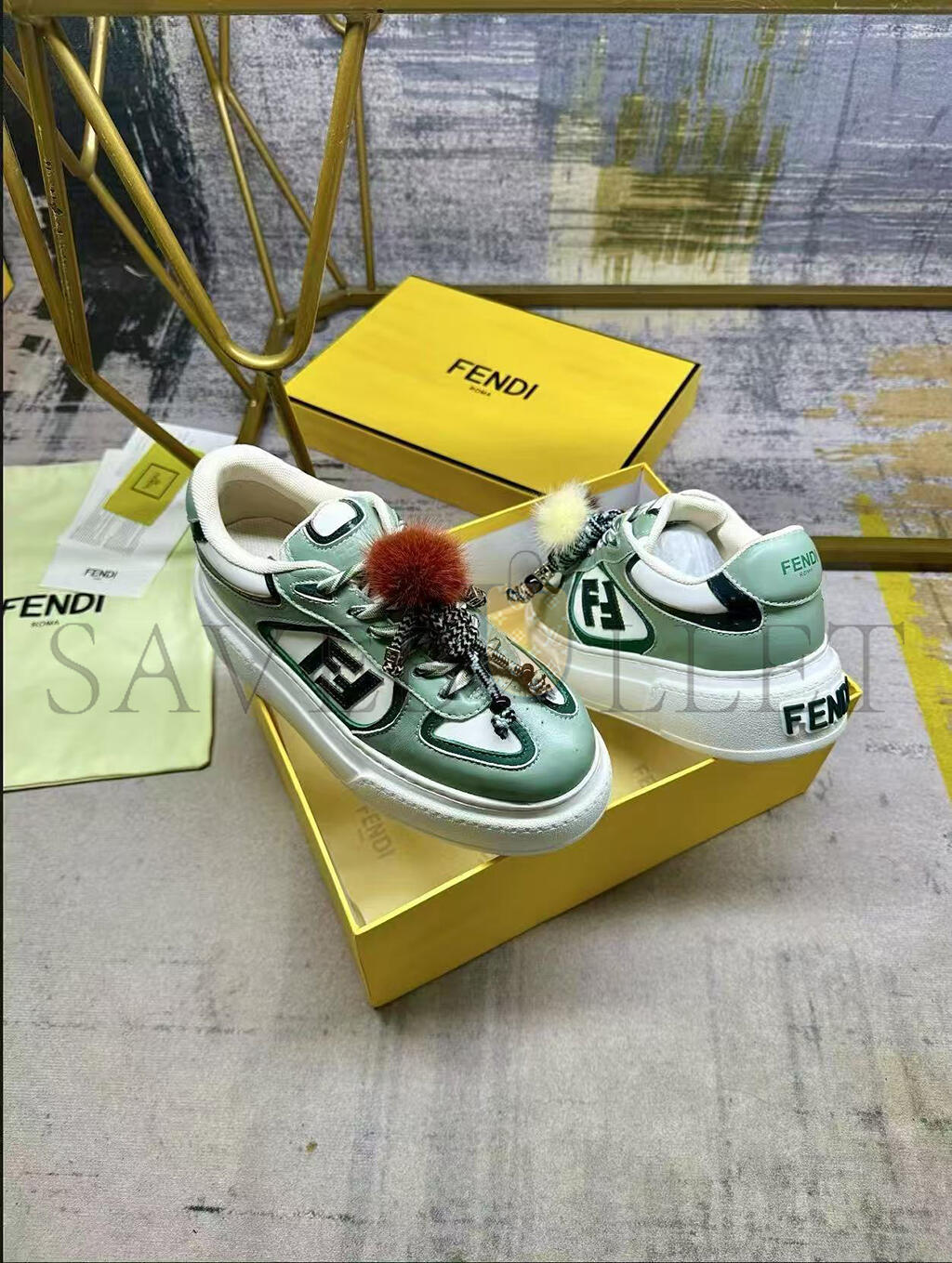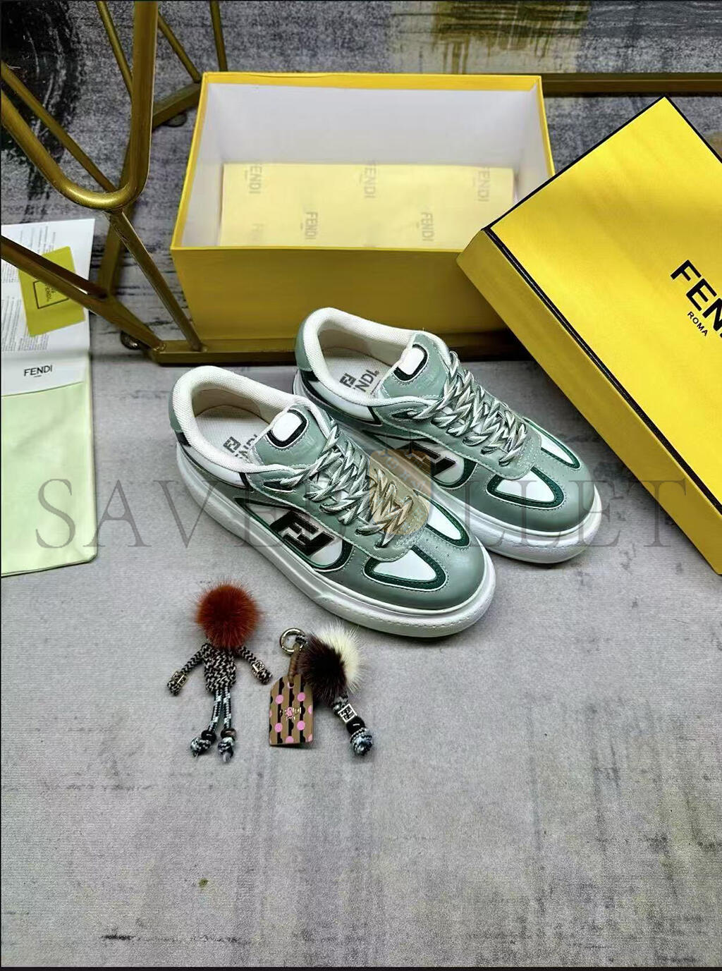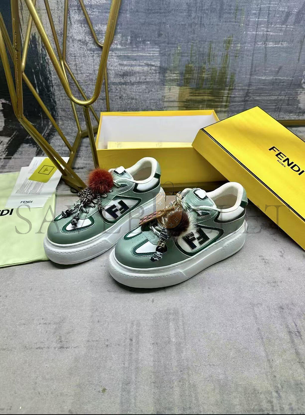 FENDI MATCH LOW TOP PLATFORM SHOES IN GREEN LEATHER 8E8721AY9NF1TO5