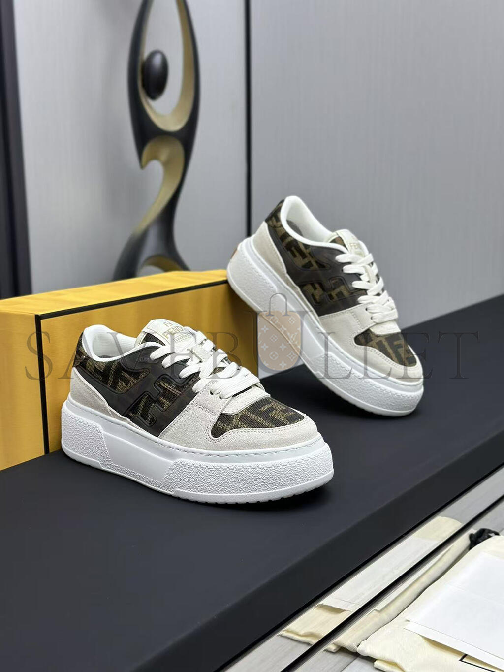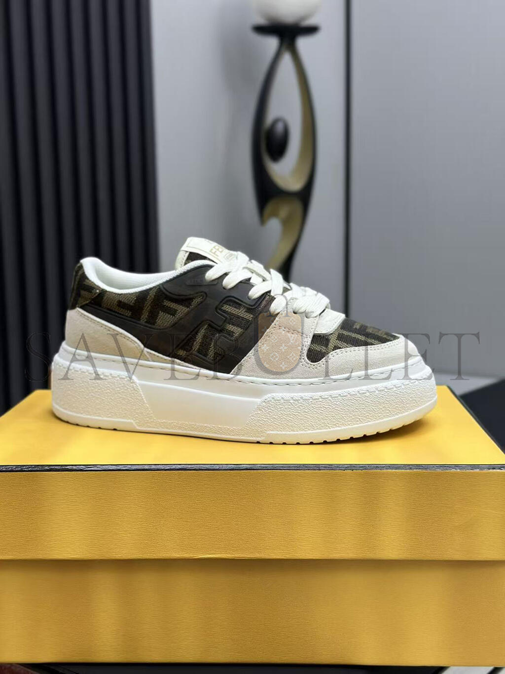 FENDI MATCH CANVAS AND WHITE SUEDE PLATFORM LOW-TOPS 8E8572AQ6IF1PYW