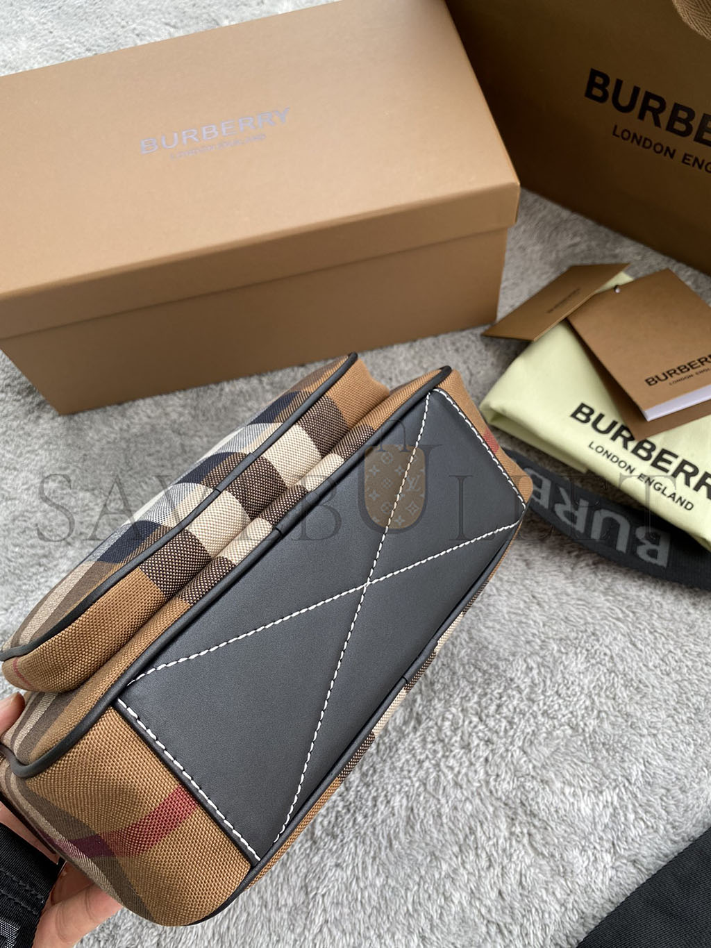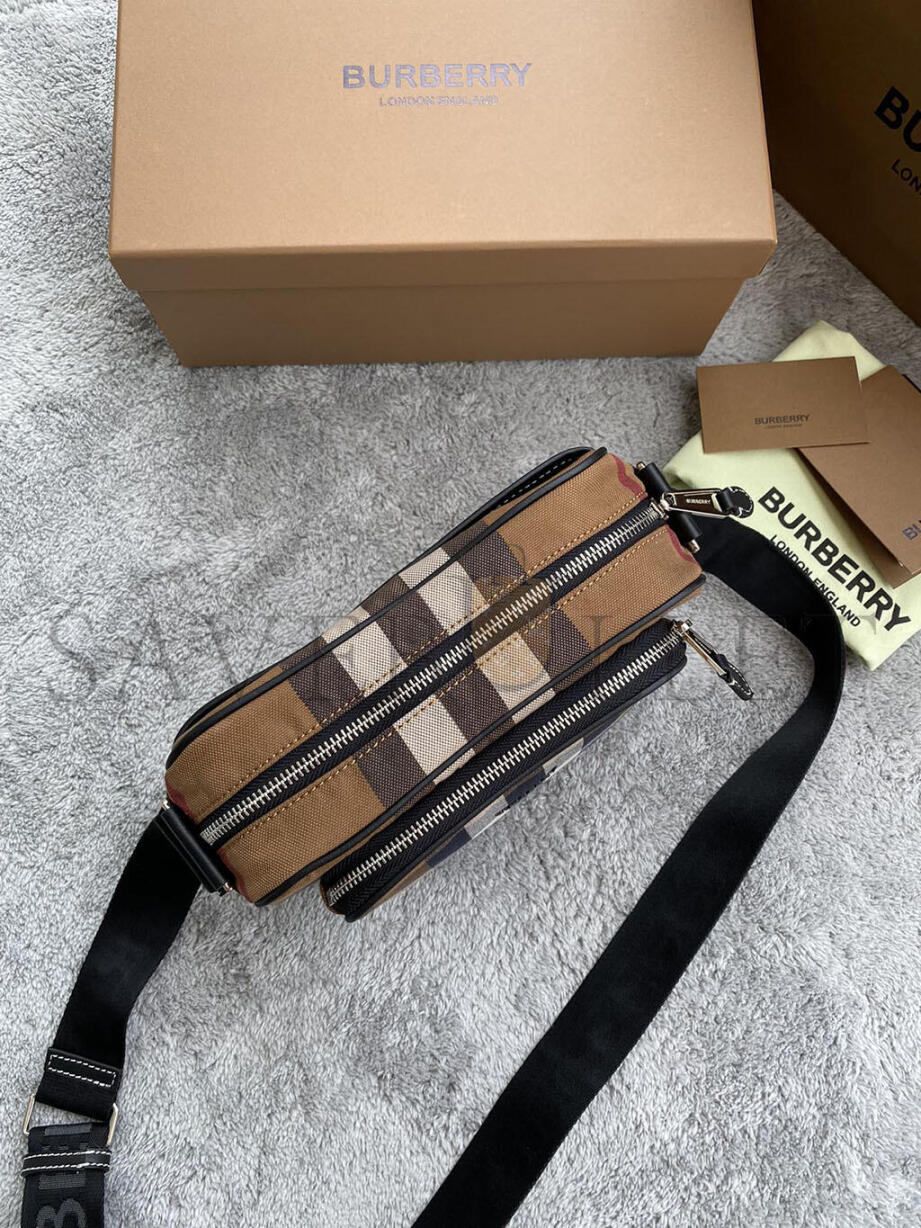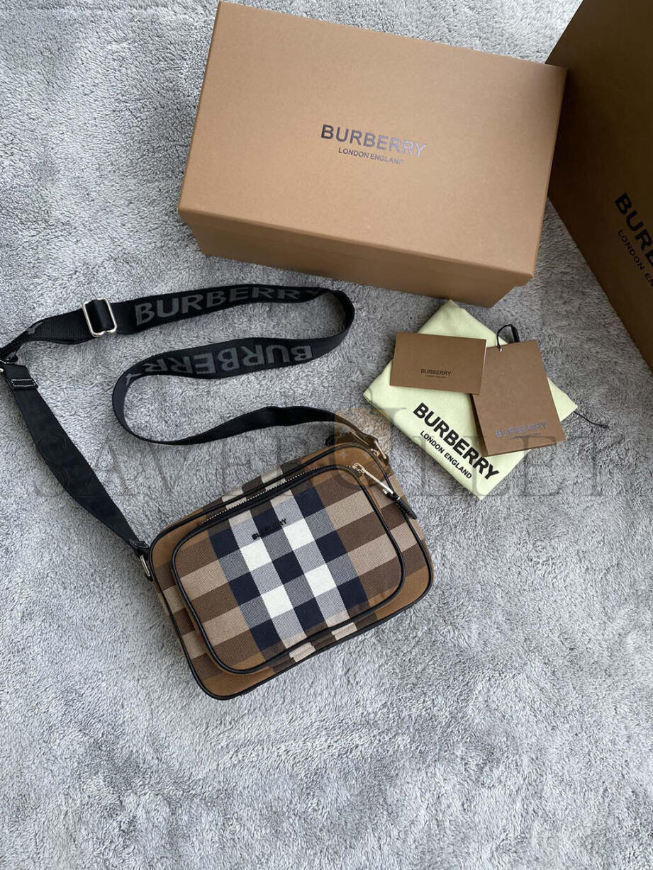 BURBERRY CHECK-PRINT CROSSBODY BAG IN BROWN 80491451 (22.5*14.5*8.2cm)