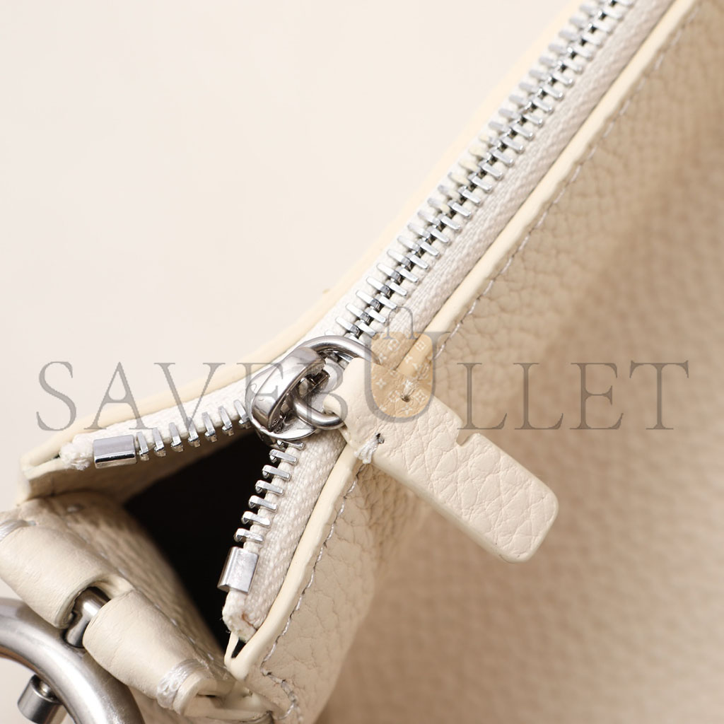 The OnTheGo PM is a tote-style handbag made from pastel-colored Monogram Empreinte leather, with its distinctive Monogram embossing. The four riveted ..