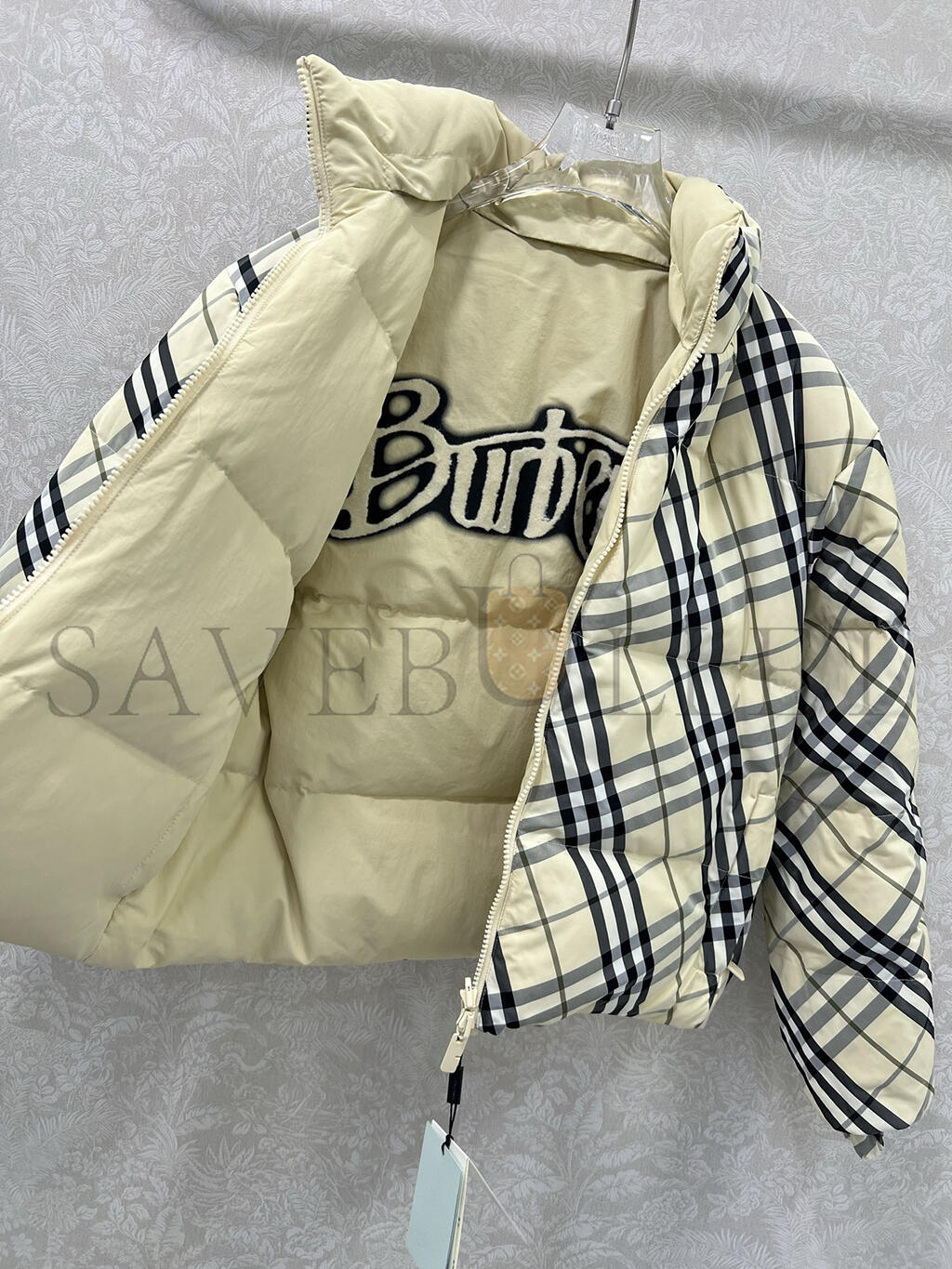 BURBERRY BEIGE CHECK PUFFER REVERSIBLE DOWN JACKET