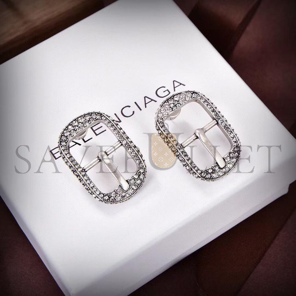 BALENCIAGA M CAGOLE BUCKLE EARRINGS IN METALLIC SILVER 742790TZ90V1407