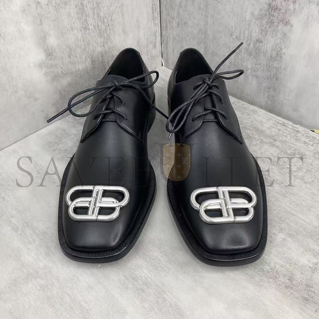 BALENCIAGA MEN'S BLACK SQUARE TOE DERBY SHOES 712642WA8E1