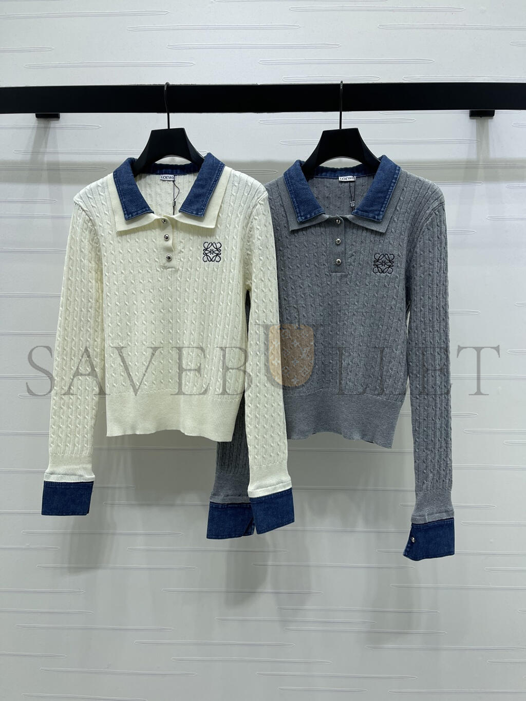 LOEWE DENIM PATCHWORK KNIT LONG SLEEVE