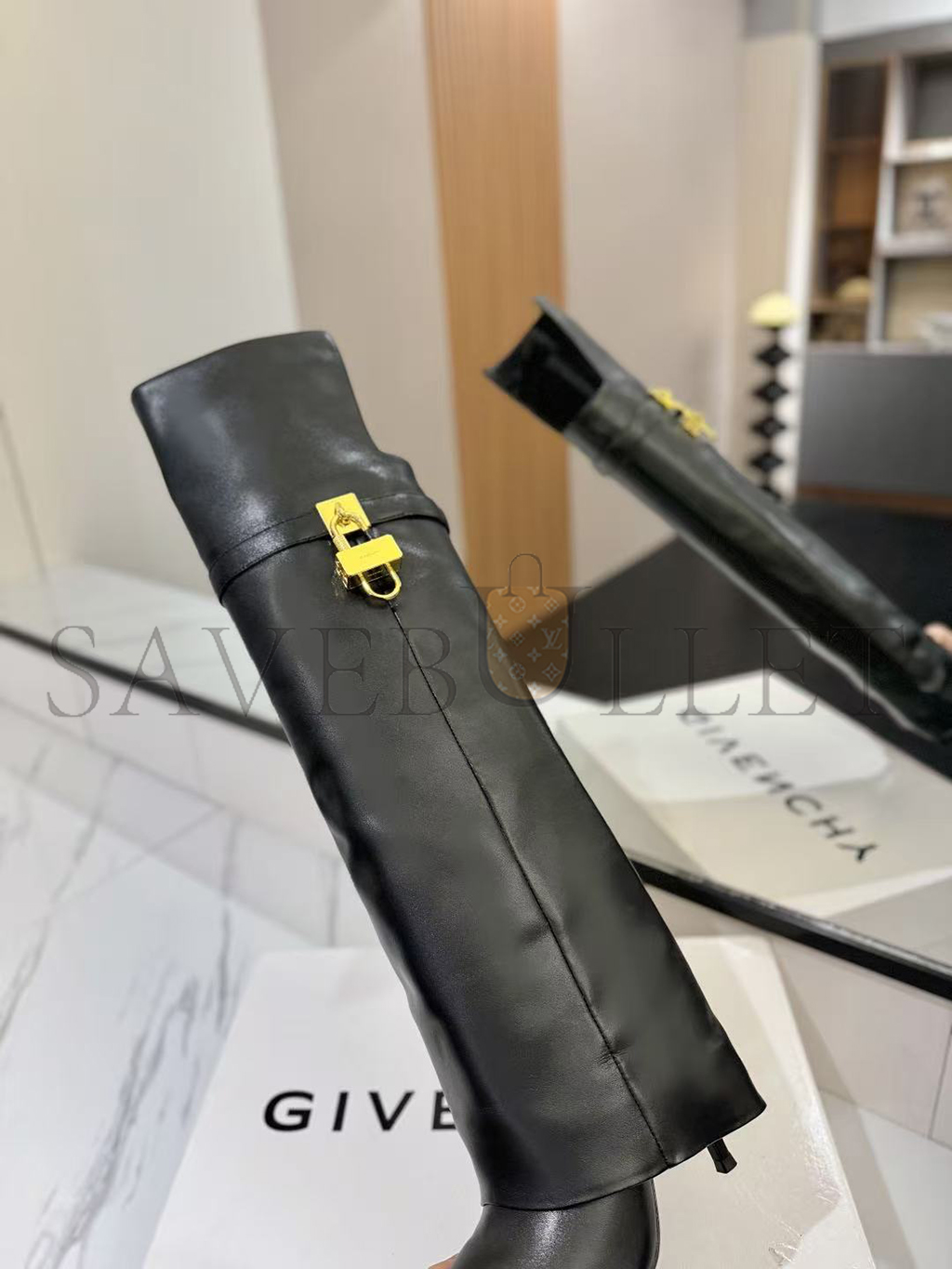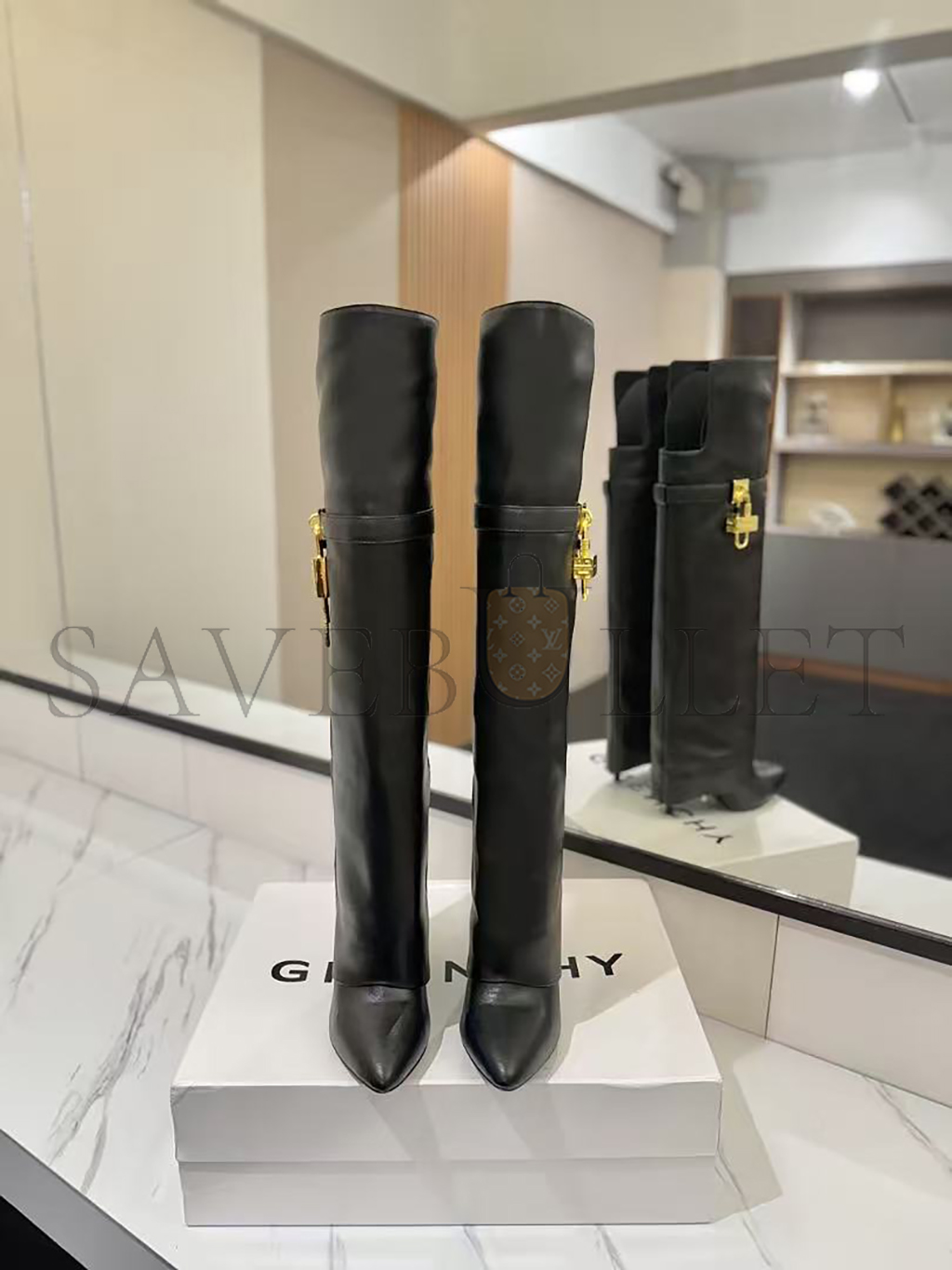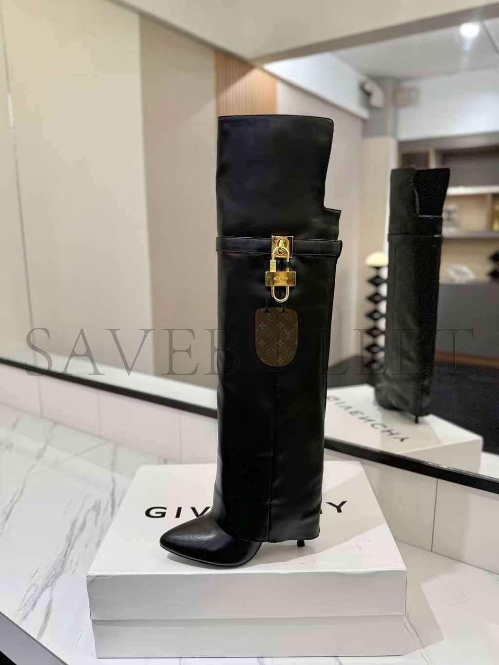 GIVENCHY SHARK LOCK STILETTO OVER-THE-KNEE BOOTS IN LEATHER BE703RE223-001