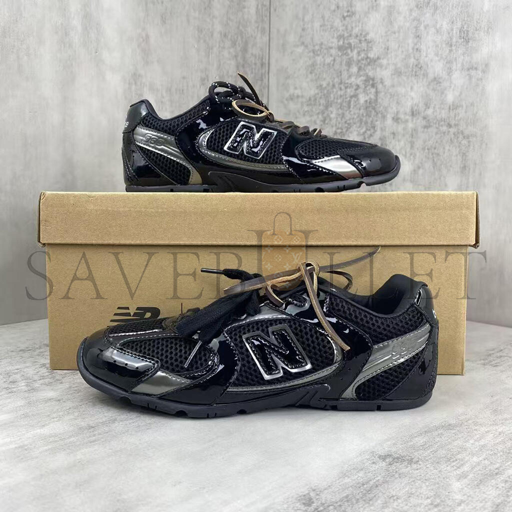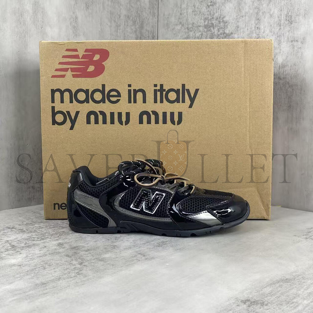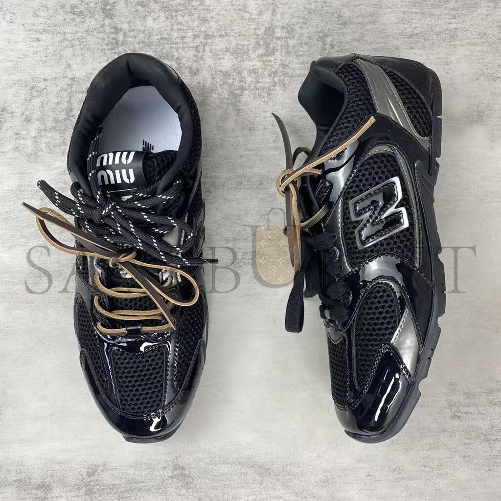MIU MIU X NEW BALANCE 530 SL METALLIC LEATHER AND MESH SNEAKERS 5E165E