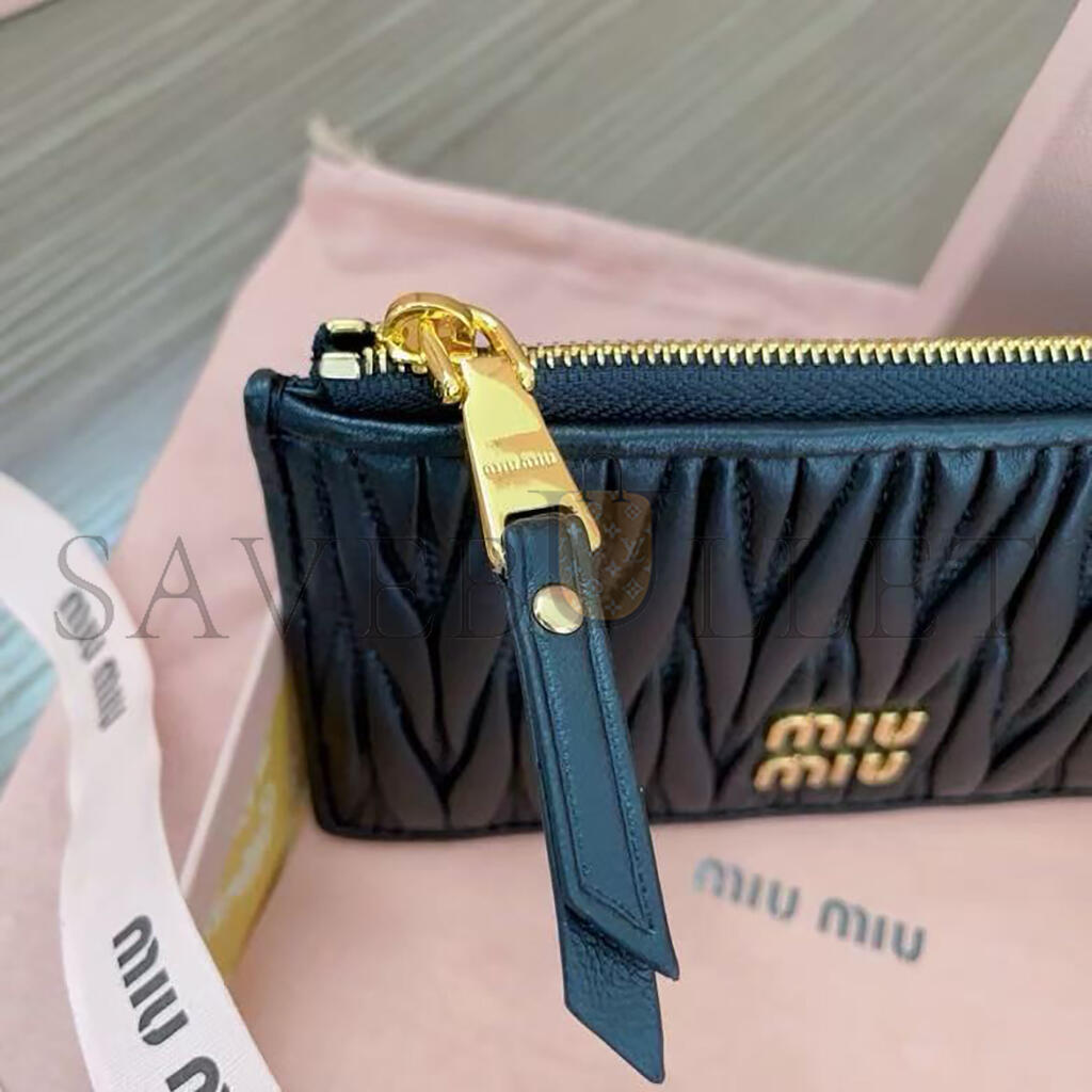 MIU MIU MATELASSÉ ZIPPERED SOLID COLOR LOGO LEATHER WALLET 5MB006 (15*8cm)