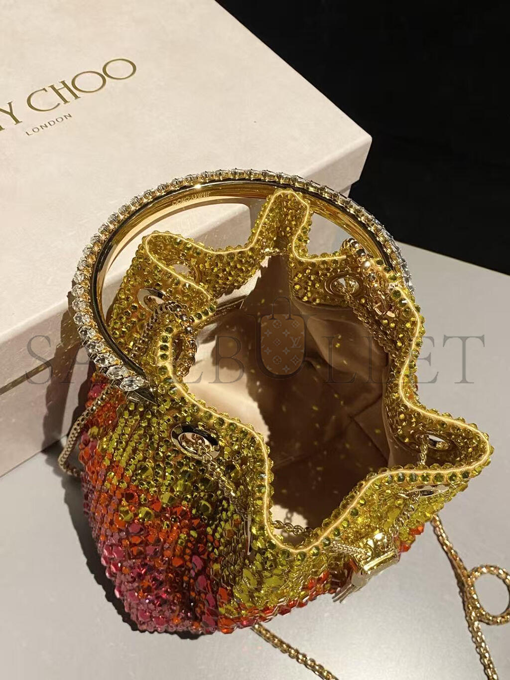 JIMMY CHOO BON BON MULTICOLORED CRYSTAL TOP-HANDLE BAG (15*14*9.5cm)