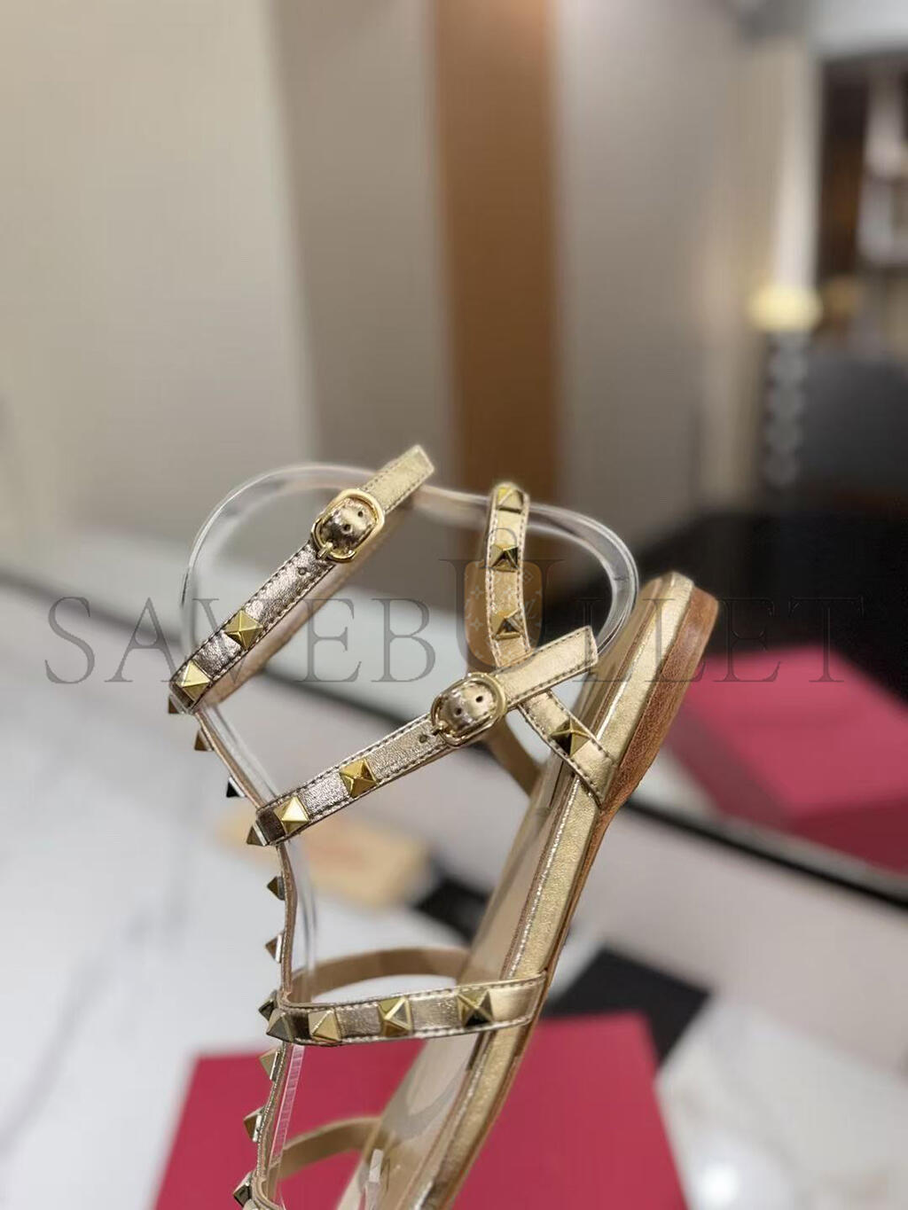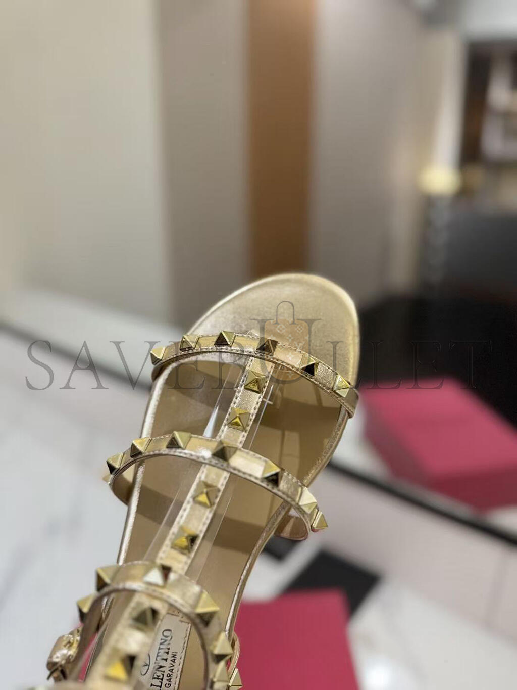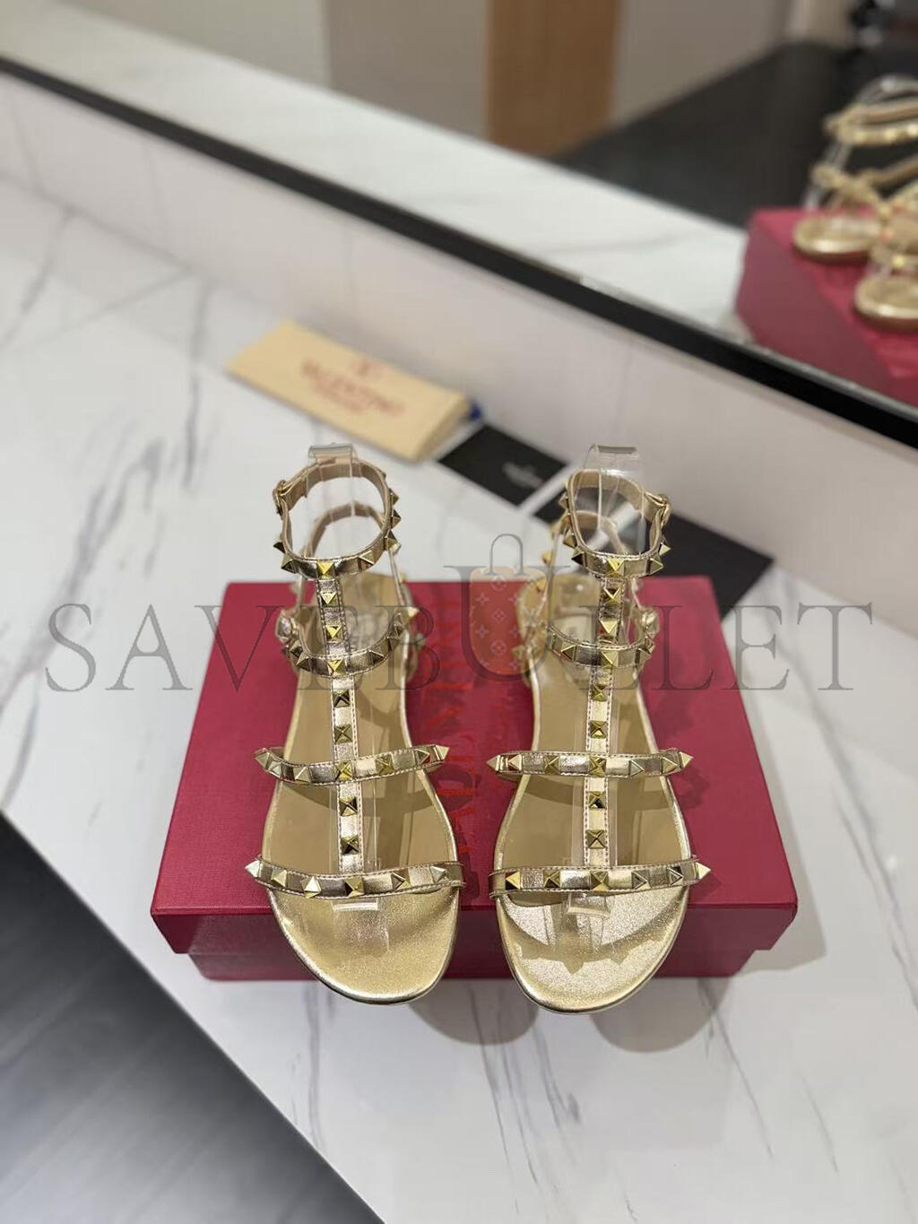 VALENTINO GARAVANI ROCKSTUD METALLIC LEATHER SANDALS