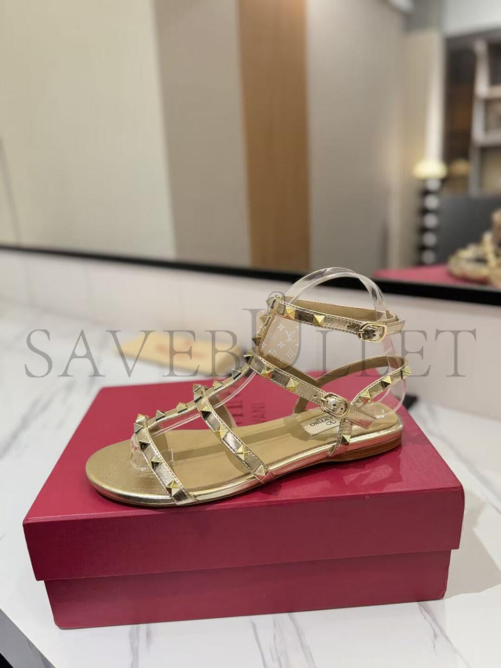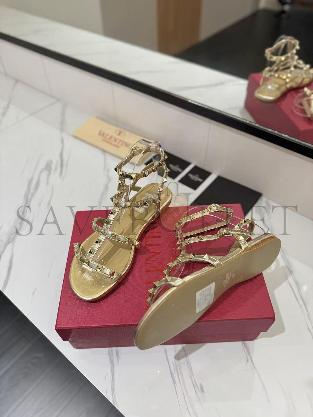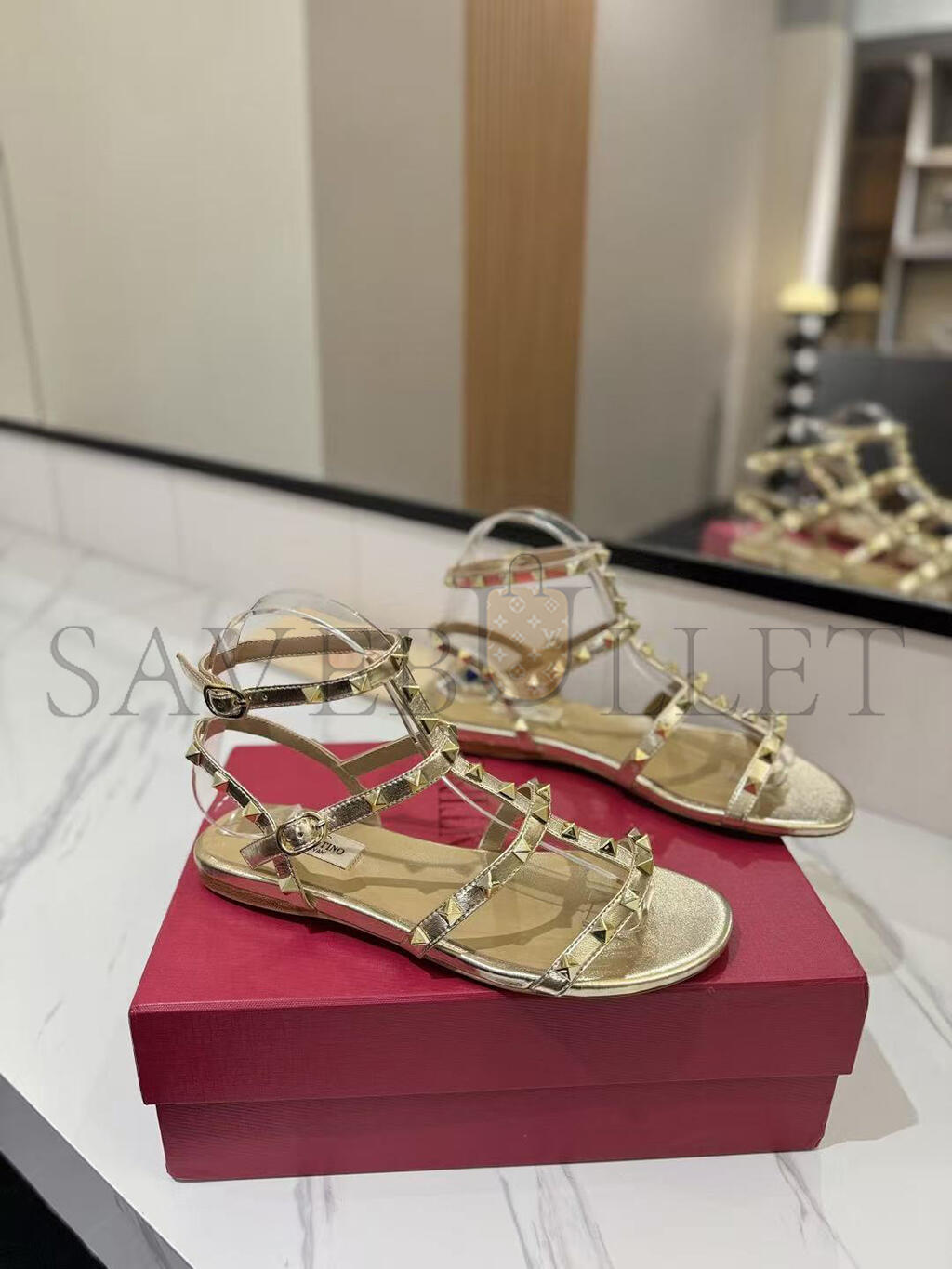 VALENTINO GARAVANI ROCKSTUD METALLIC LEATHER SANDALS