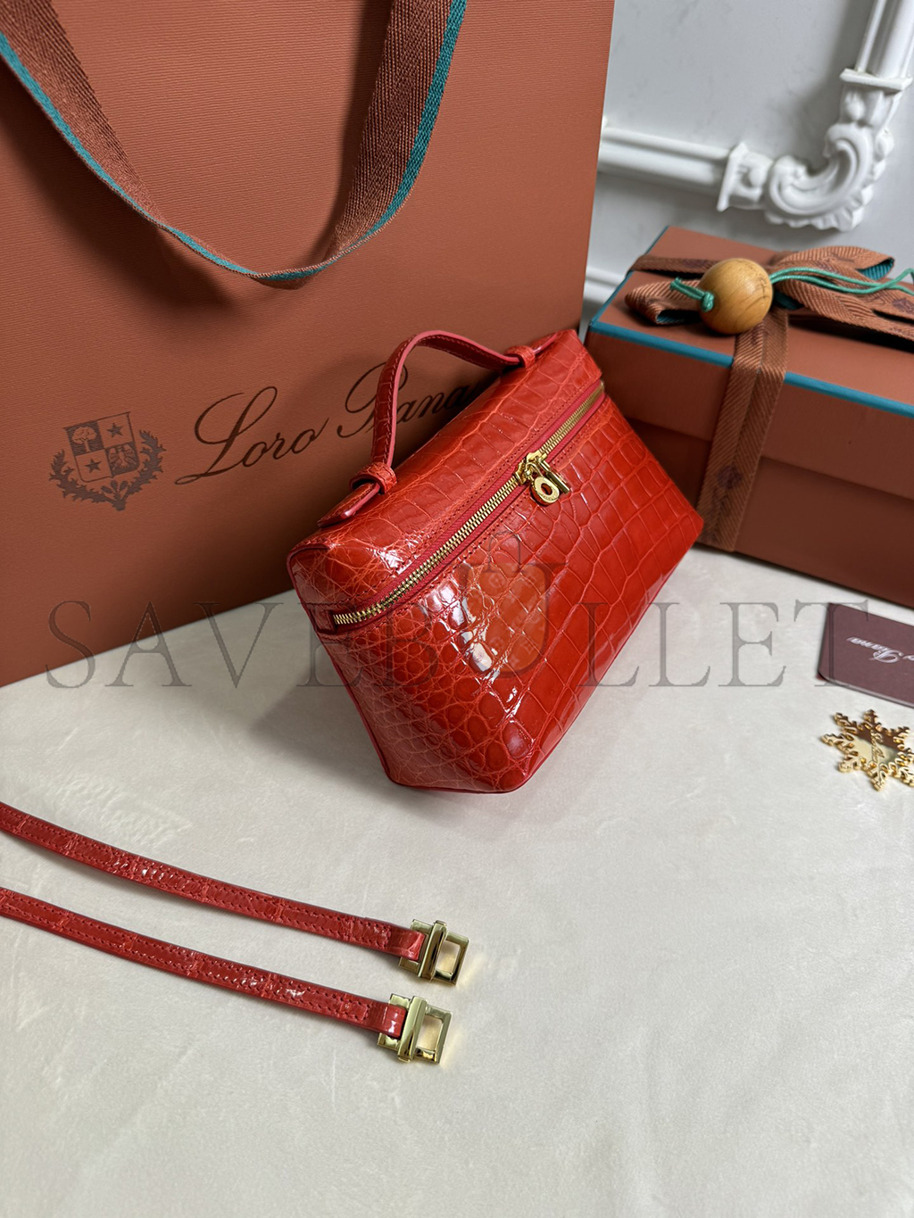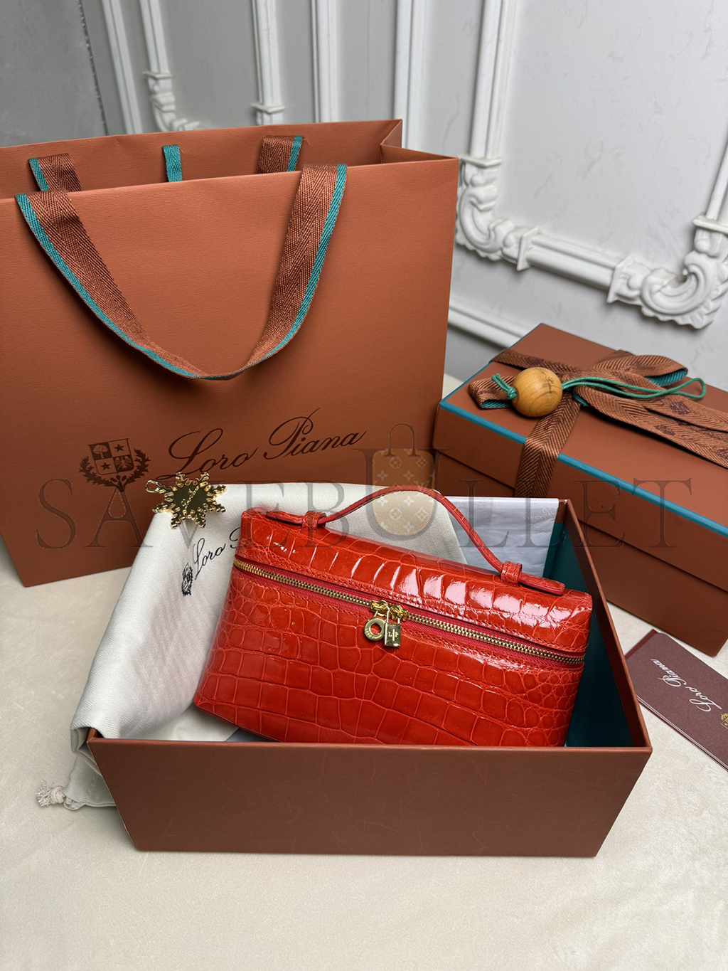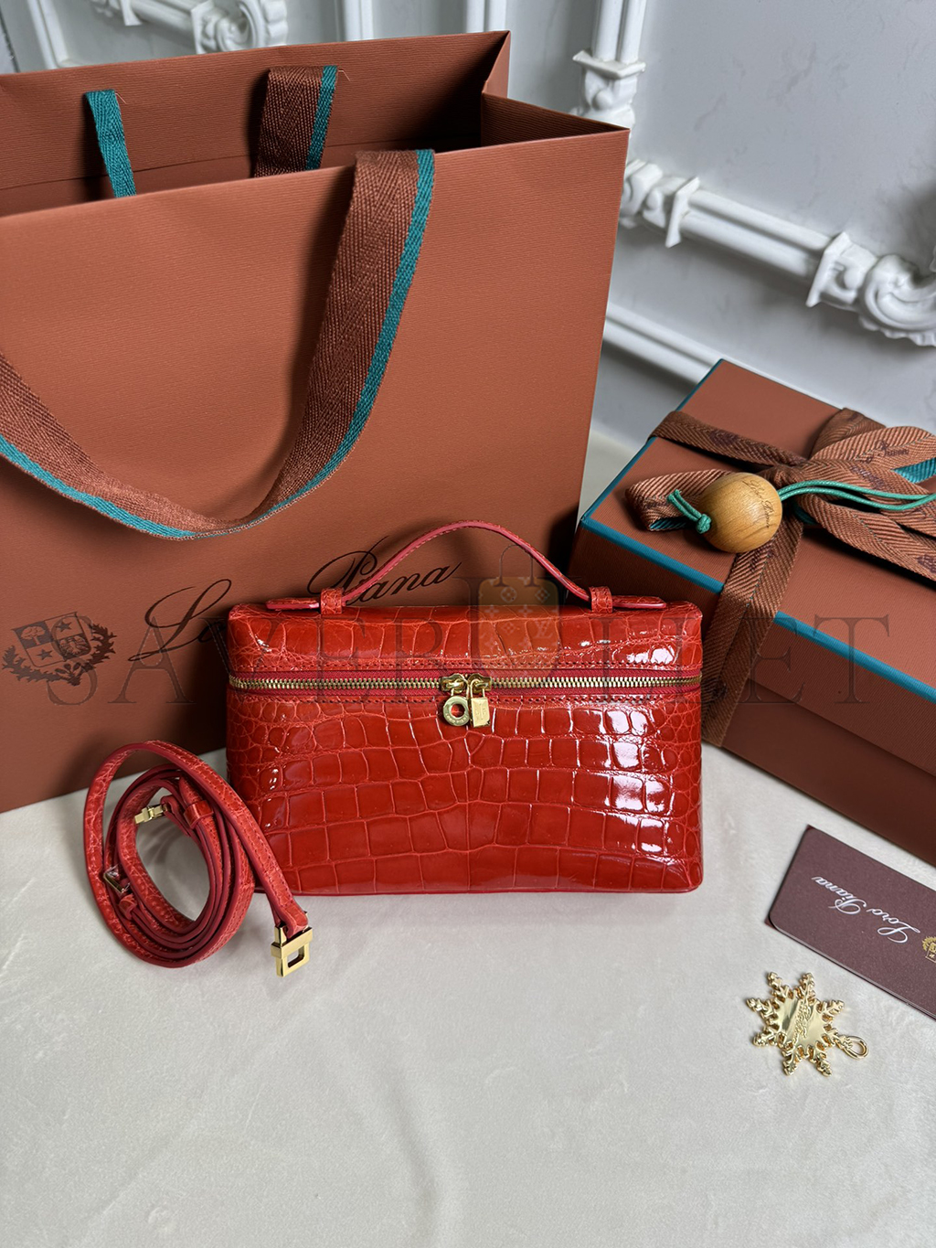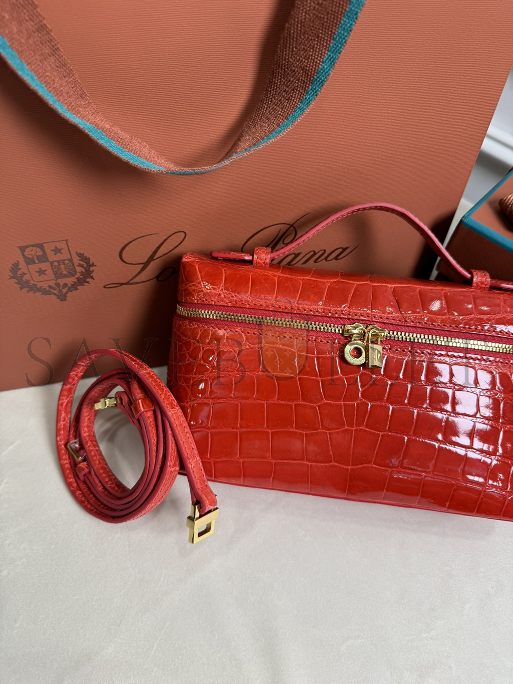 LORO PIANA EXTRA POCKET L19 CROCODILE LEATHER (19*11*6.5cm)