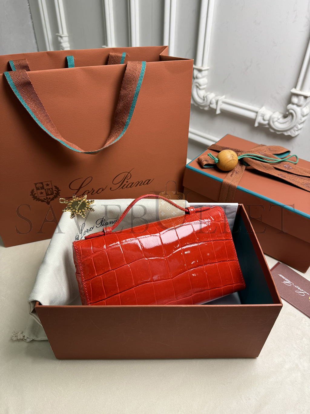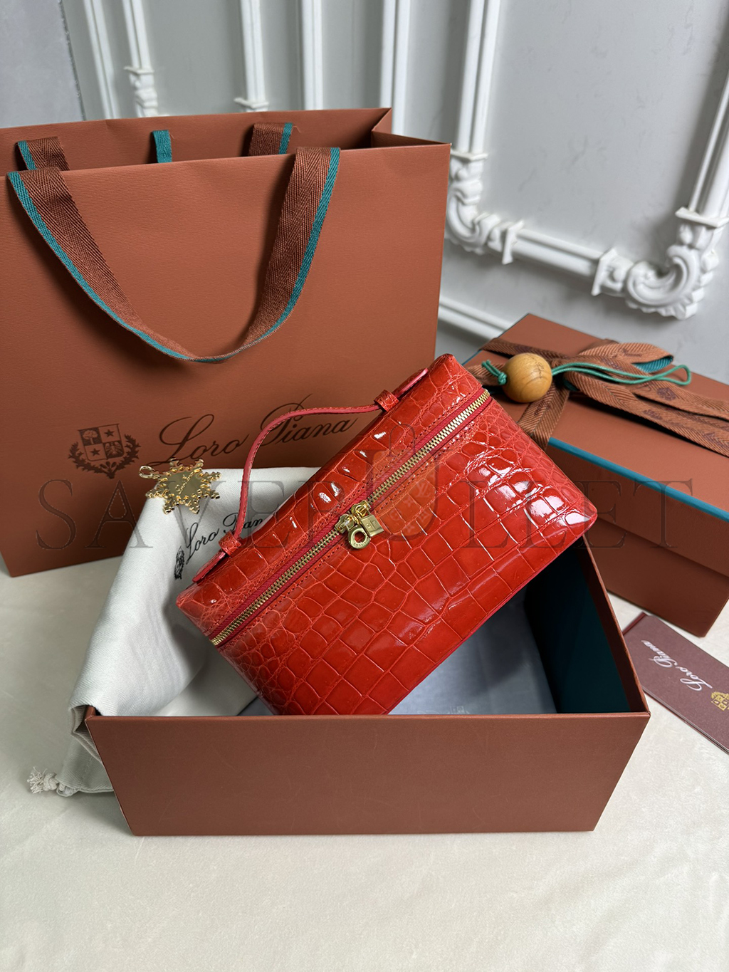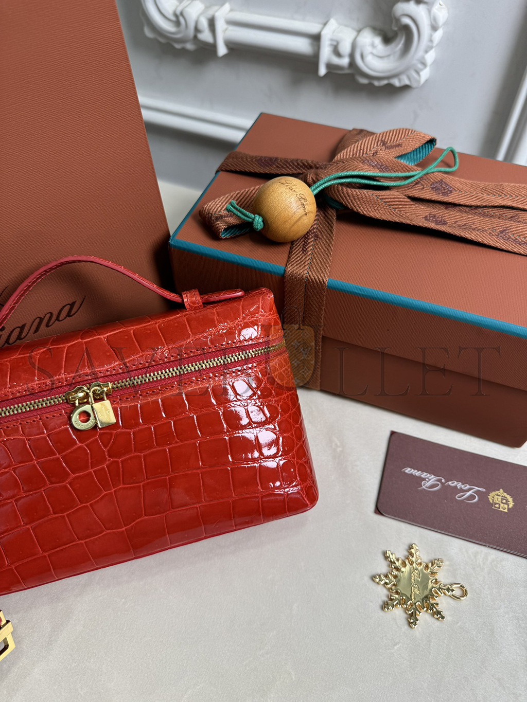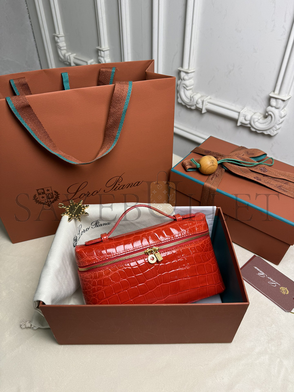 LORO PIANA EXTRA POCKET L19 CROCODILE LEATHER (19*11*6.5cm)