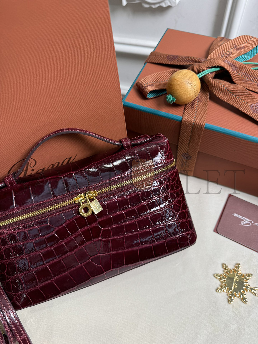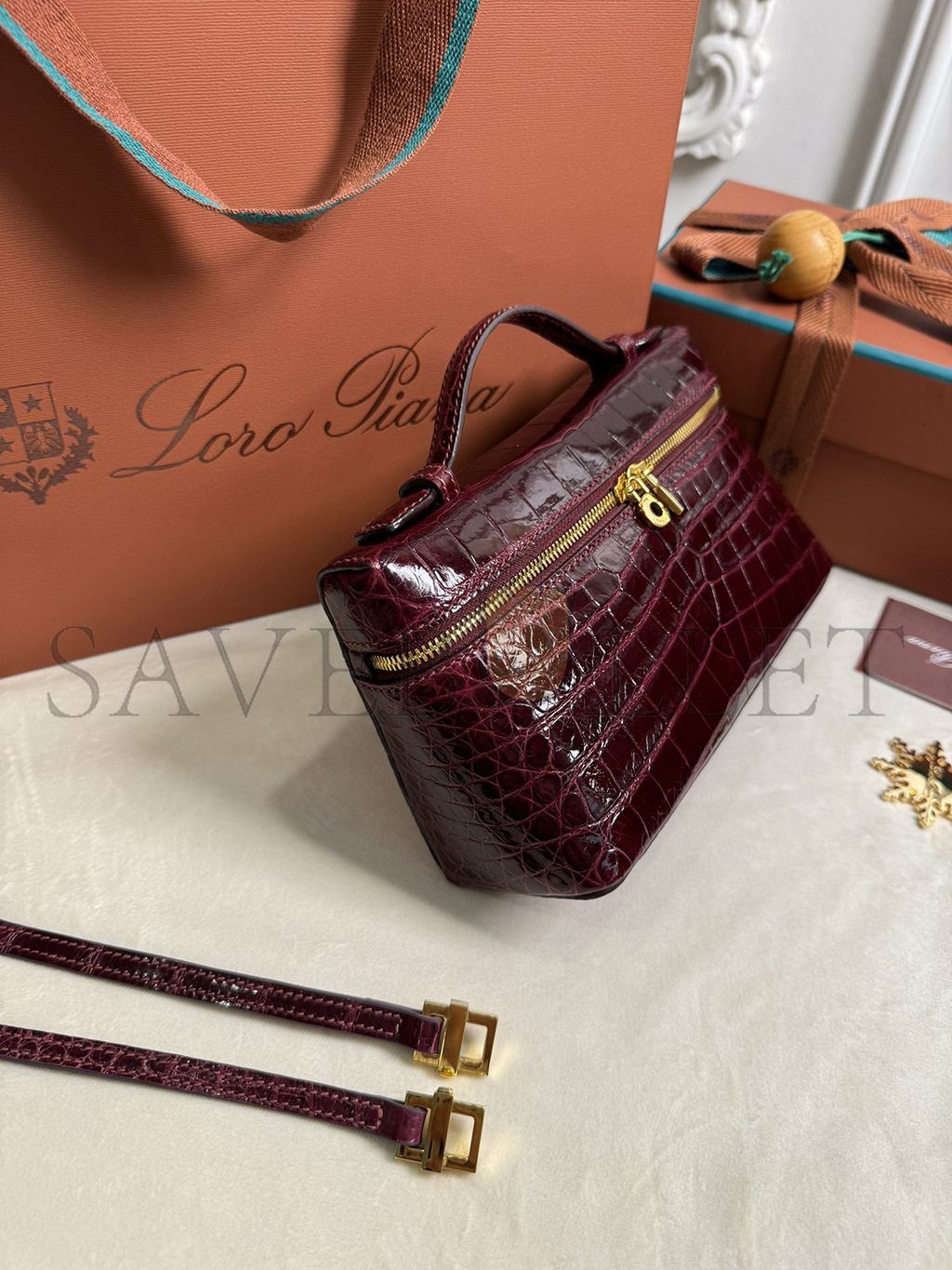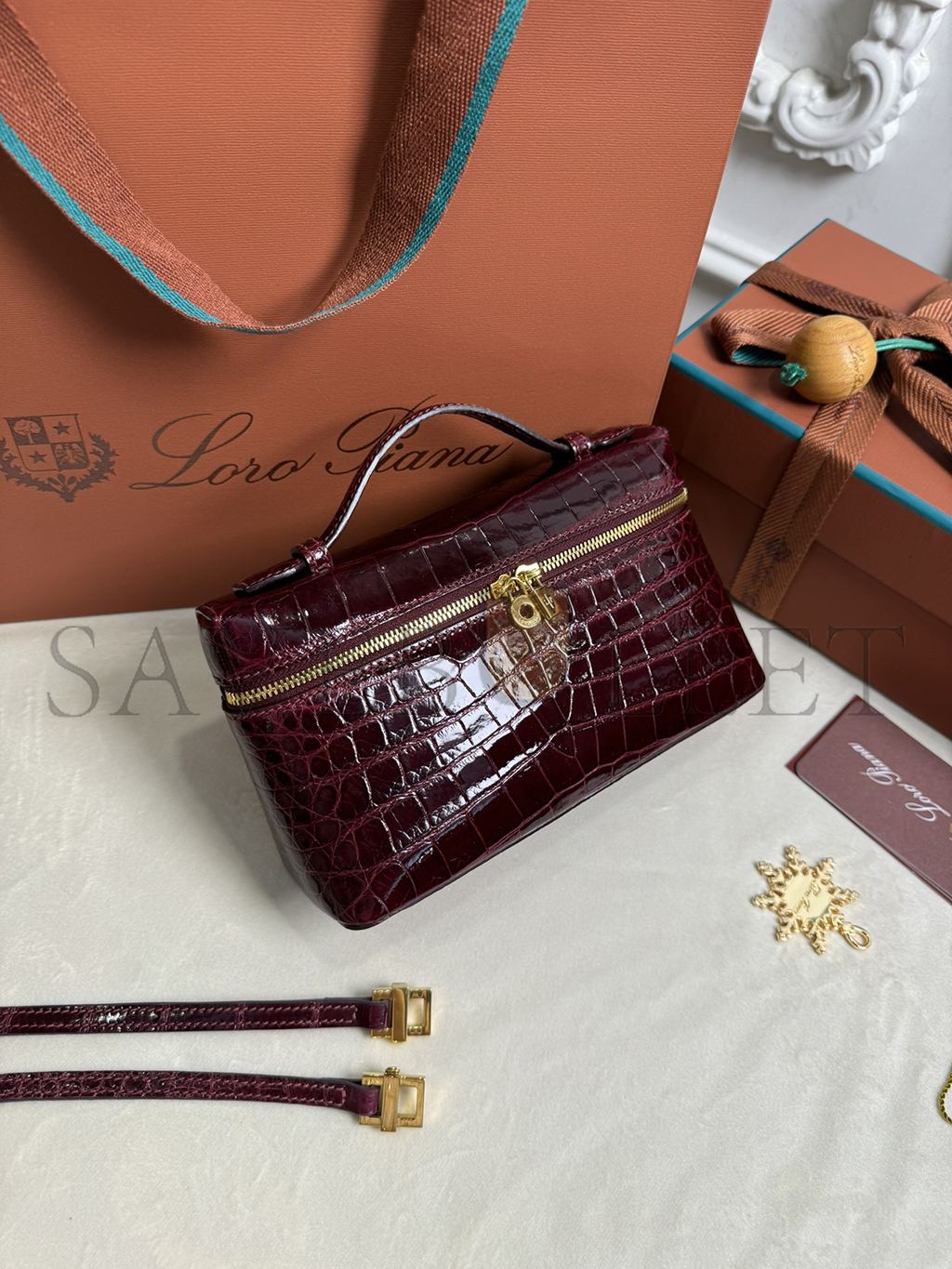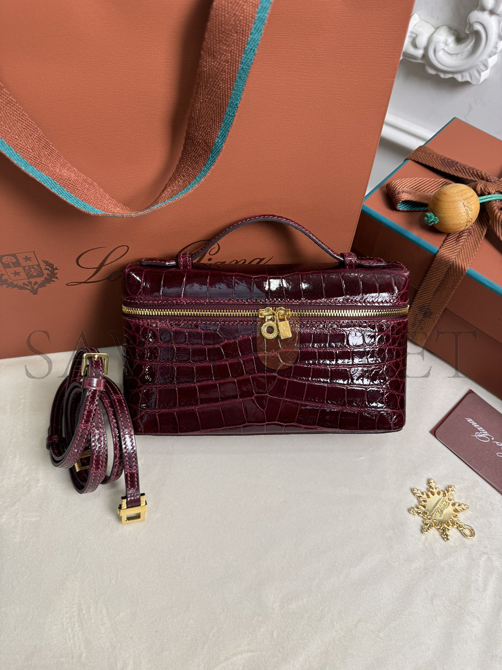 LORO PIANA EXTRA POCKET L19 CROCODILE LEATHER (19*11*6.5cm)