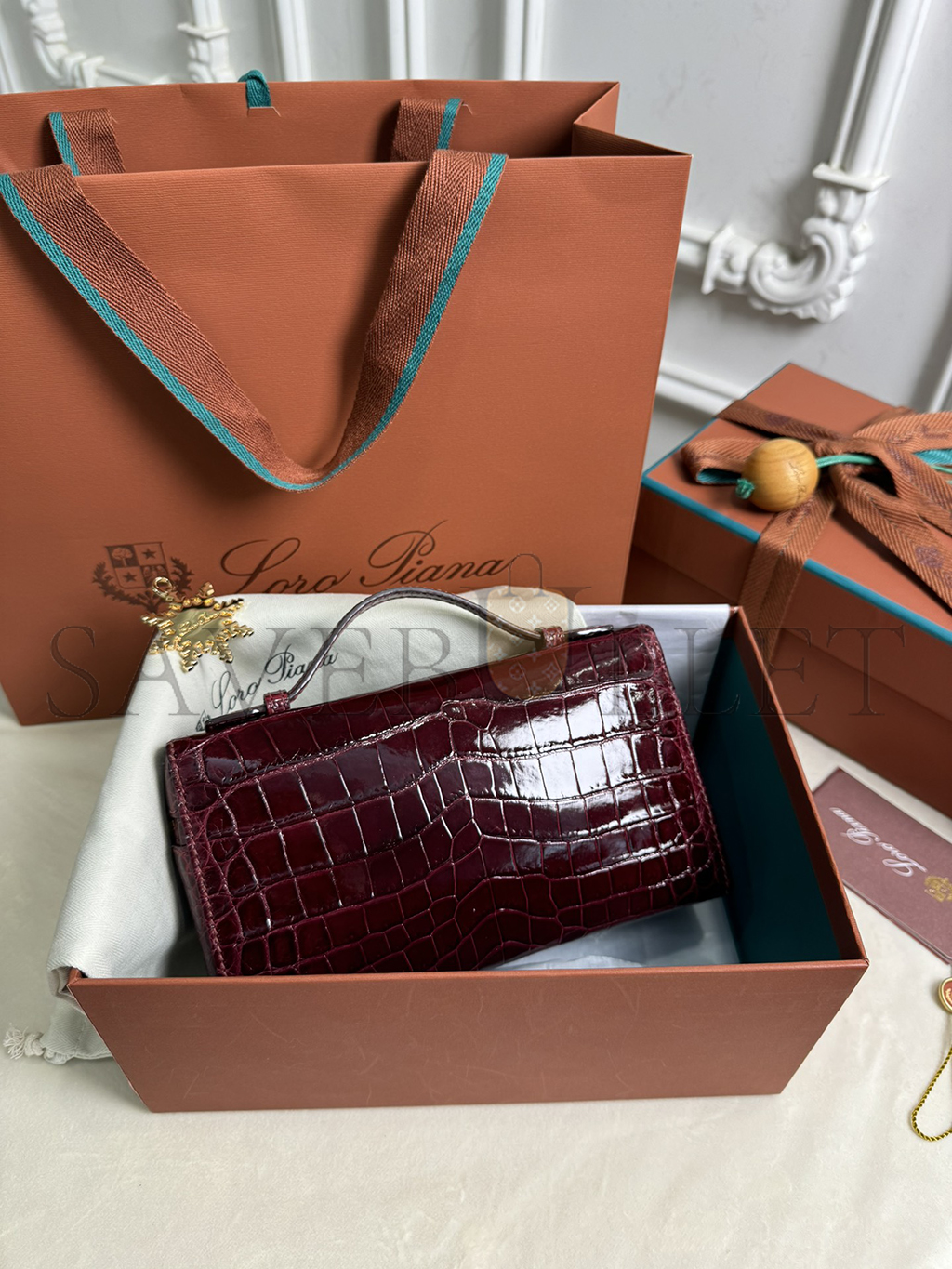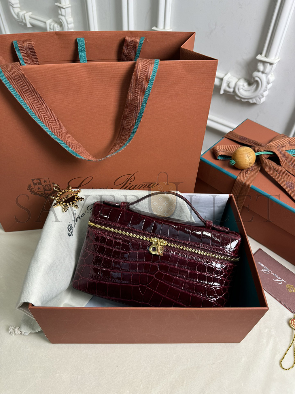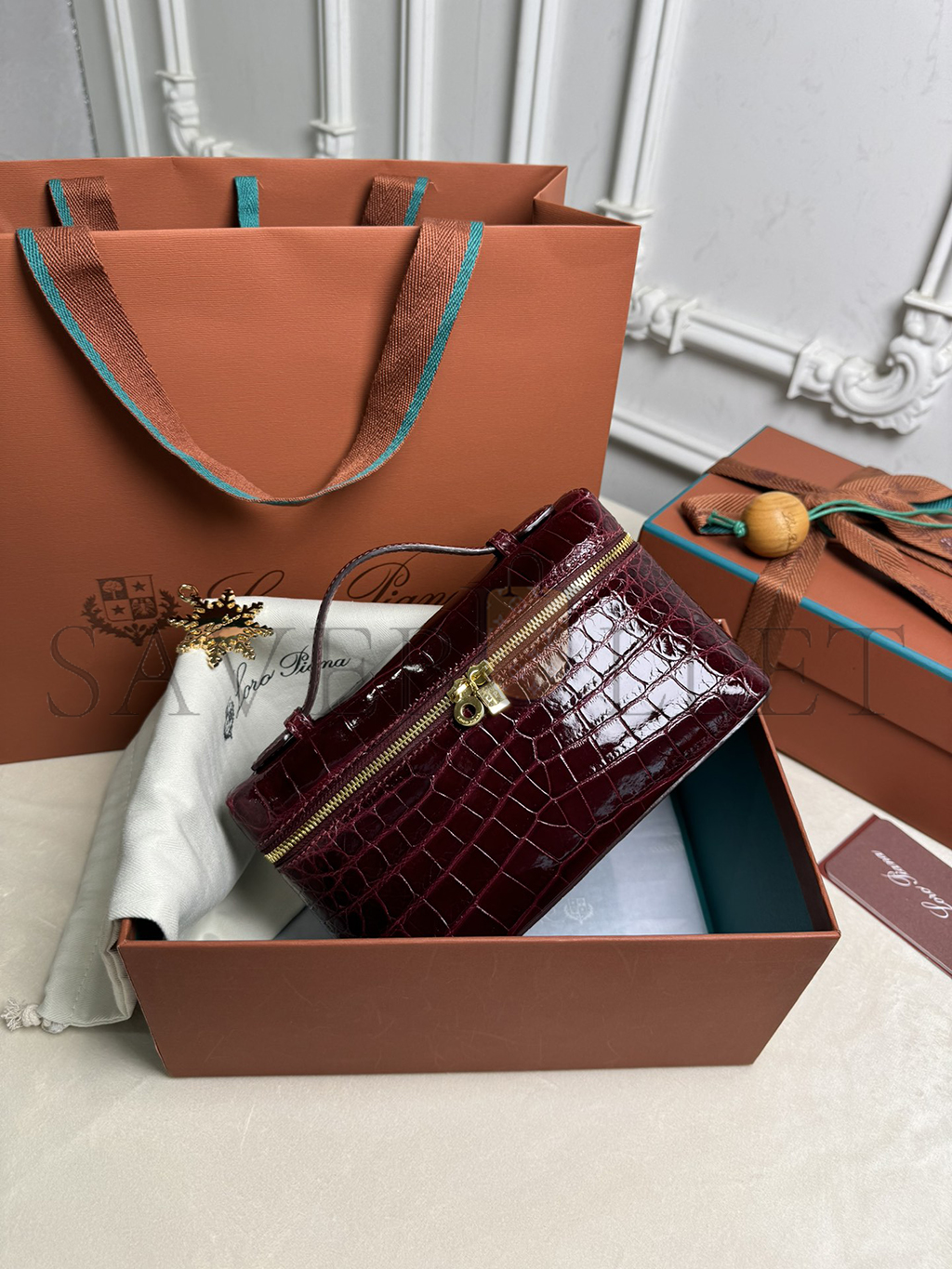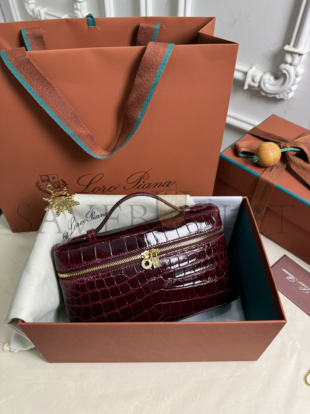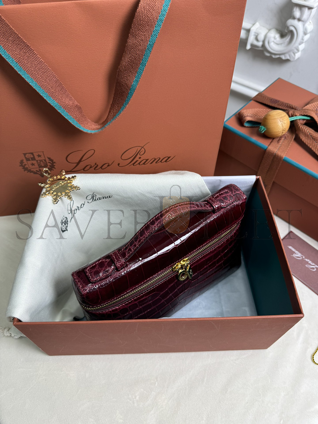 LORO PIANA EXTRA POCKET L19 CROCODILE LEATHER (19*11*6.5cm)