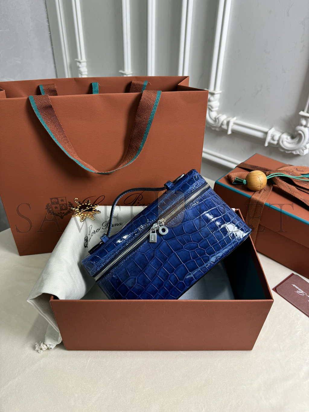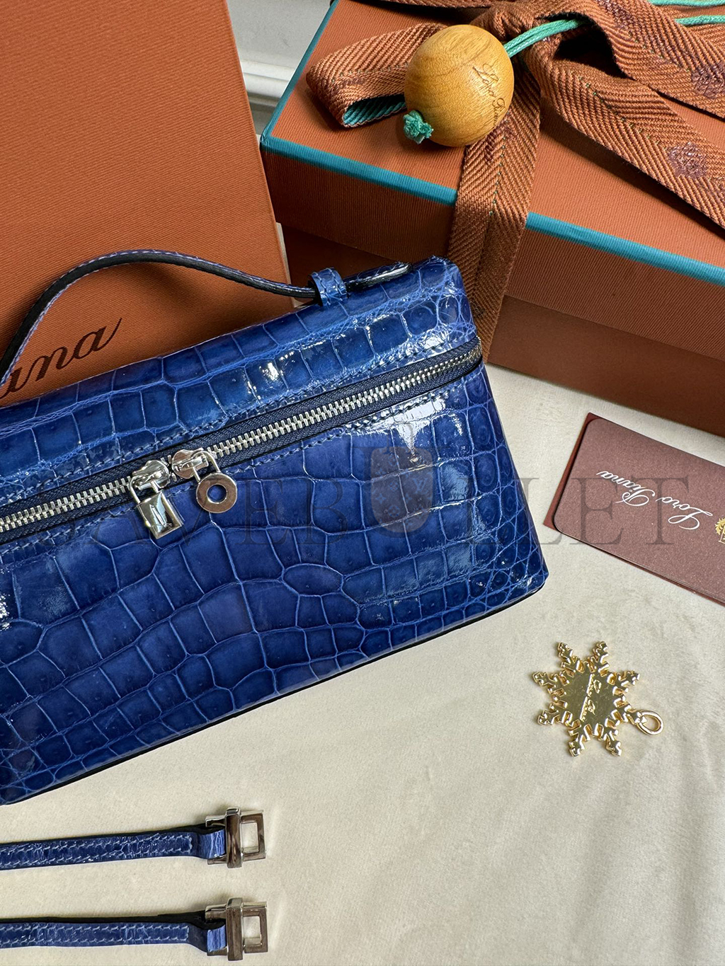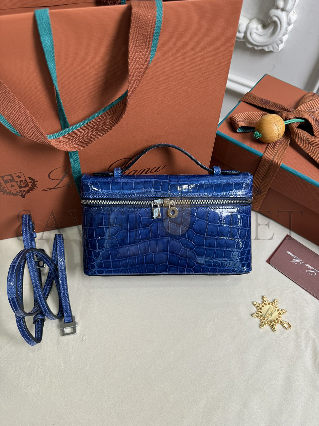 LORO PIANA EXTRA POCKET L19 CROCODILE LEATHER (19*11*6.5cm)