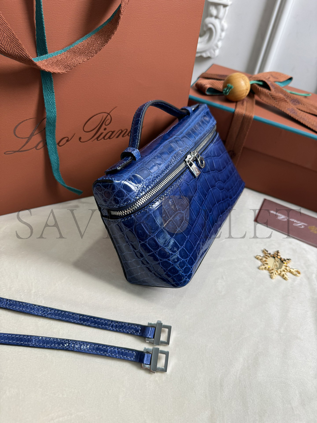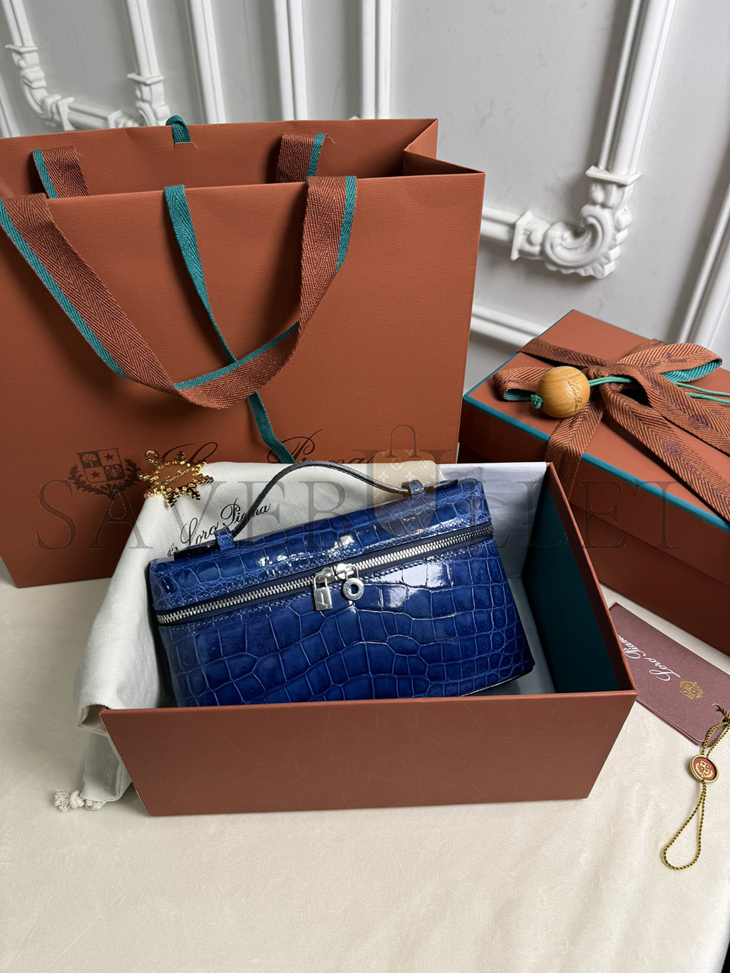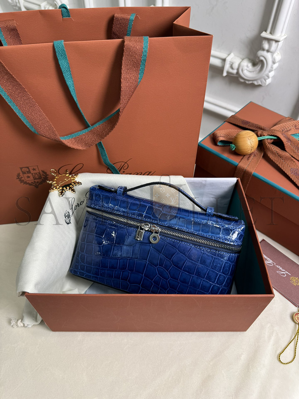 LORO PIANA EXTRA POCKET L19 CROCODILE LEATHER (19*11*6.5cm)