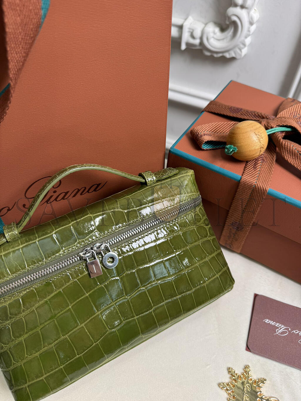 LORO PIANA EXTRA POCKET L19 CROCODILE LEATHER (19*11*6.5cm)