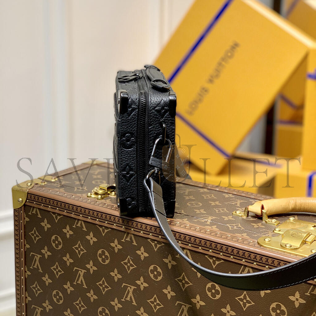 Crafted in finely embossed Taurillon Monogram leather, the Handle Soft Trunk evokes Louis Vuitton’s heritage as a luggage maker with sophisticated details like the riveted corners and leather reinforcement strips. Its slim profile and removable strap make it effortless to carry, and it opens wide for easy access. Ideal for small digital devices and other personal essentials.