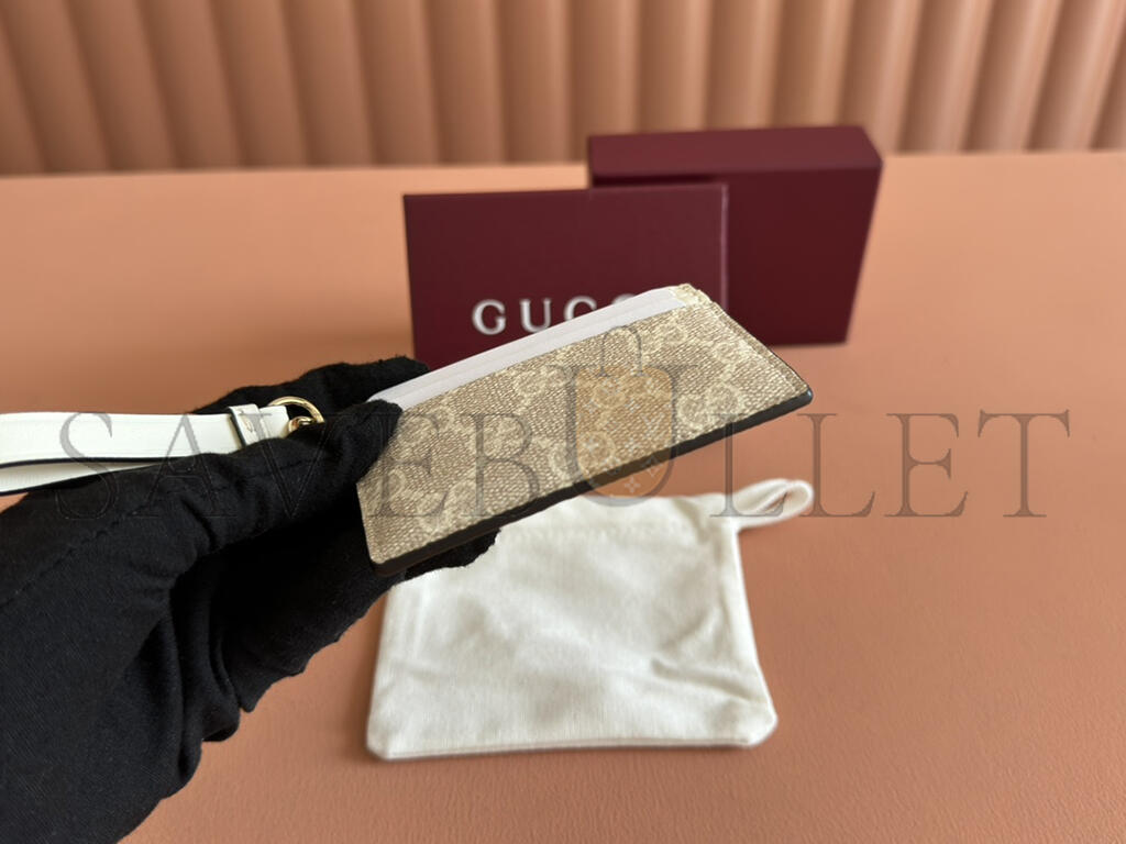 GUCCI GG EMBLEM CARD CASE WITH STRAP 819121 (10*7cm)