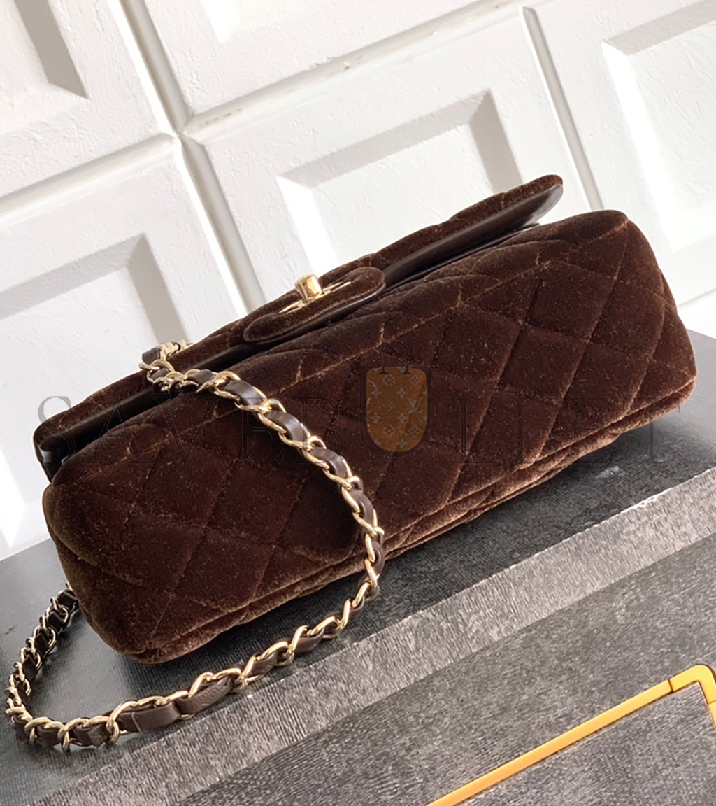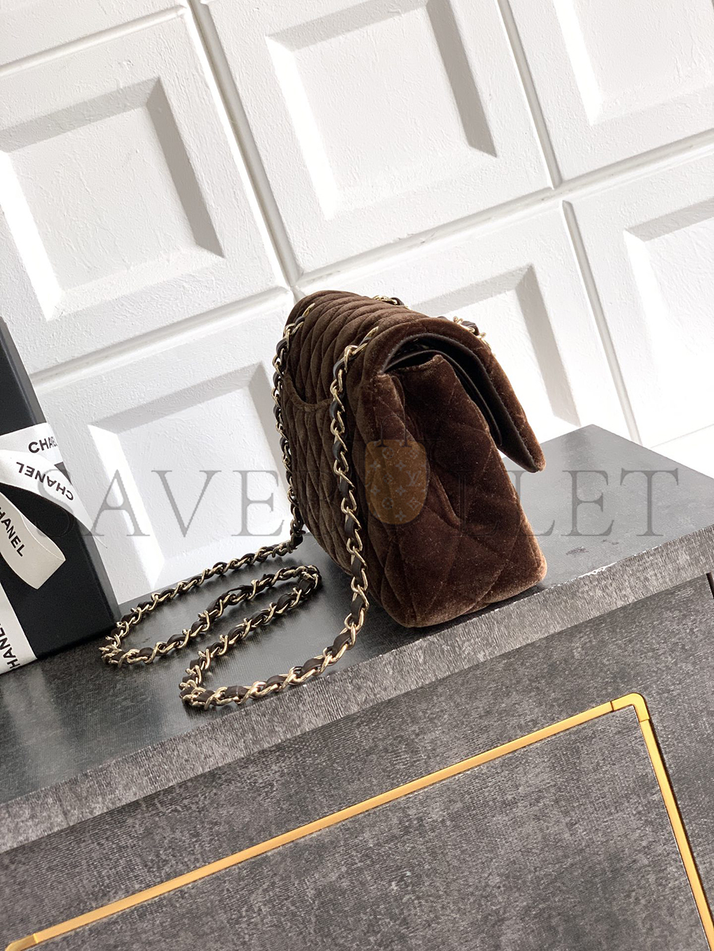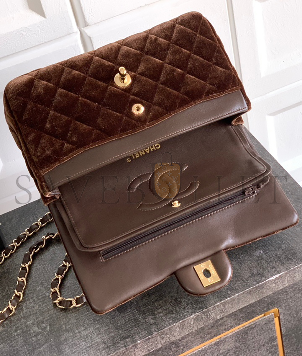 CHANEL SMALL CLASSIC FLAP HANDBAG VELVET & GOLD METAL A01113 (23*14.5*6cm)