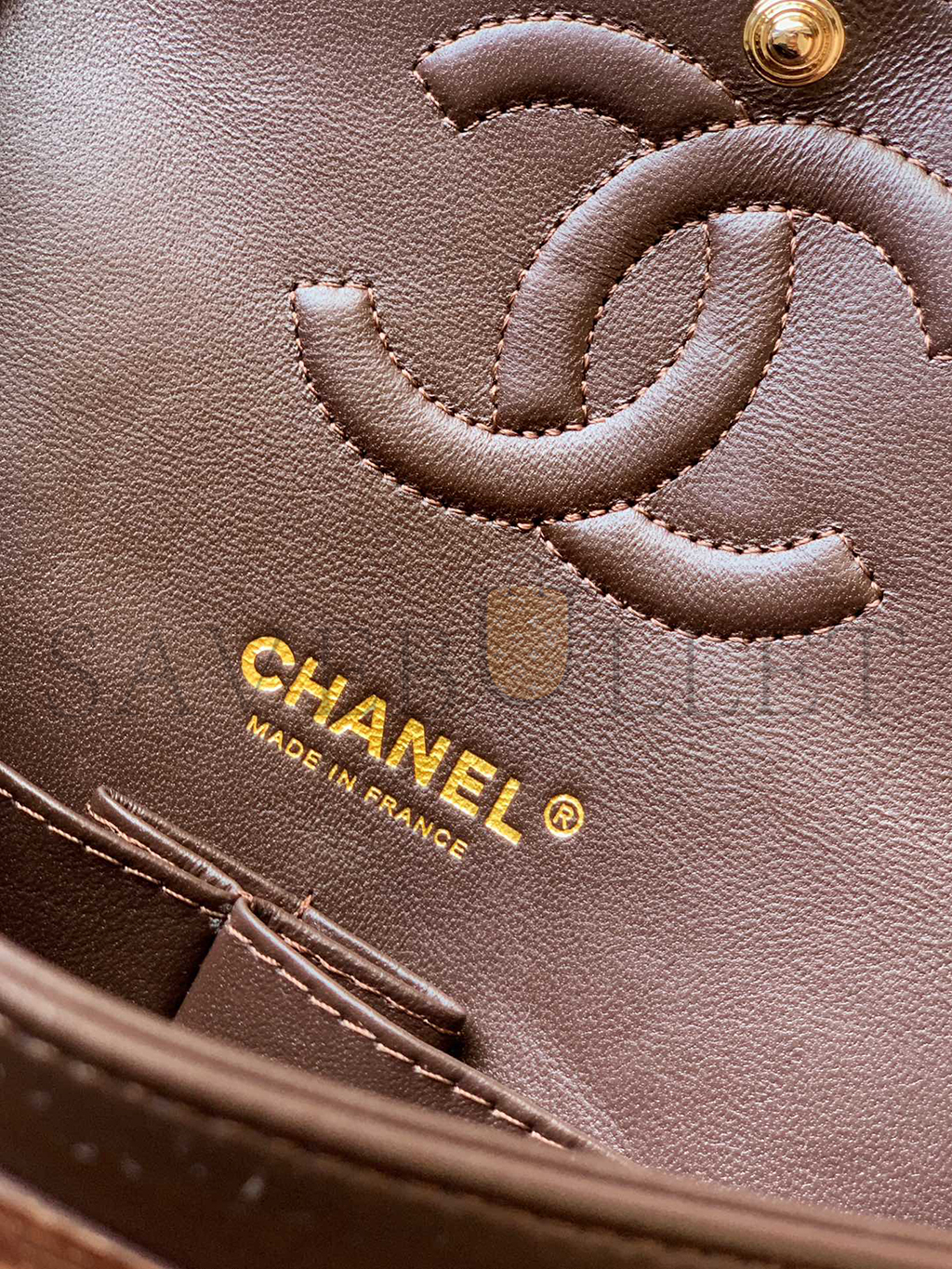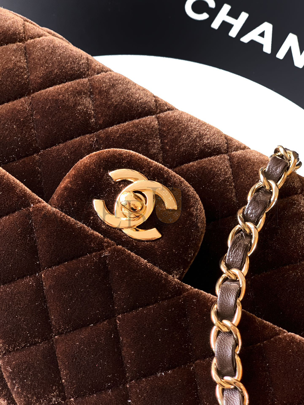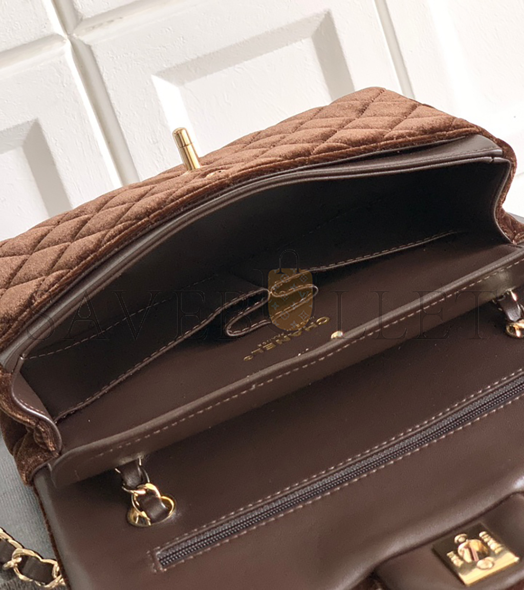 CHANEL SMALL CLASSIC FLAP HANDBAG VELVET & GOLD METAL A01113 (23*14.5*6cm)