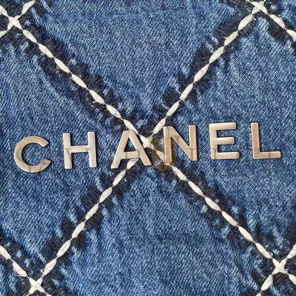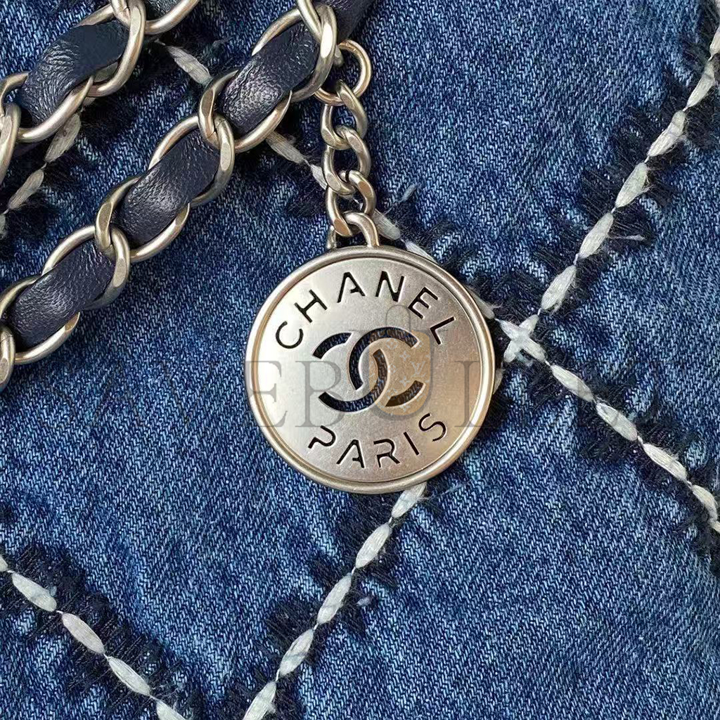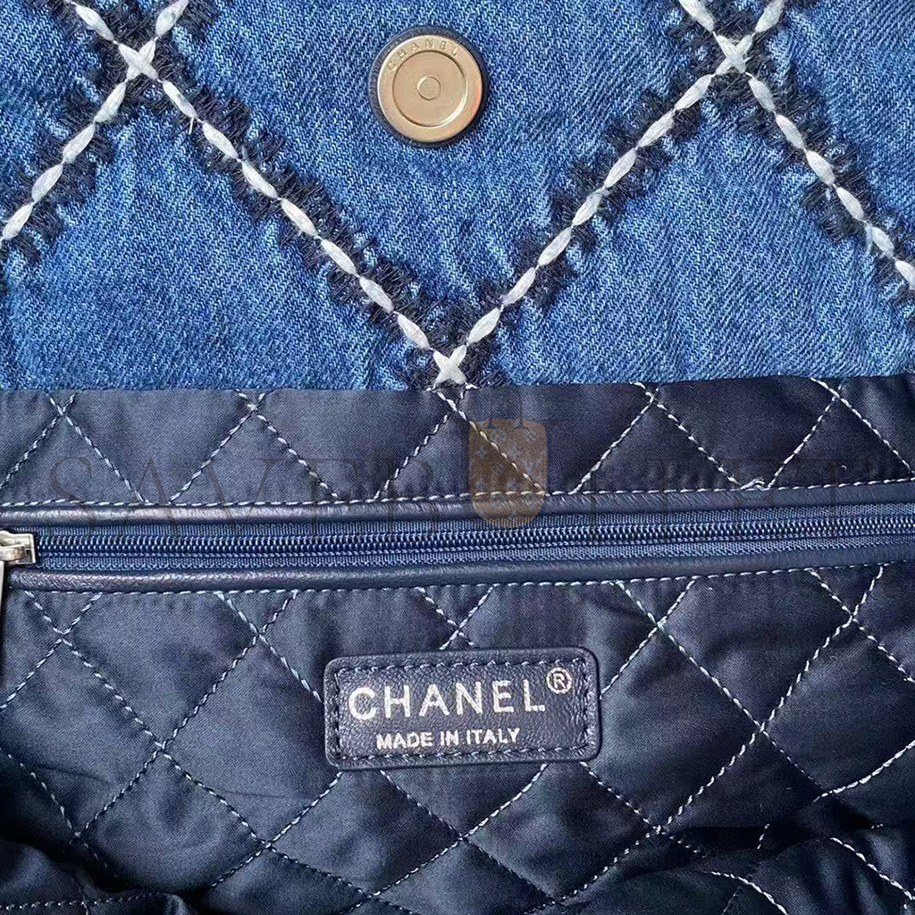 CHANEL MASTER DENIM QUILTED STITCHED SMALL CHANEL 22 BLUE AS3260 (37*35*7cm)