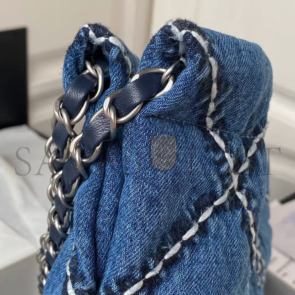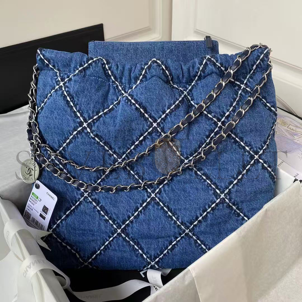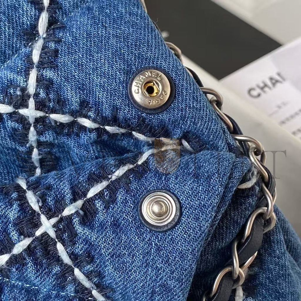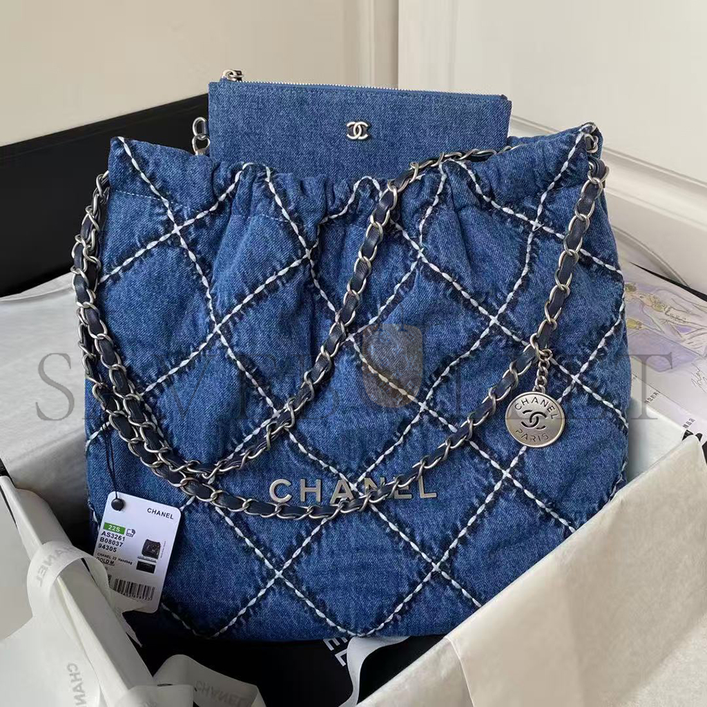 CHANEL MASTER DENIM QUILTED STITCHED SMALL CHANEL 22 BLUE AS3260 (37*35*7cm)