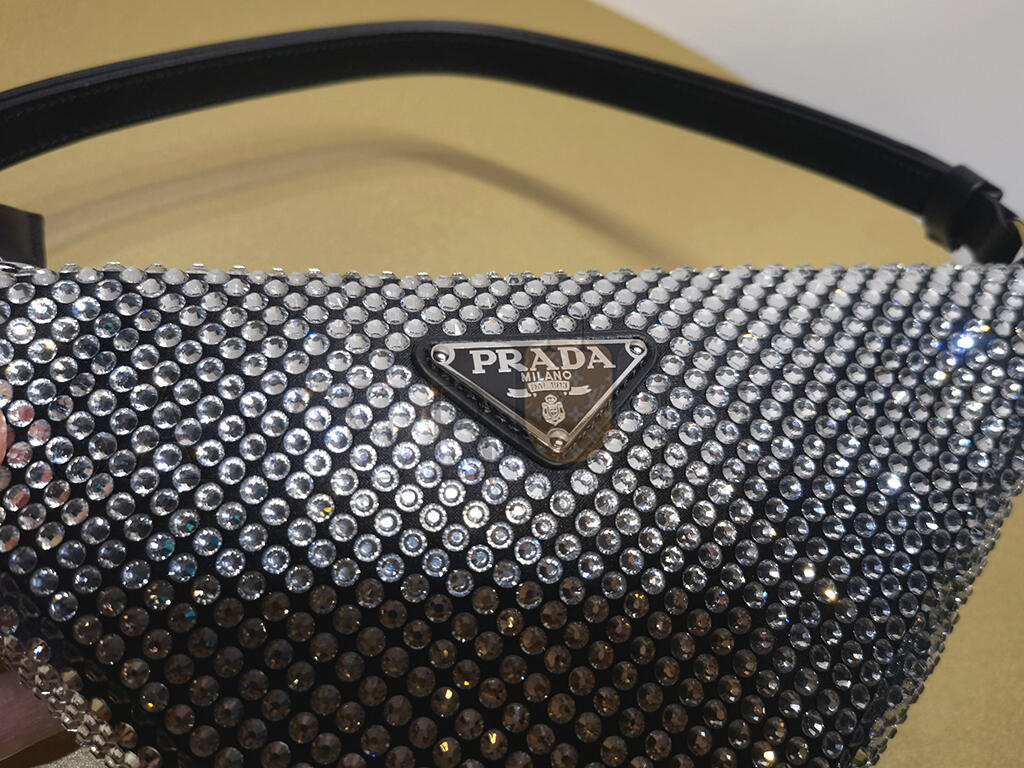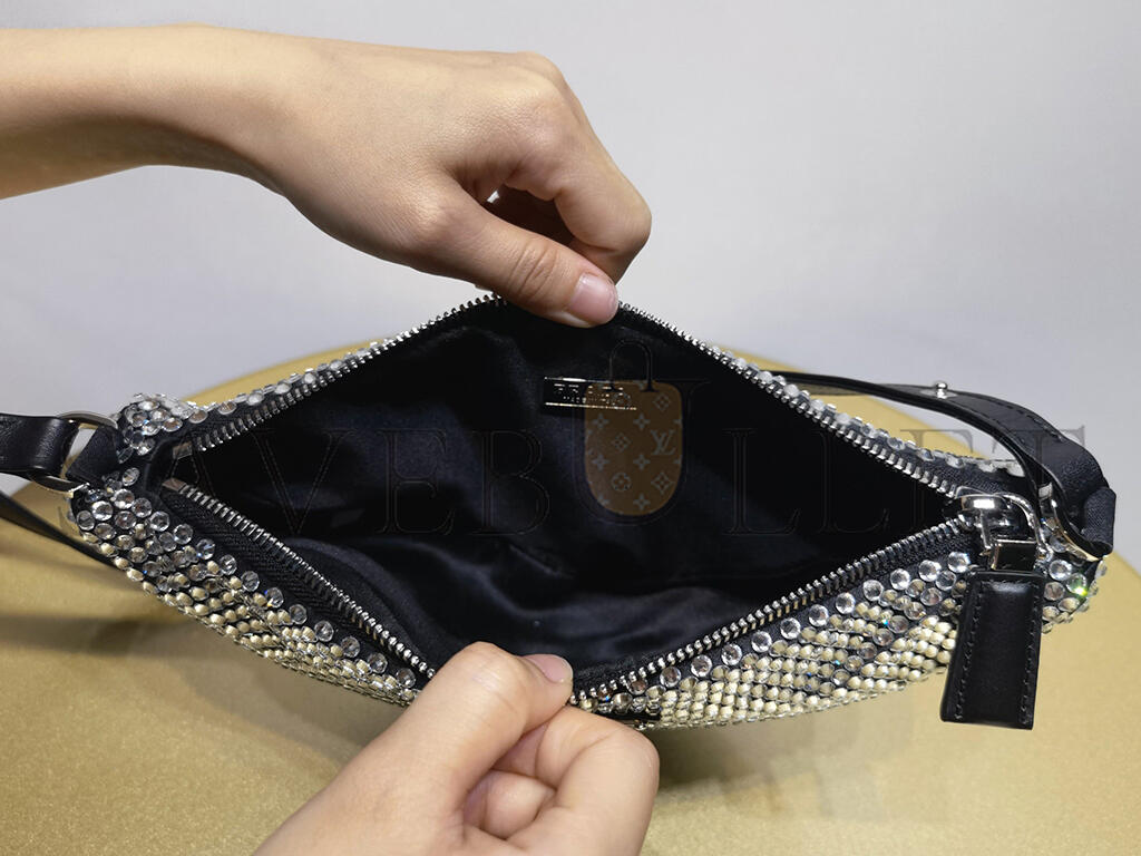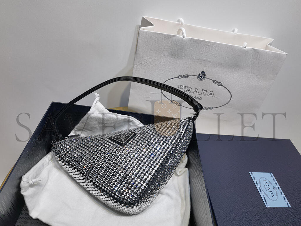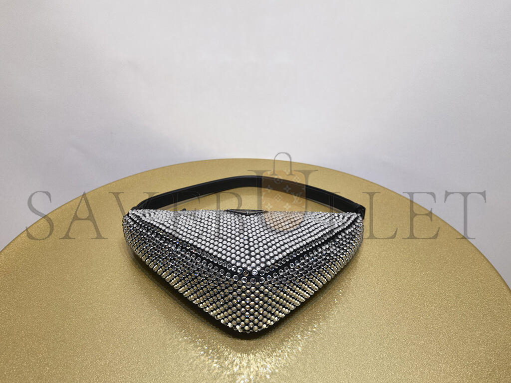 PRADA CRYSTAL-STUDDED SATIN POUCH lNQ044 (26*15*5.5cm)