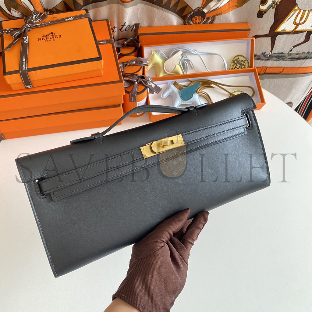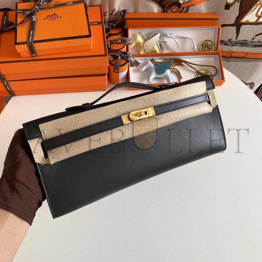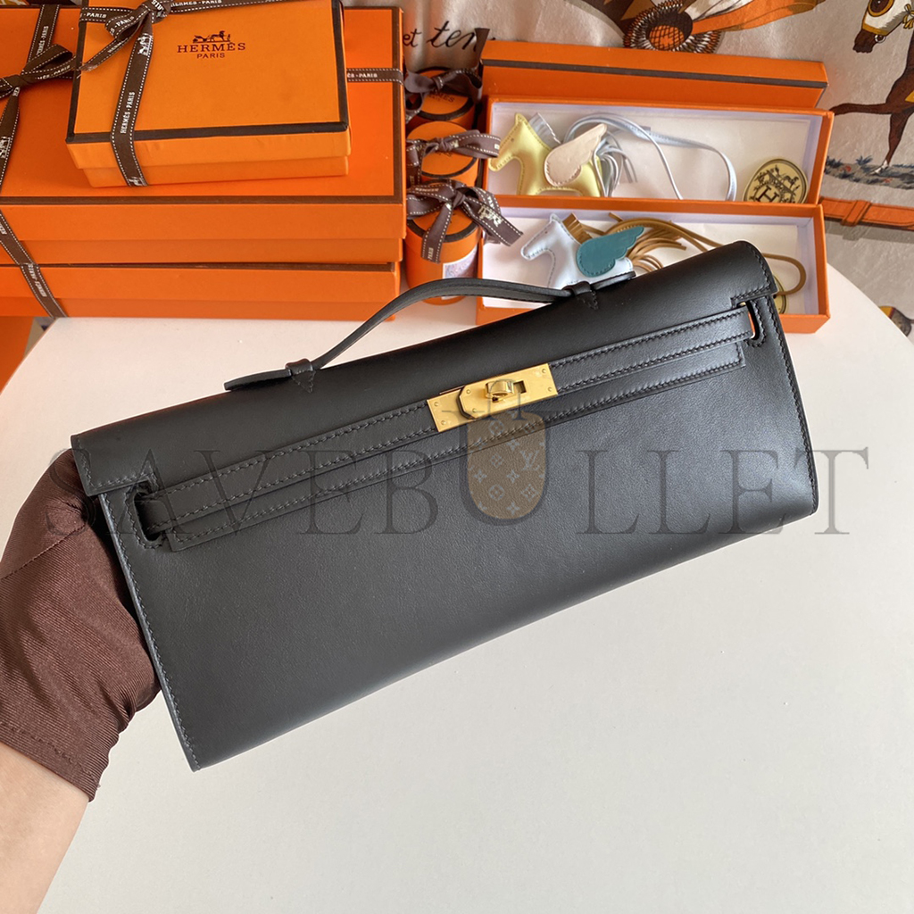 HERMES BLACK SWIFT KELLY CUT GOLD HARDWARE (31*13*2.5cm)