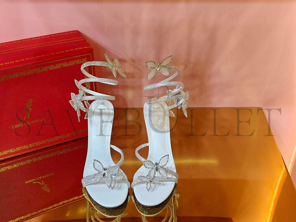 RENE CAOVILLA MARGOT WHITE BUTTERFLY SANDAL 95 103026