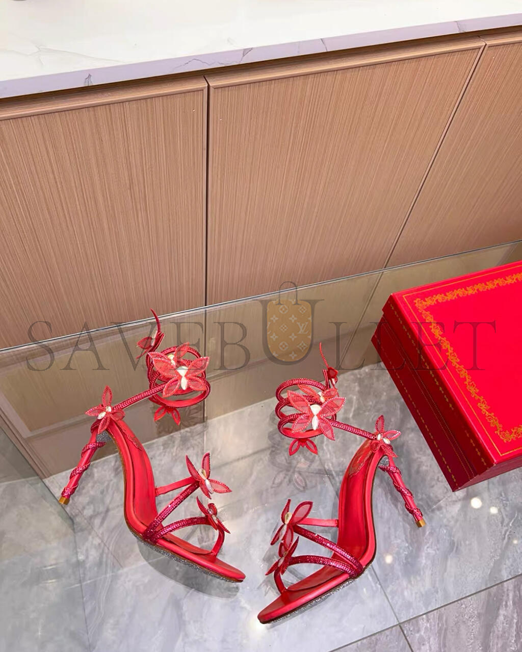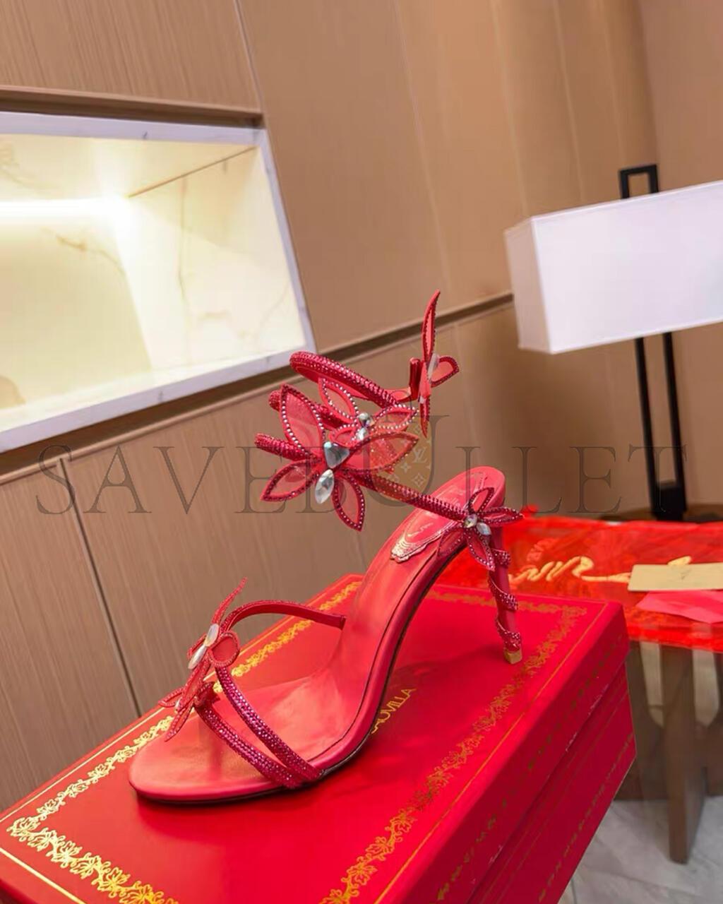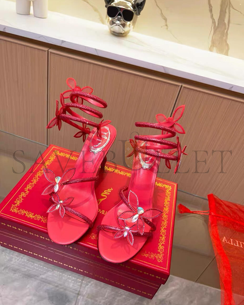 RENE CAOVILLA MARGOT RED BUTTERFLY SANDAL 95 103027
