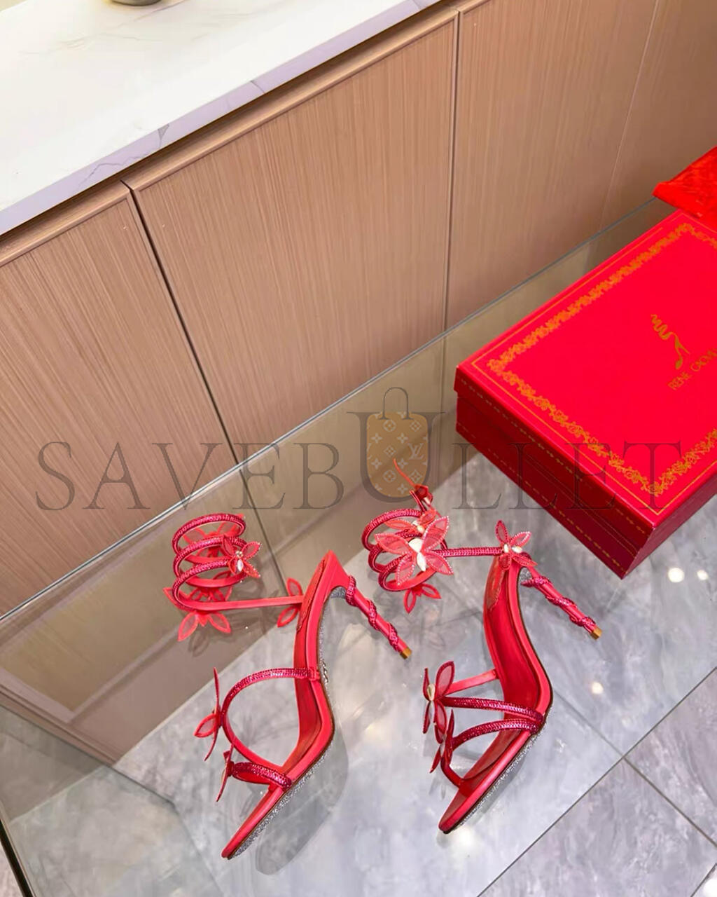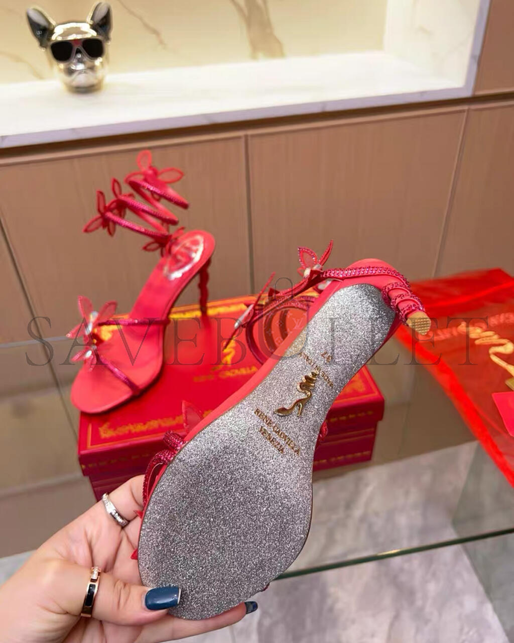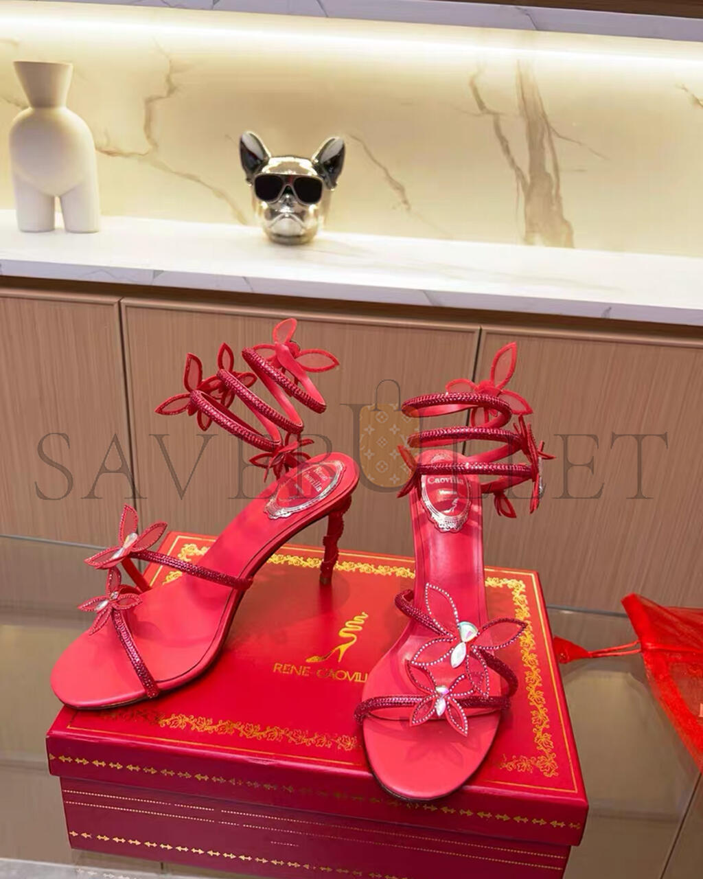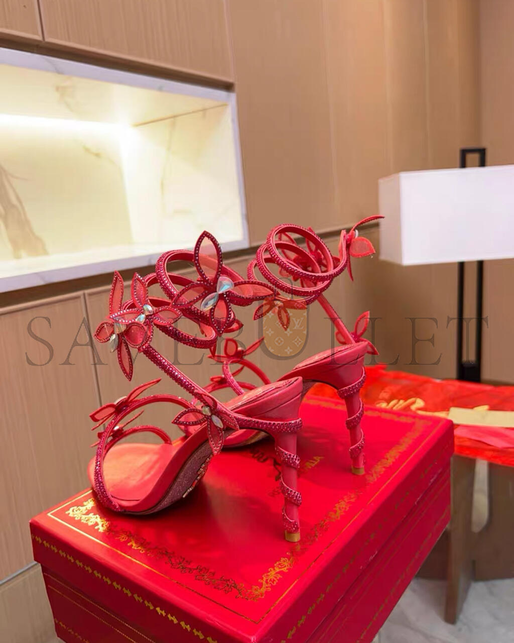 RENE CAOVILLA MARGOT RED BUTTERFLY SANDAL 95 103027