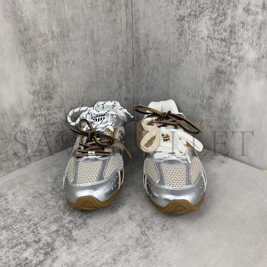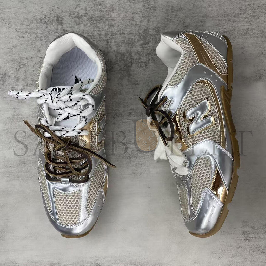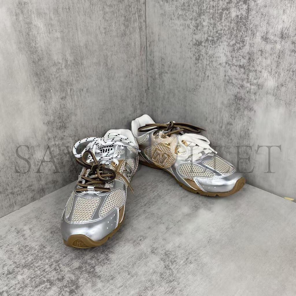 MIU MIU X NEW BALANCE 530 SL METALLIC LEATHER AND MESH SNEAKERS 5E165E