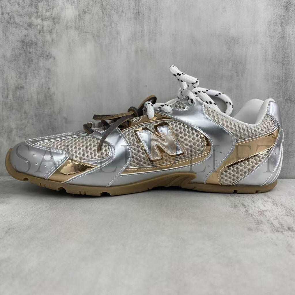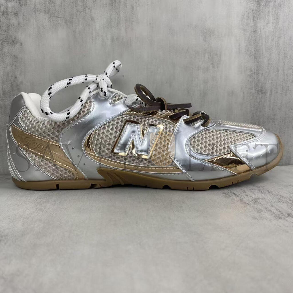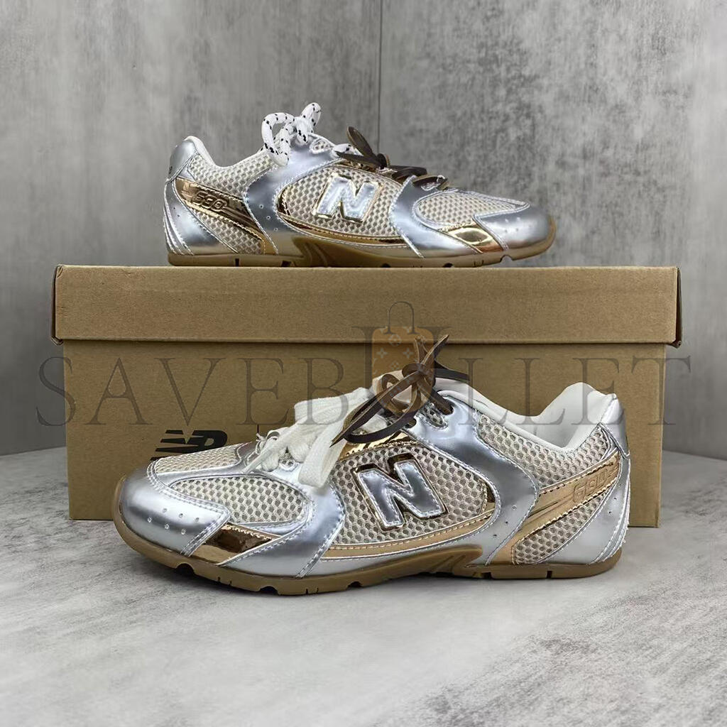 MIU MIU X NEW BALANCE 530 SL METALLIC LEATHER AND MESH SNEAKERS 5E165E