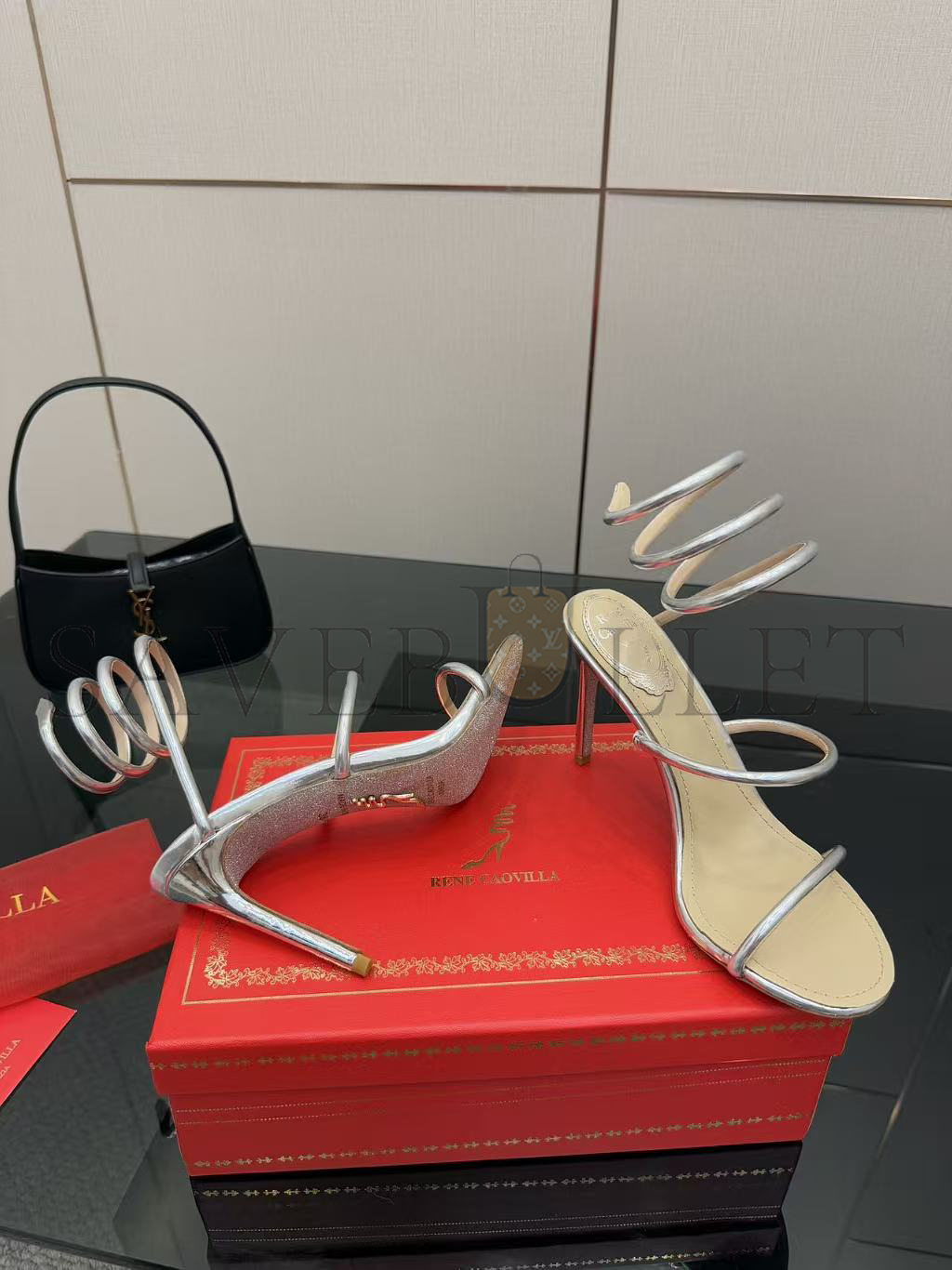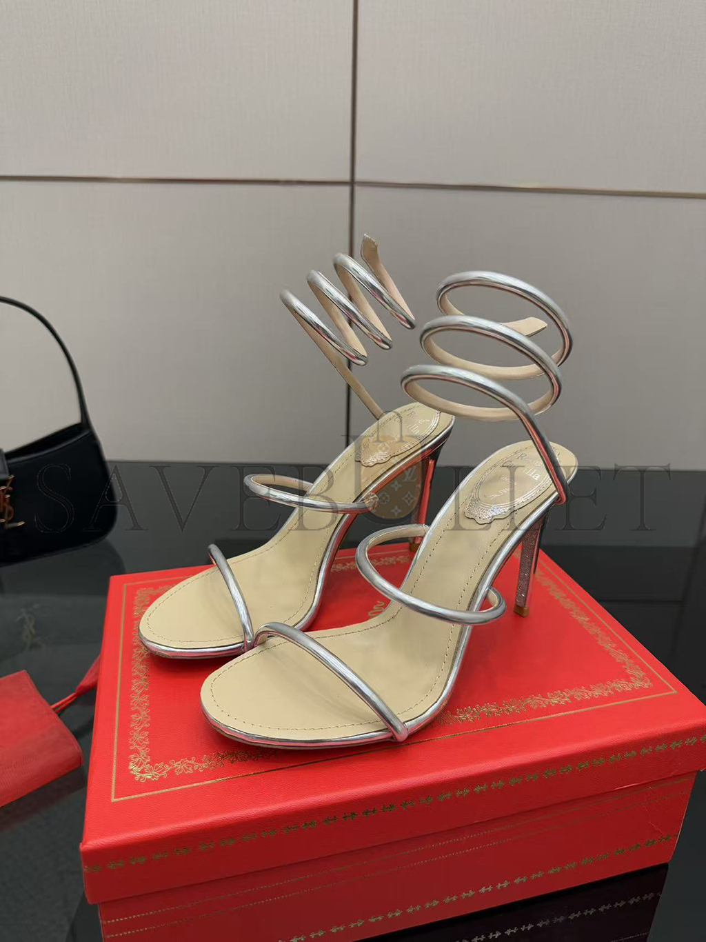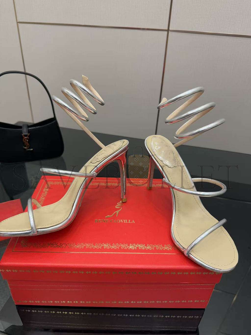 RENÉ CAOVILLA CLEO METALLIC SILVER SANDAL 105 C12351