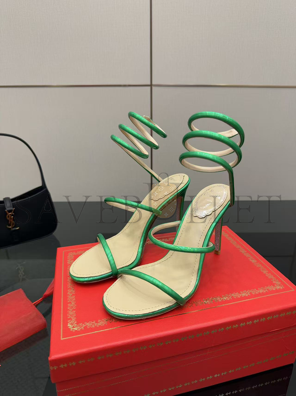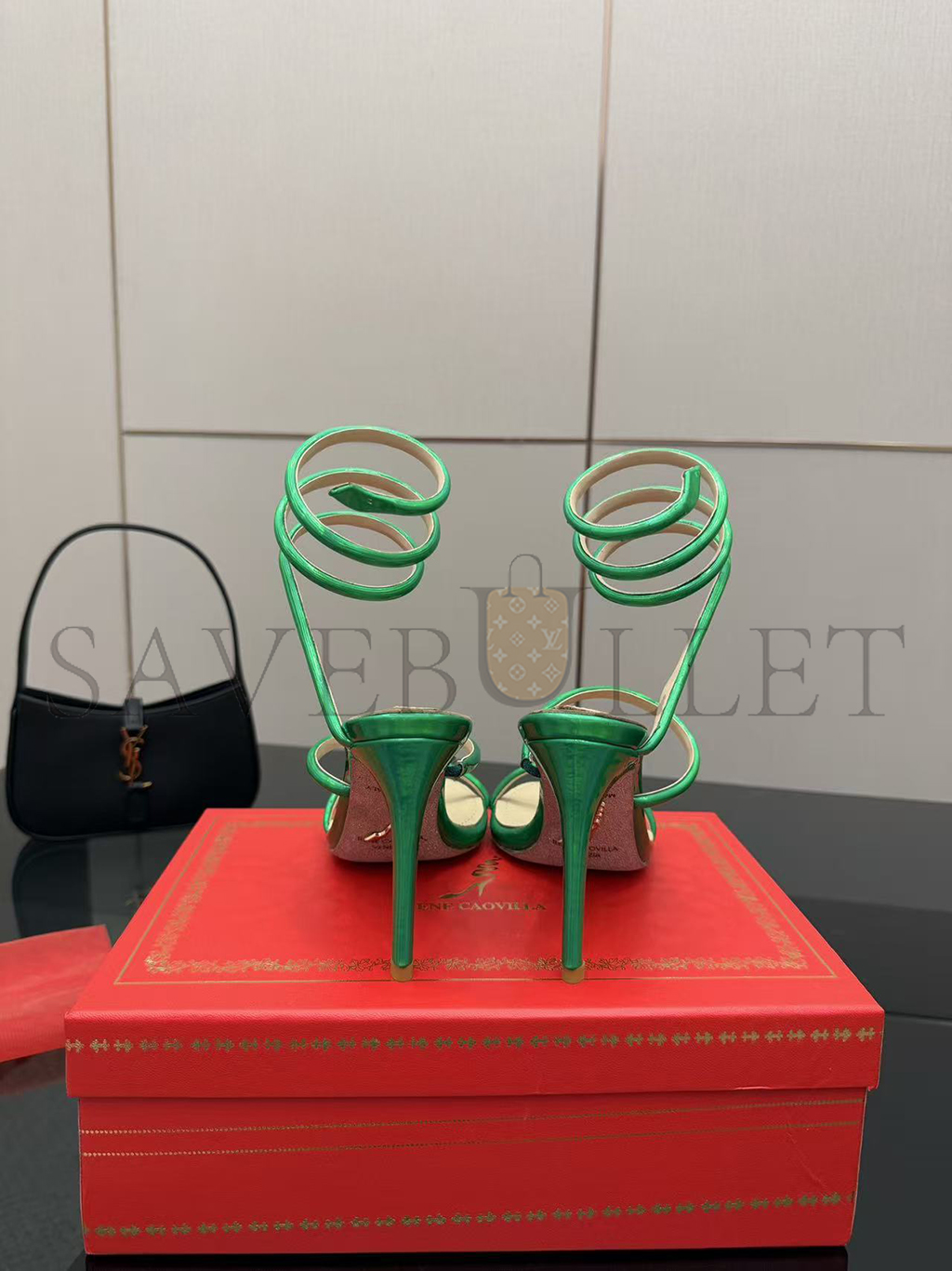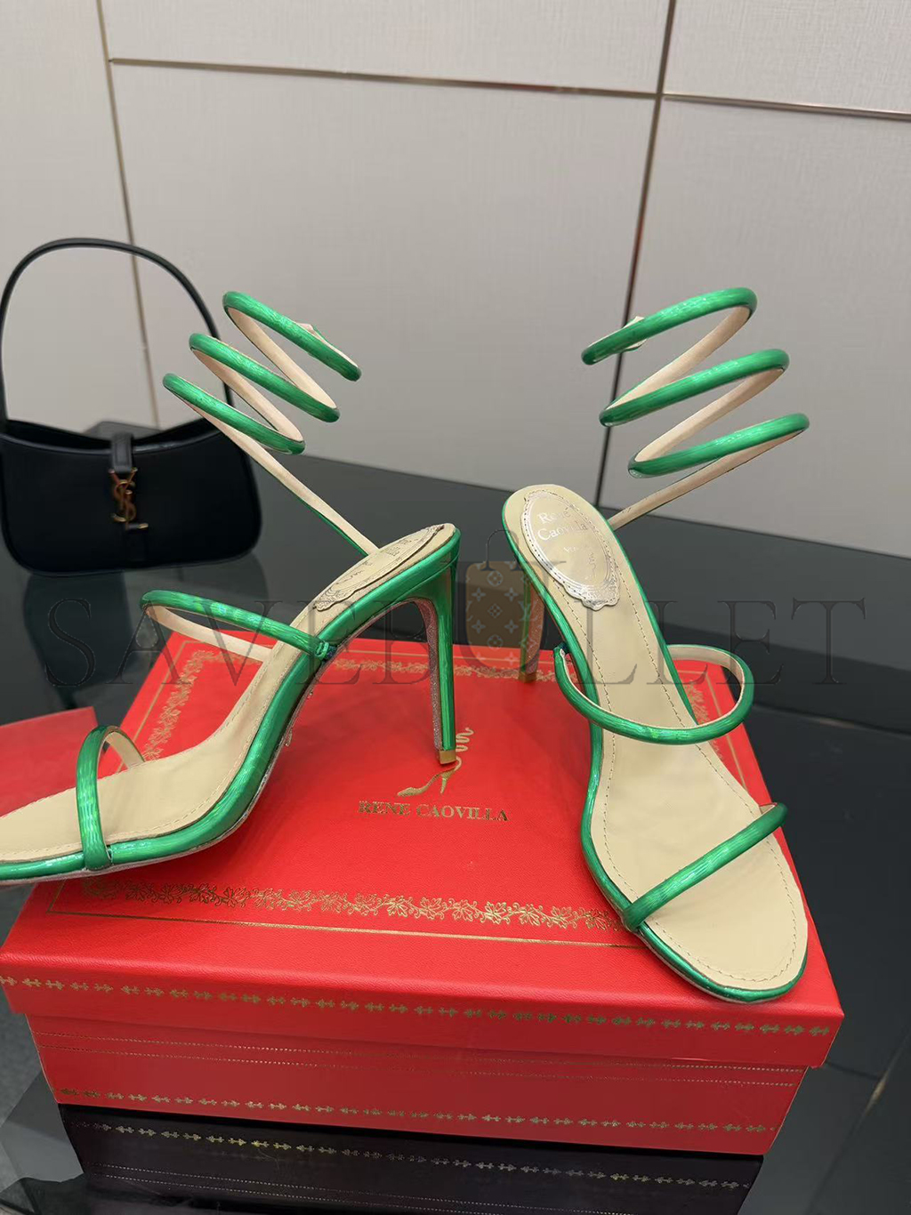 RENÉ CAOVILLA CLEO METALLIC GREEN SANDAL 105 C12351