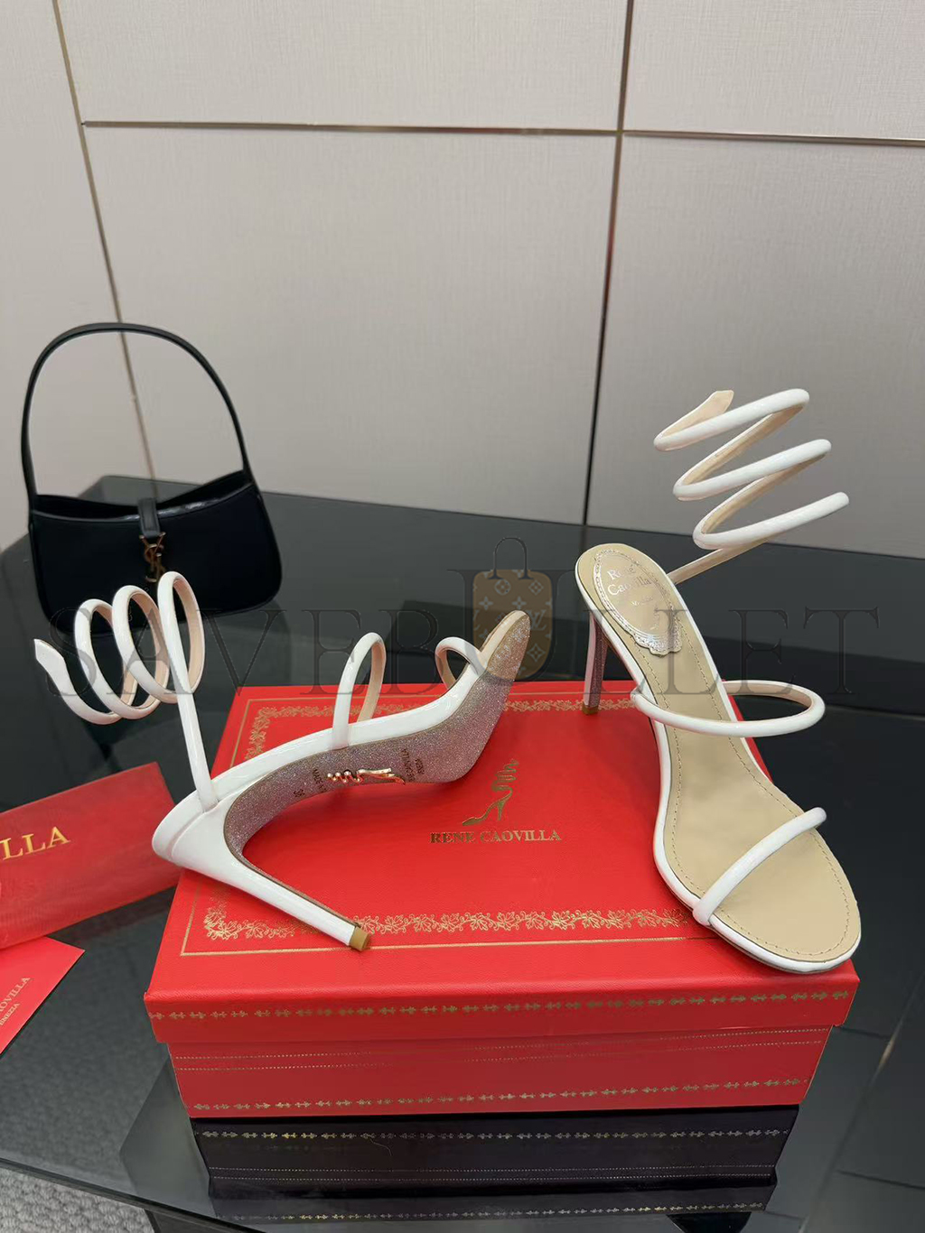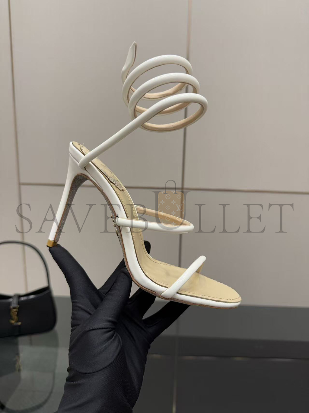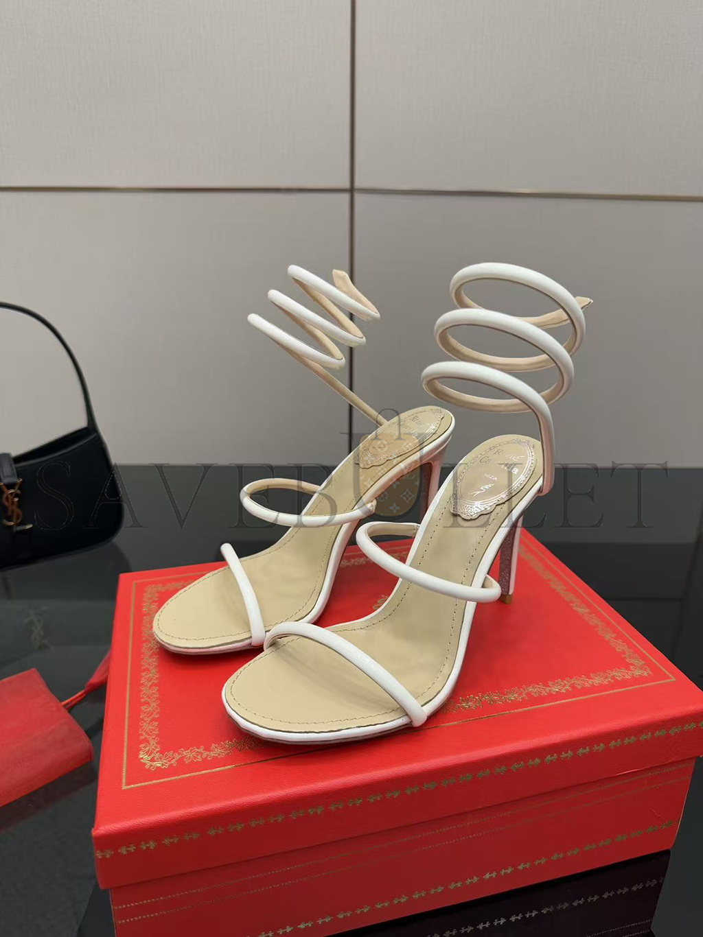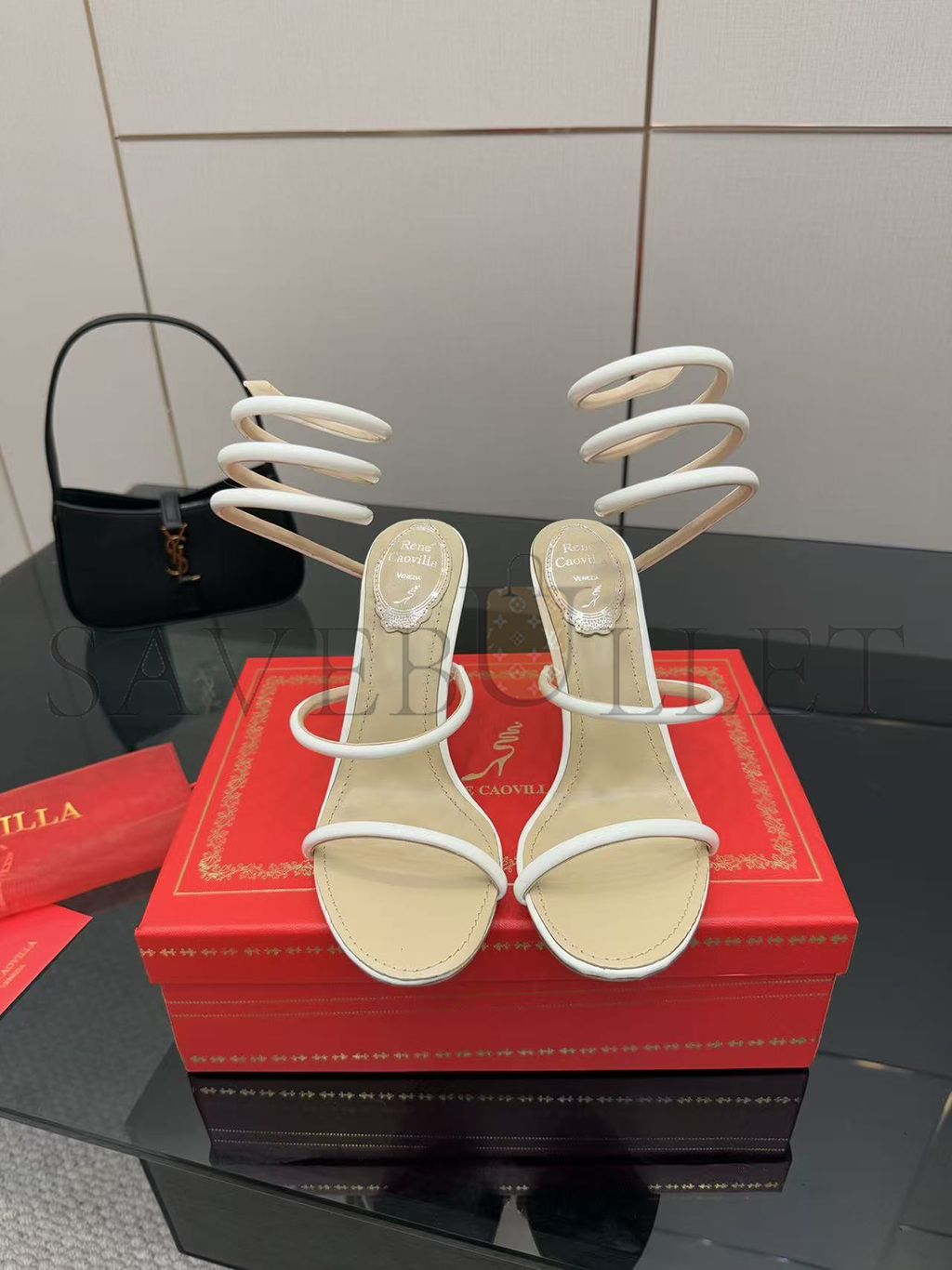 RENÉ CAOVILLA CLEO METALLIC WHITE SANDAL 105 C12351