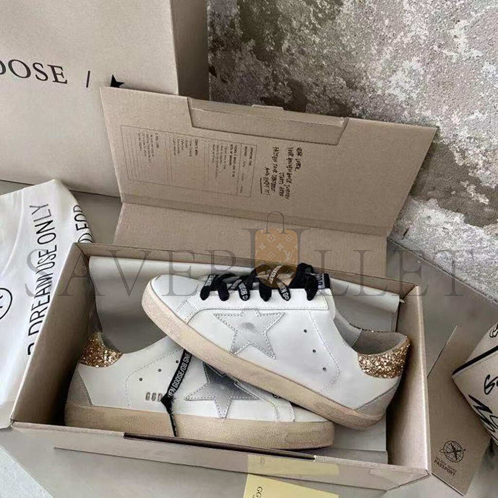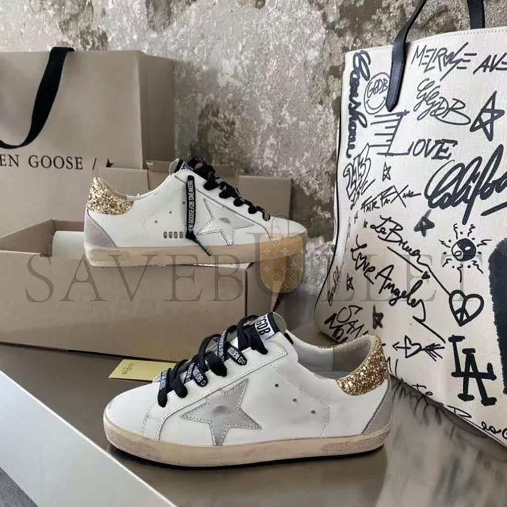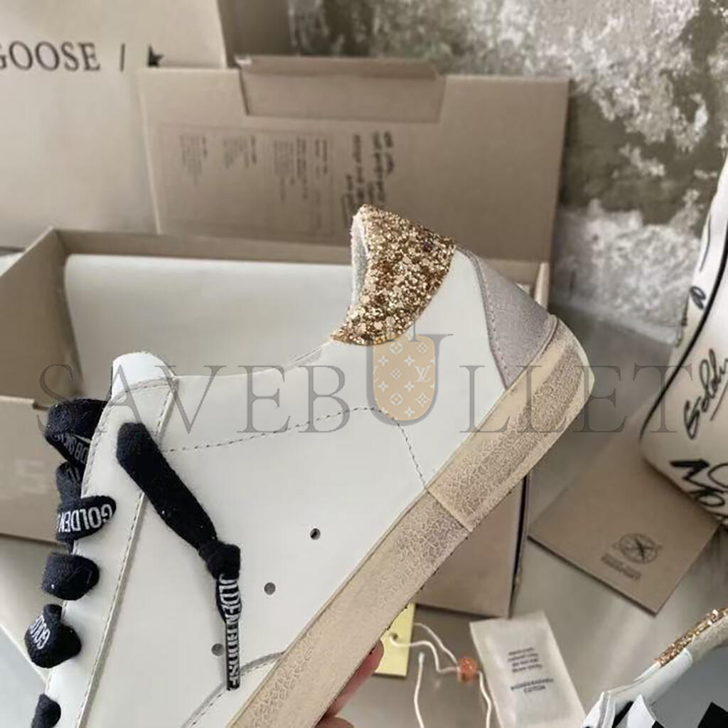 GOLDEN GOOSE WOMEN'S WHITE LEATHER SUPER-STAR WITH GLITTERY HEEL TAB GWF00102